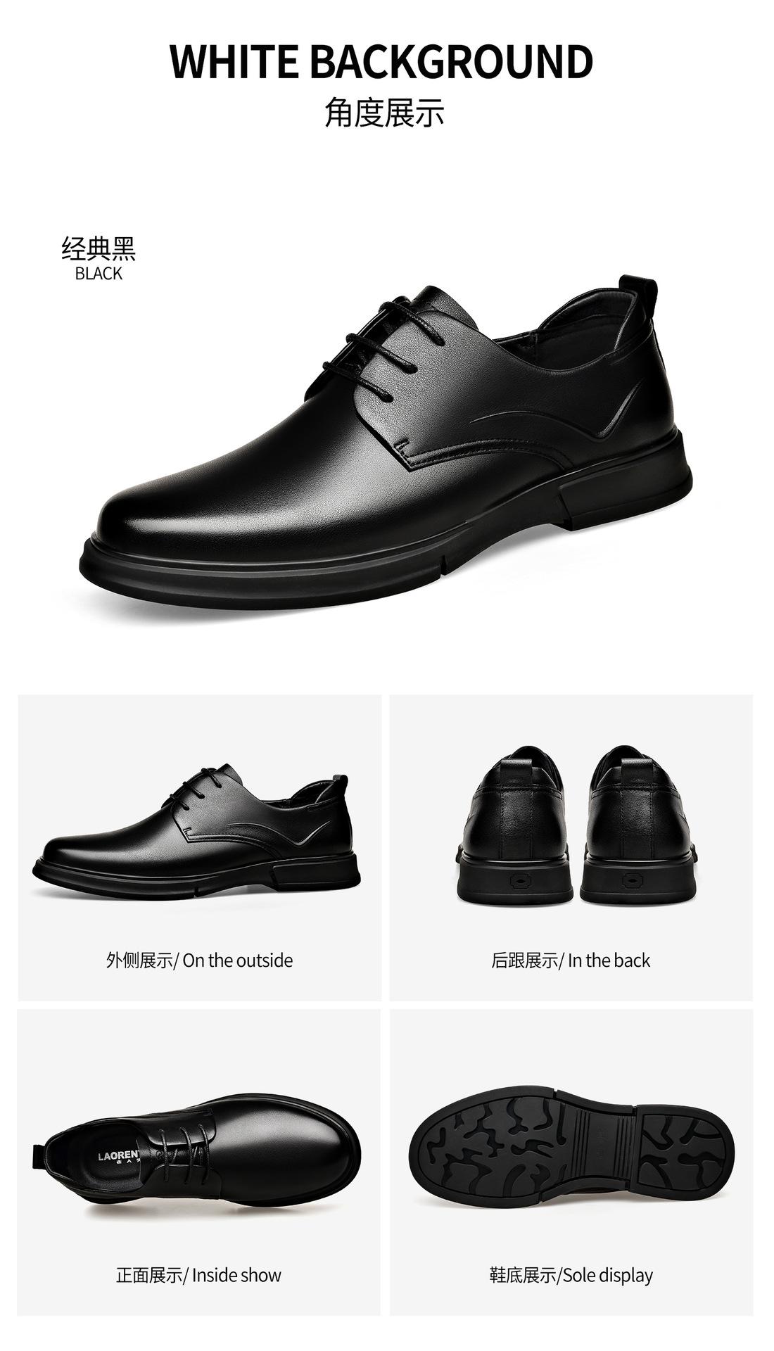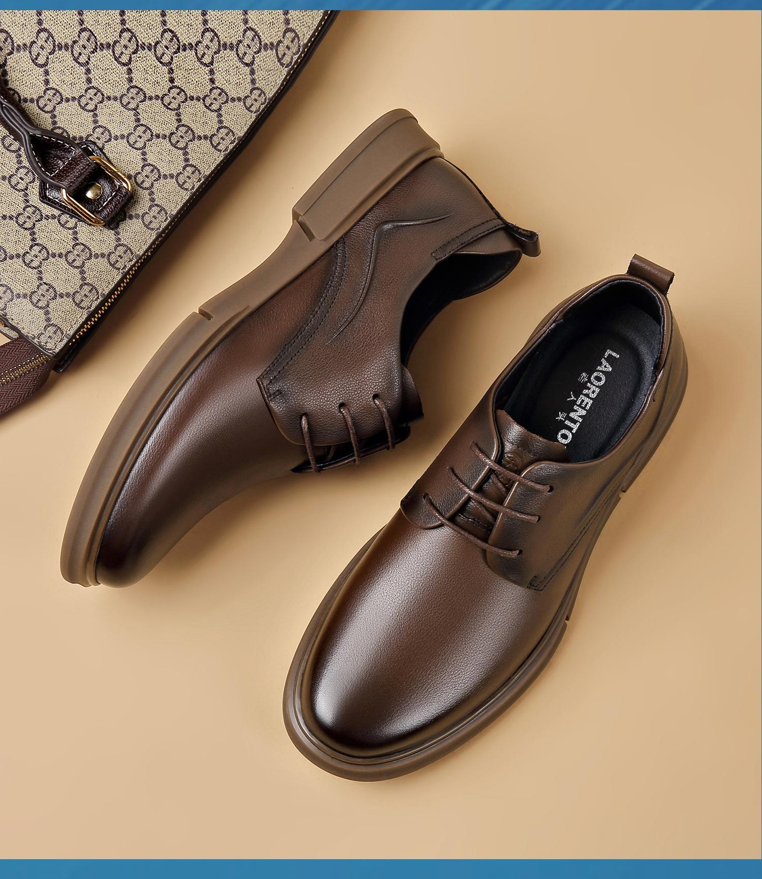 Sapatos Sociais de Couro Formal para Idosos Outono 2025 Masculino Business Cano Baixo Respirável Antiderrapante Bico Redondo Cadarço Primeira Camada Couro Bovino