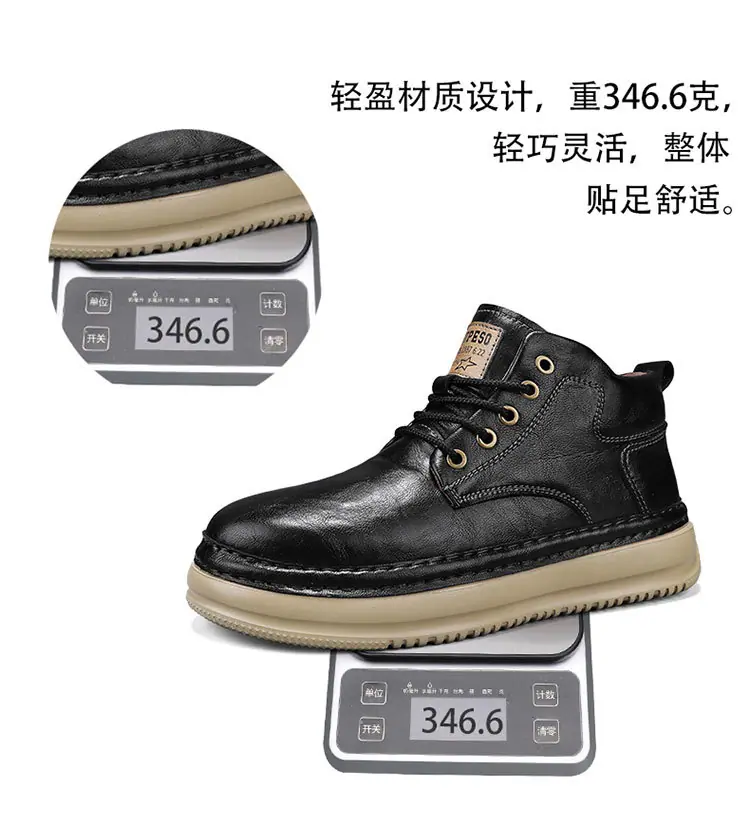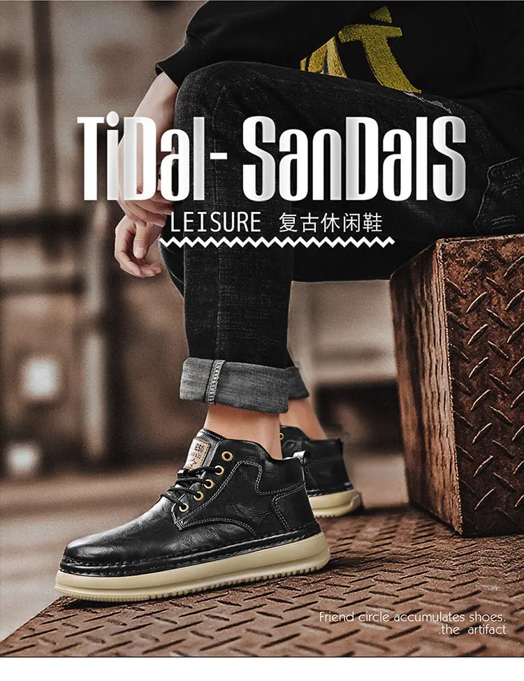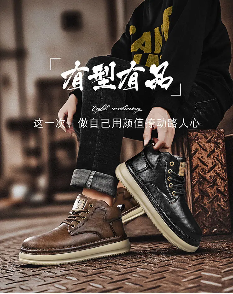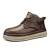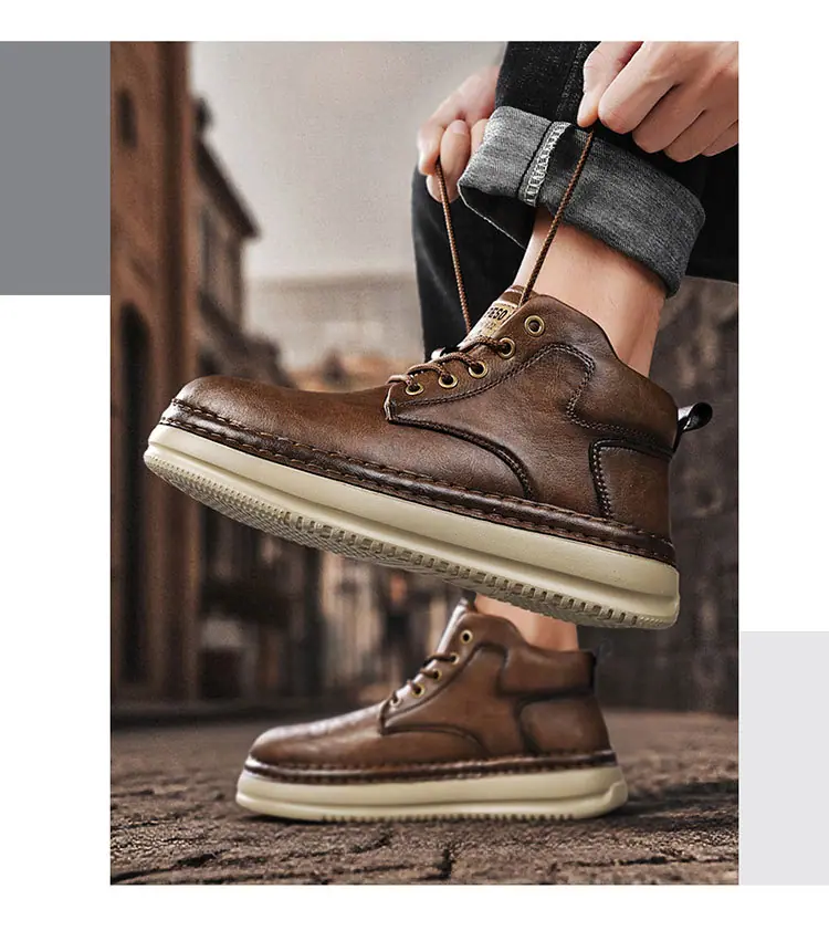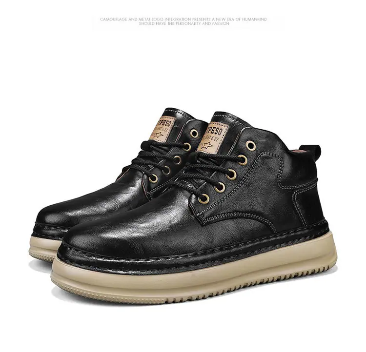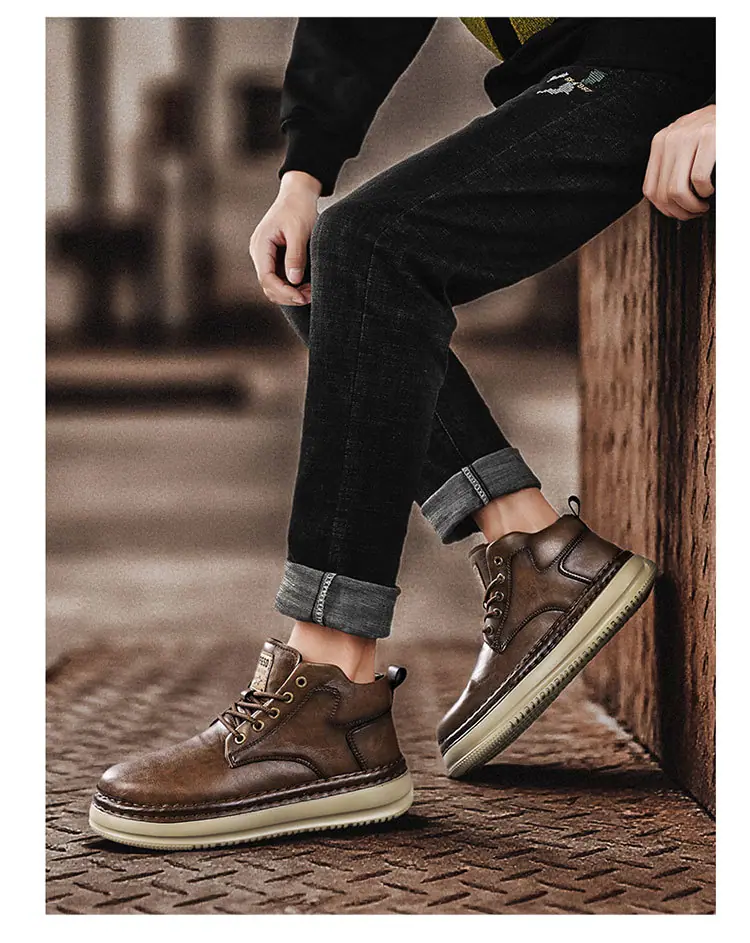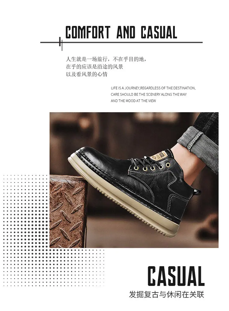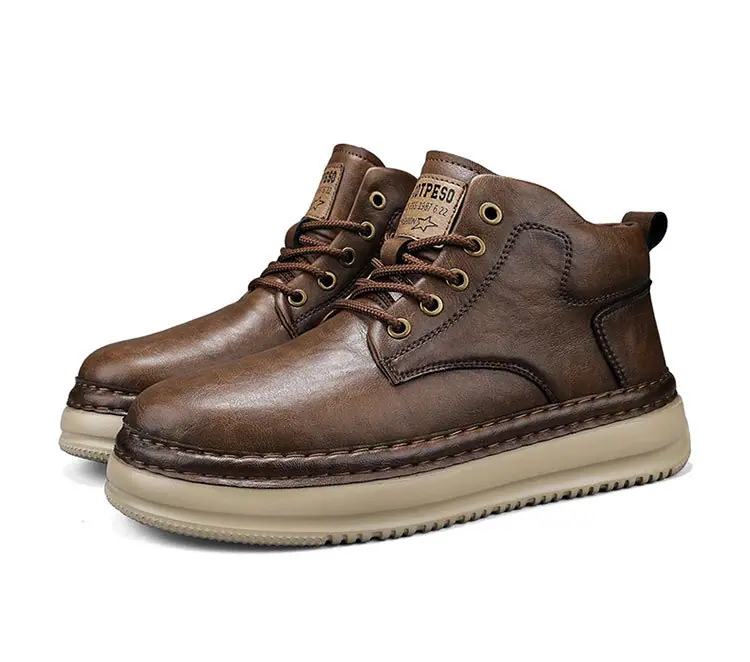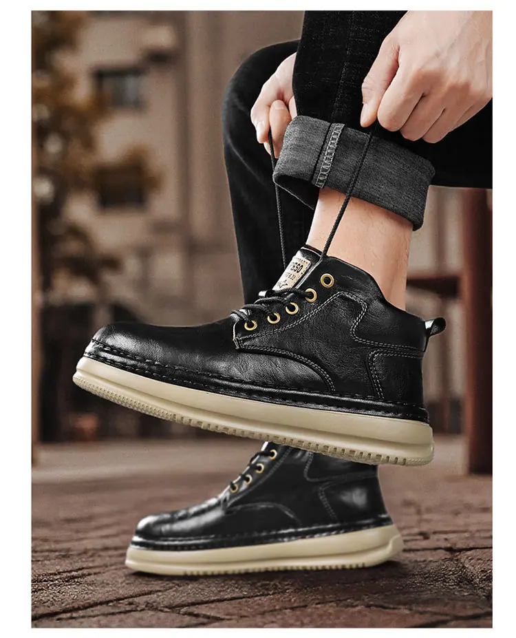 Botas Masculinas 2025 Novas Flat Leves Versáteis Botas de Couro Simples Retrô Cano Médio Botas Martin Masculinas Casuais para Trabalho