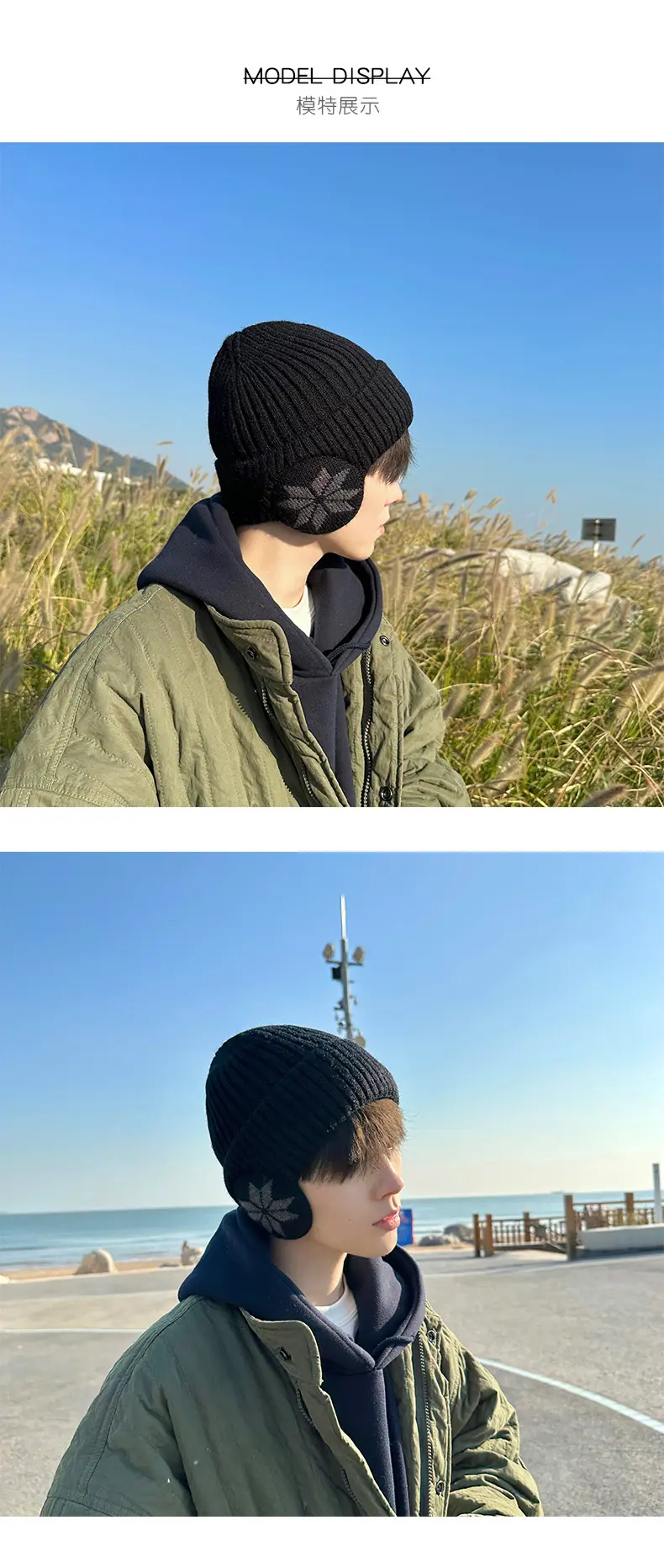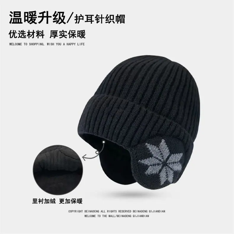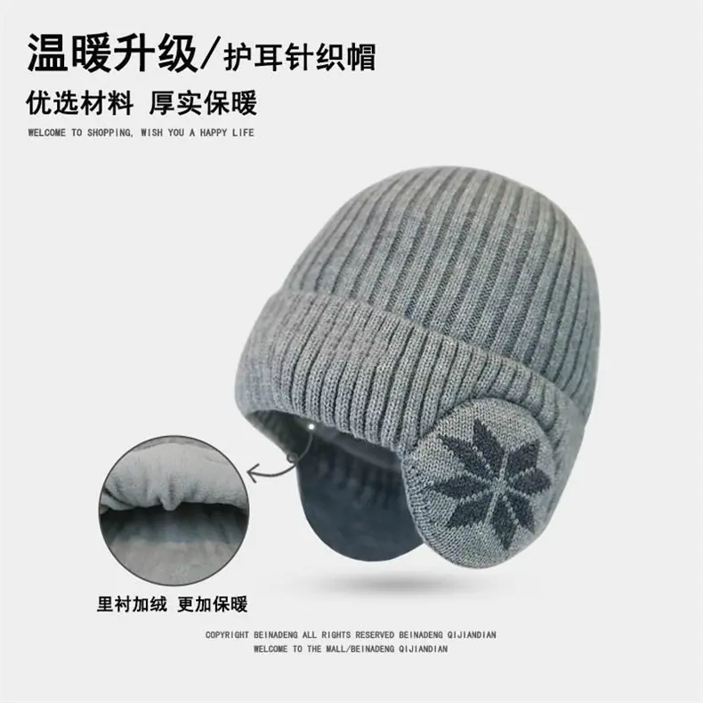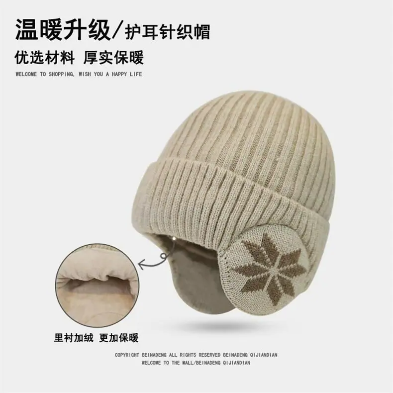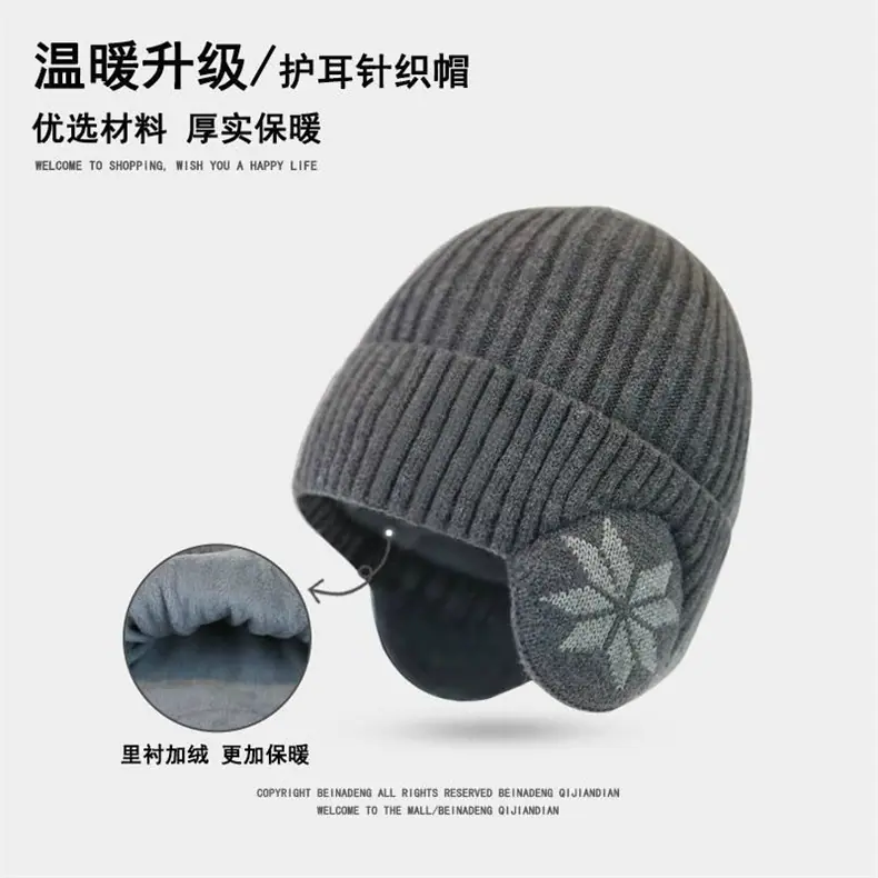 Chapéu Masculino Inverno Quente Tricotado Chapéu Inverno Ciclismo Forrado com Lã Proteção de Orelhas Chapéu de Lã Proteção de Orelhas Boné Juvenil Masculino