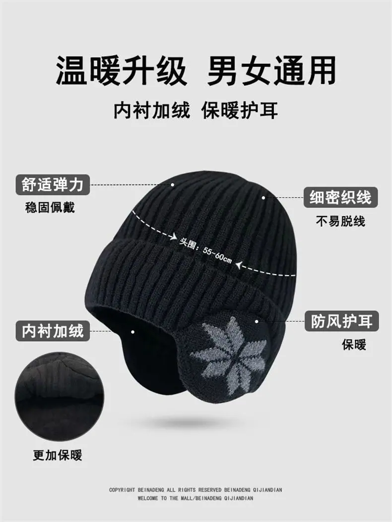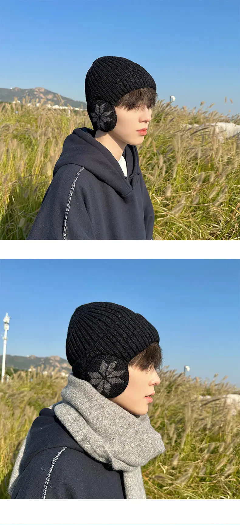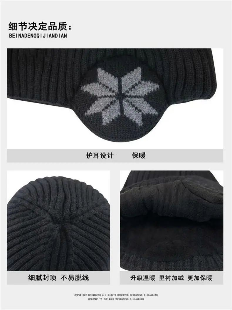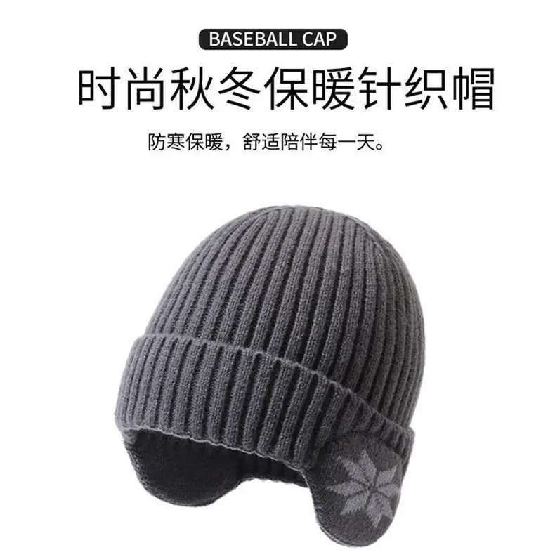 Chapéu Masculino Inverno Quente Tricotado Chapéu Inverno Ciclismo Forrado com Lã Proteção de Orelhas Chapéu de Lã Proteção de Orelhas Boné Juvenil Masculino