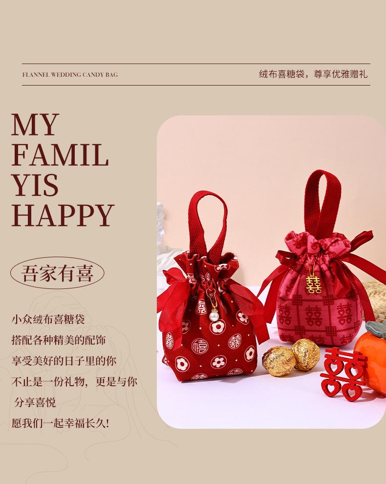 Sacola de Doces de Casamento Caixa de Doces Flanela Embalagem para Presente de Casamento Noivado Festiva Sacola de Doces Criativa Portátil Suprimentos para Presente de Acompanhamento