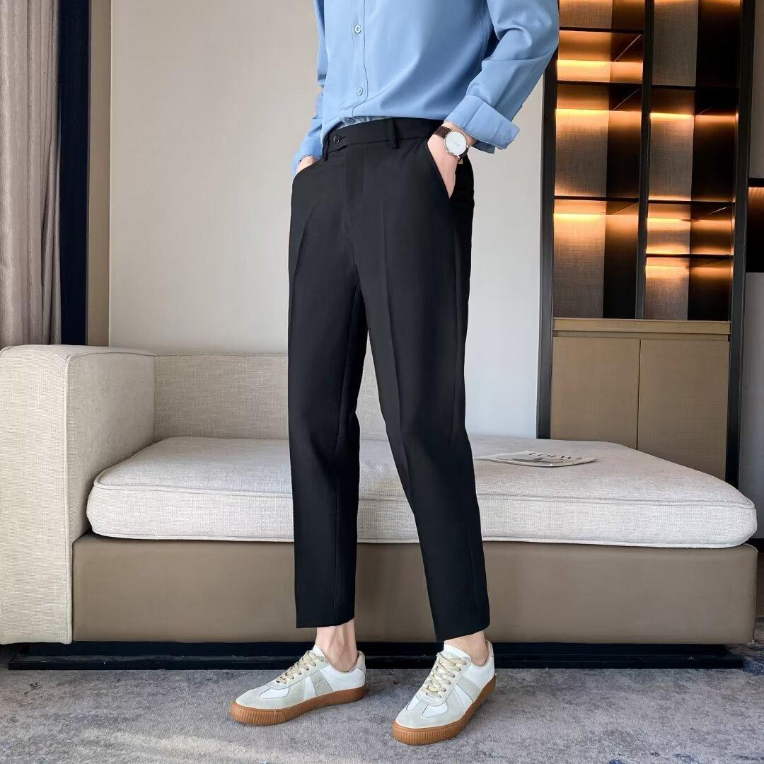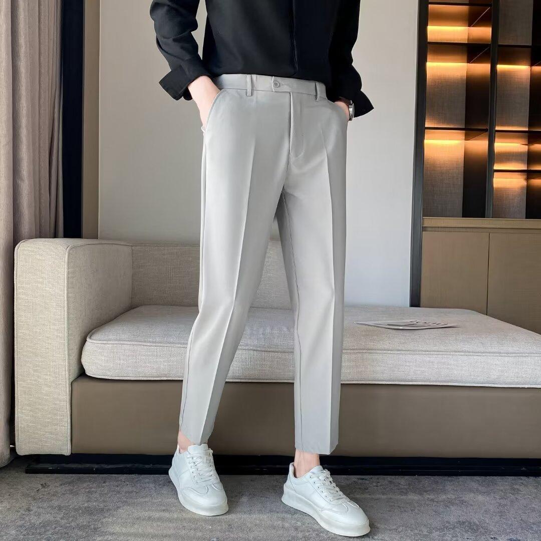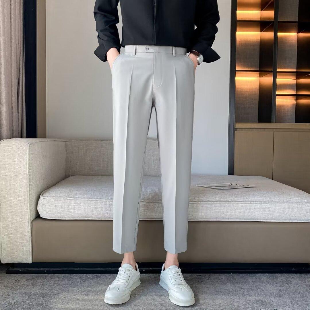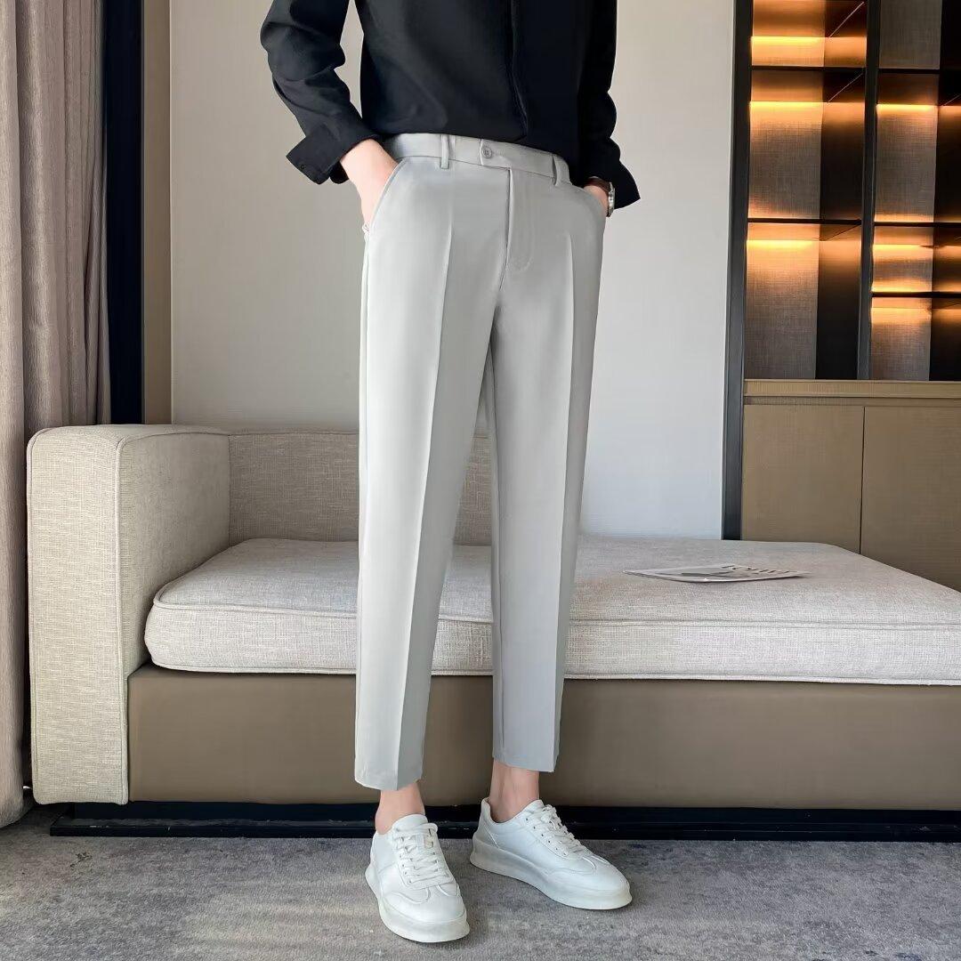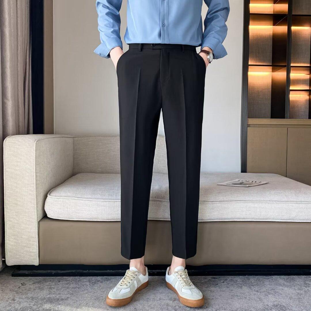 Calças Pequenas Ocidentais de Primavera e Verão Calças de Comprimento no Tornozelo com Pingente Masculino Negócios Casual Moda Coreana Calças Casuais Retas da Moda Finas