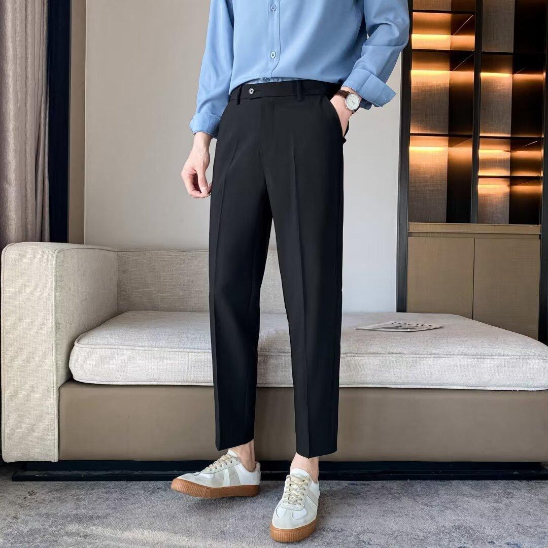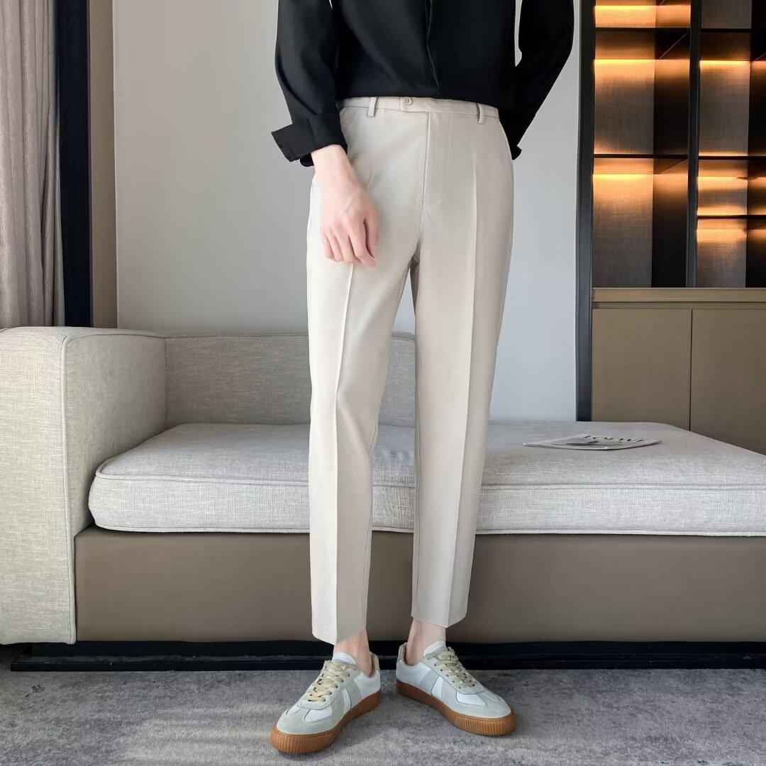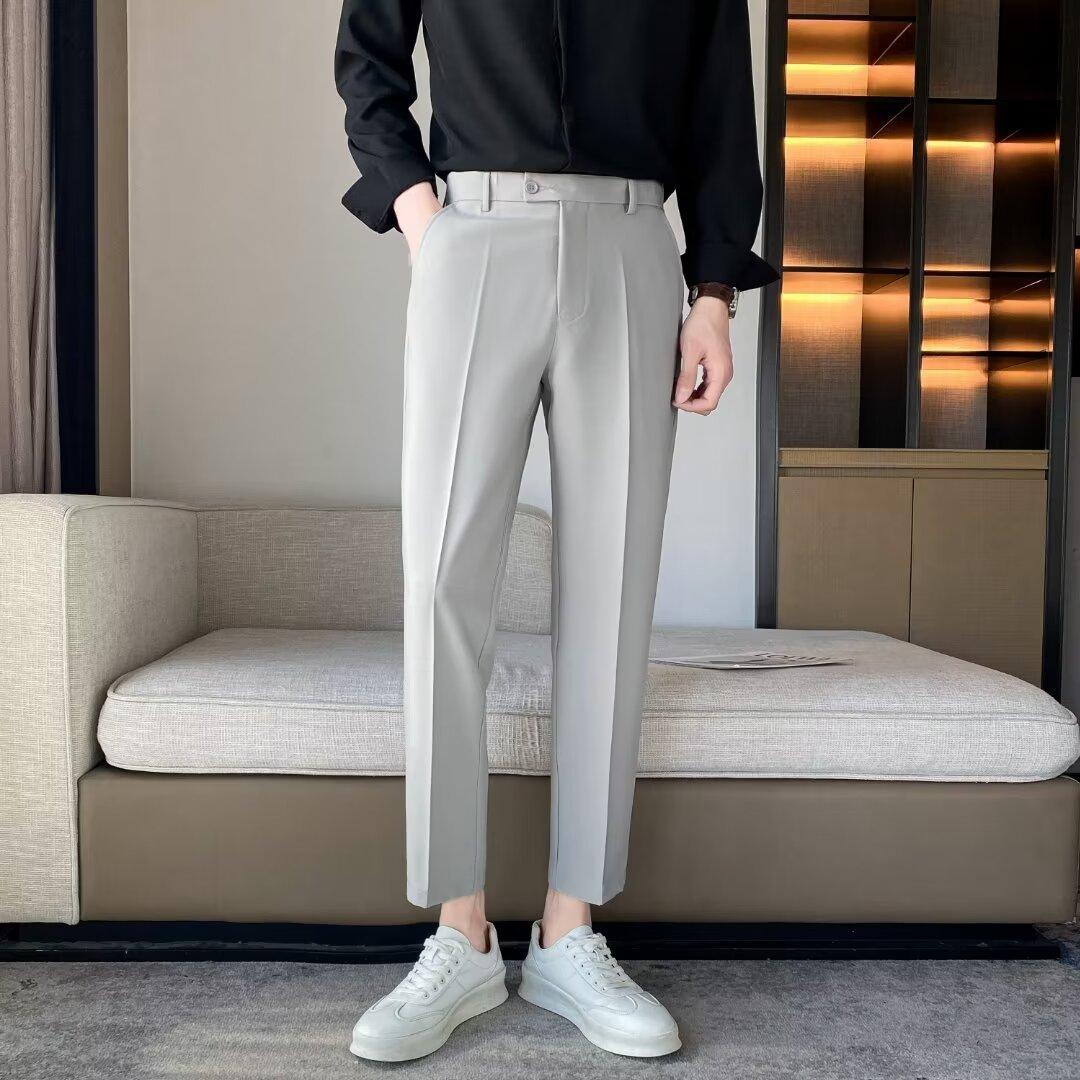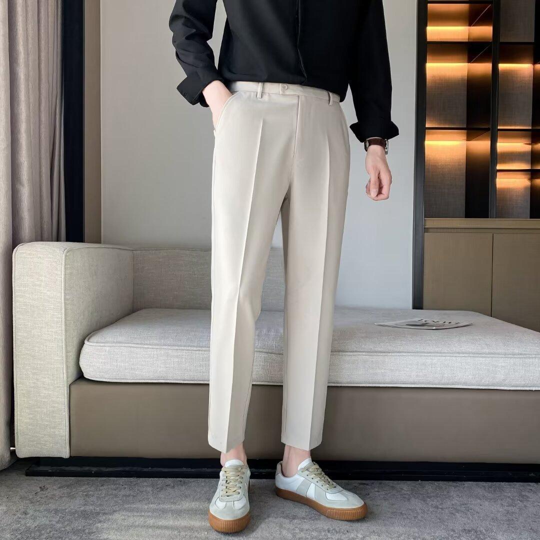 Calças Pequenas Ocidentais de Primavera e Verão Calças de Comprimento no Tornozelo com Pingente Masculino Negócios Casual Moda Coreana Calças Casuais Retas da Moda Finas