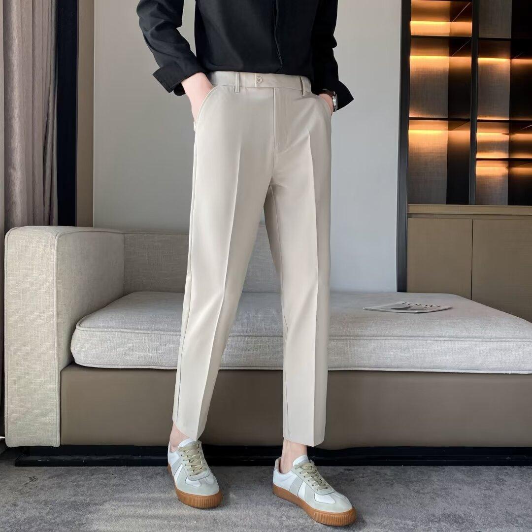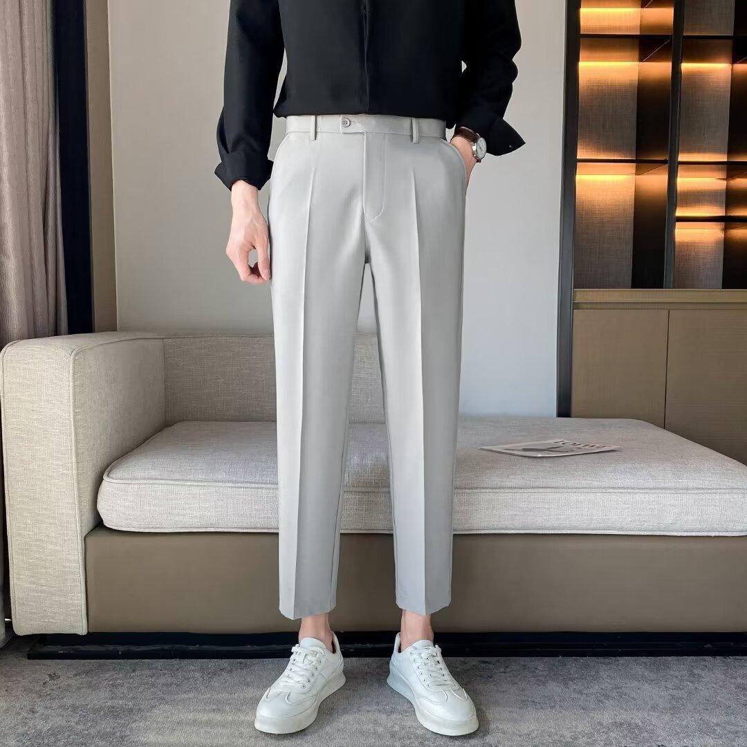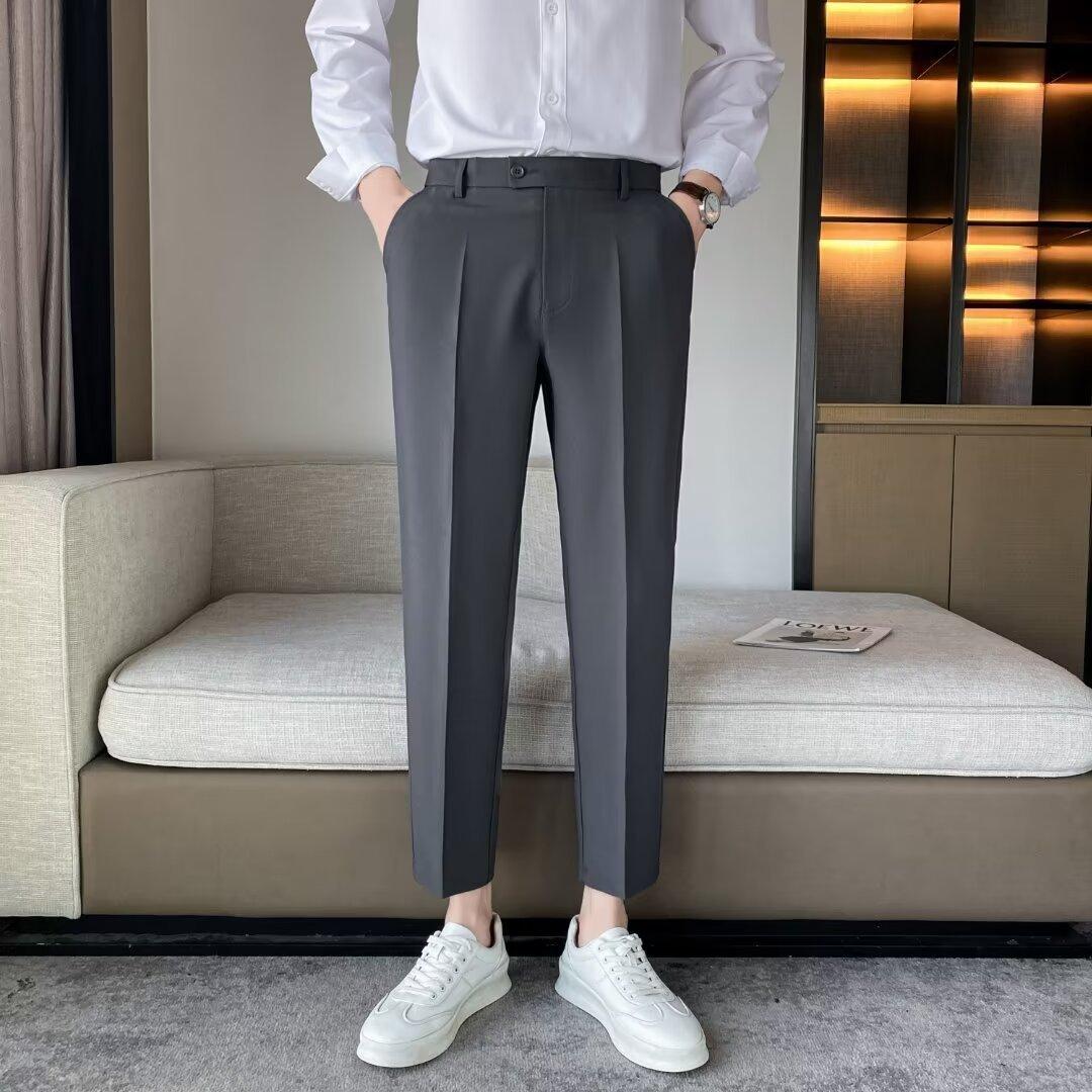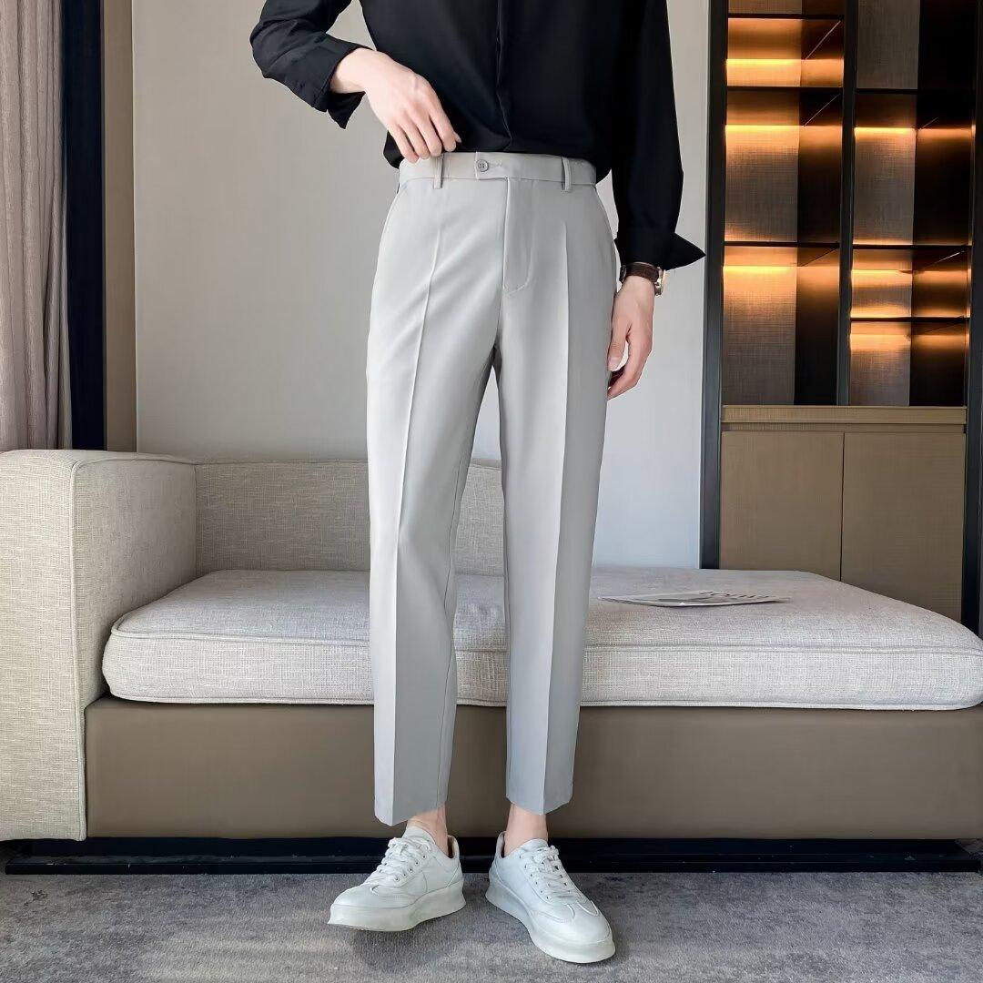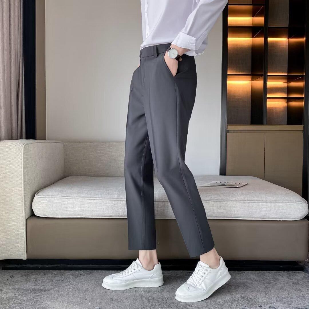 Calças Pequenas Ocidentais de Primavera e Verão Calças de Comprimento no Tornozelo com Pingente Masculino Negócios Casual Moda Coreana Calças Casuais Retas da Moda Finas