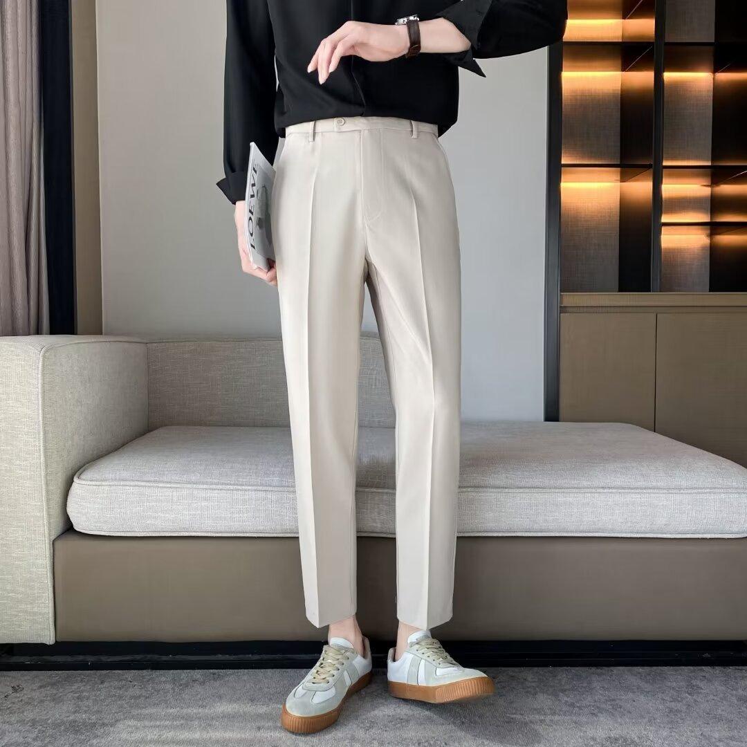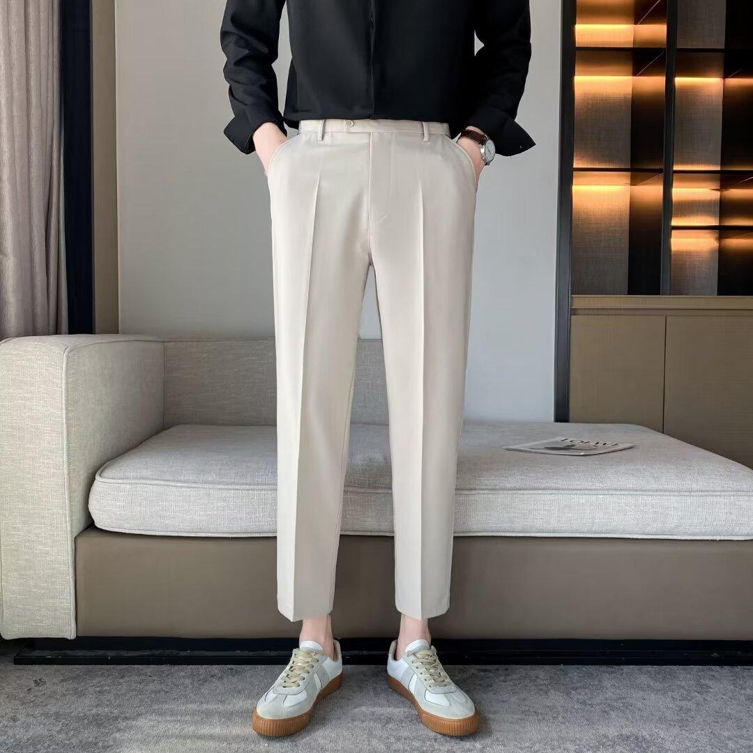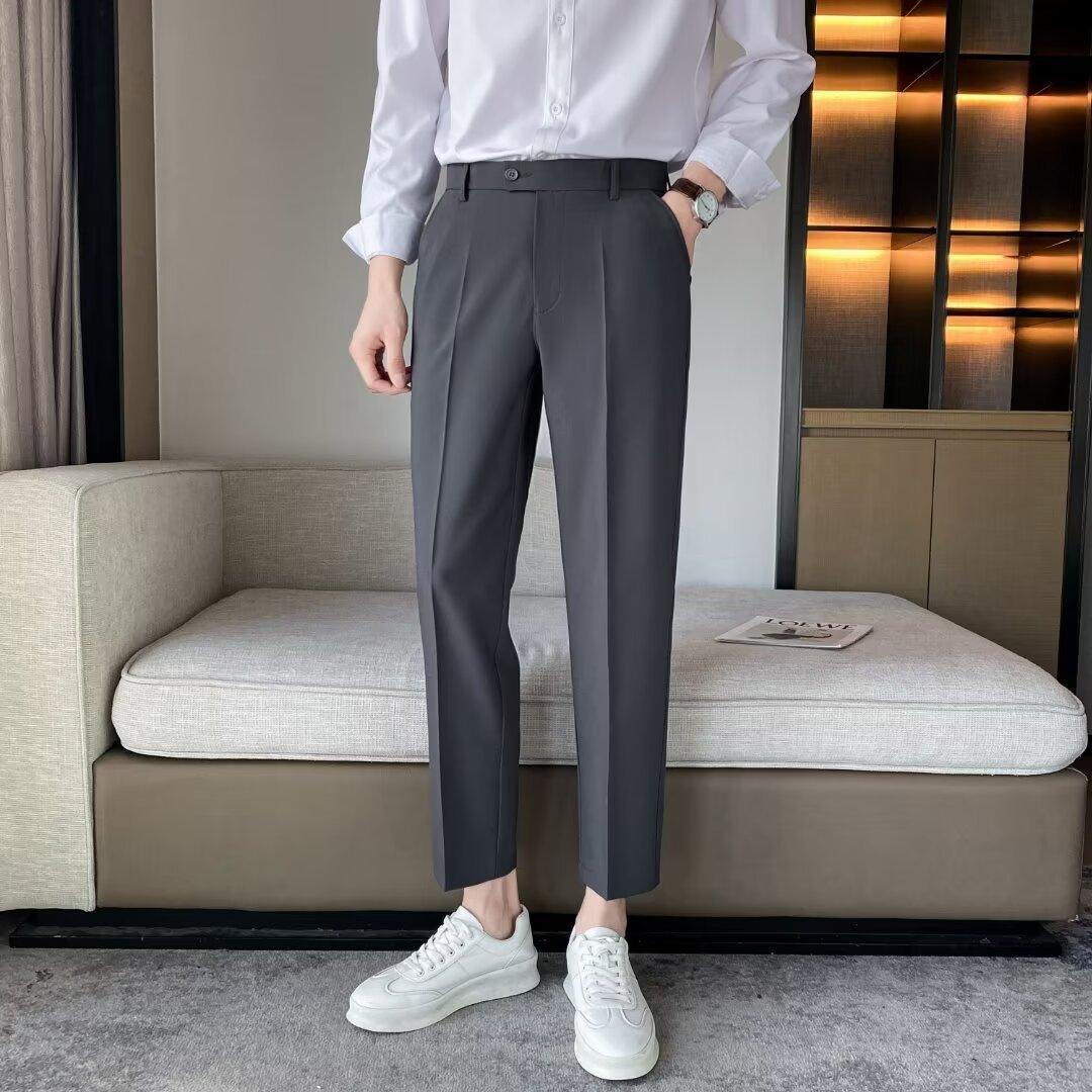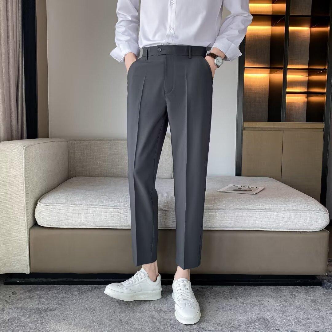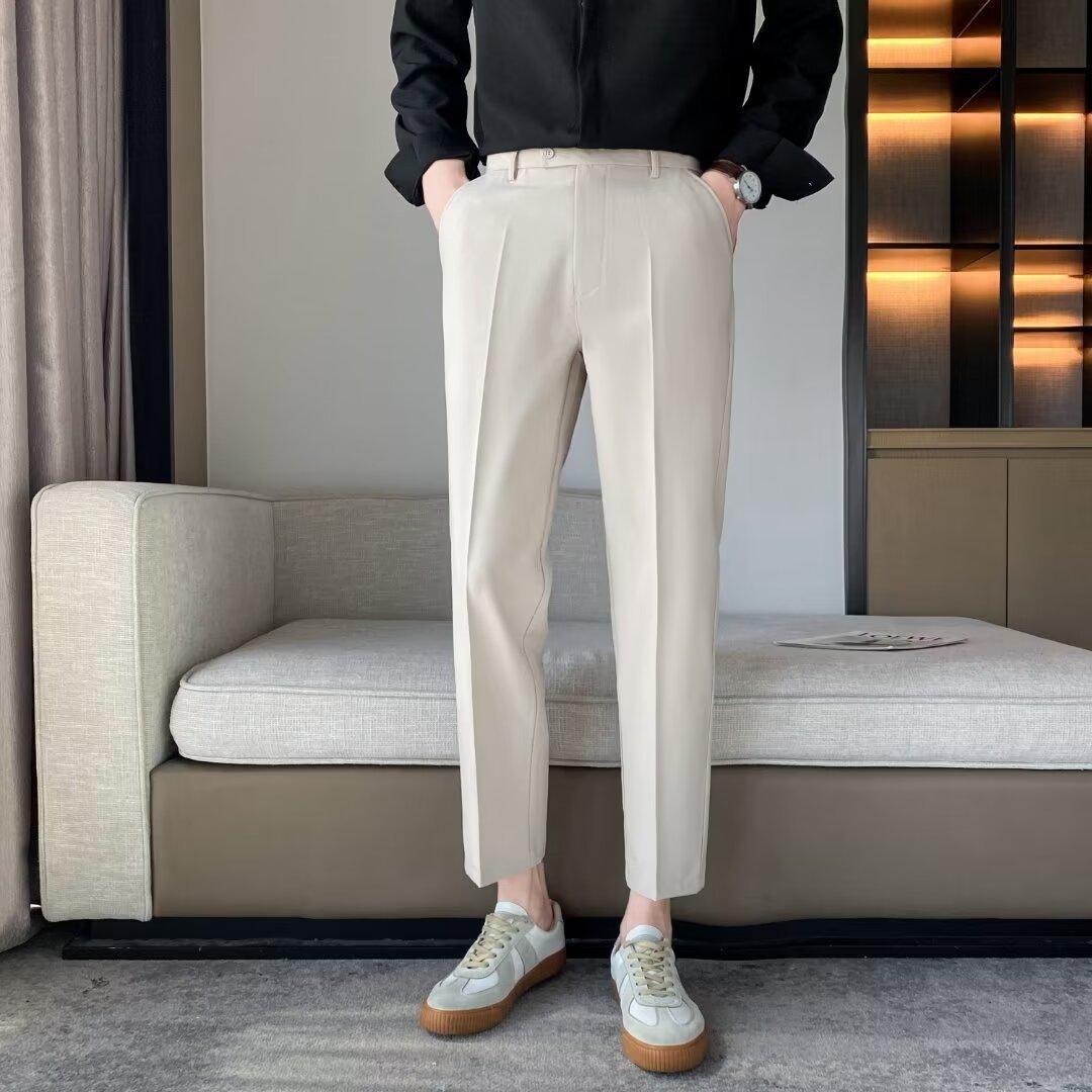 Calças Pequenas Ocidentais de Primavera e Verão Calças de Comprimento no Tornozelo com Pingente Masculino Negócios Casual Moda Coreana Calças Casuais Retas da Moda Finas