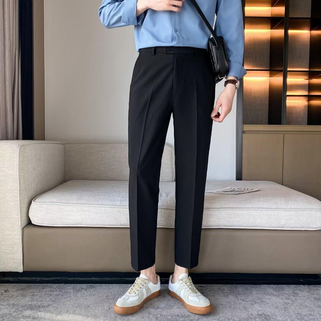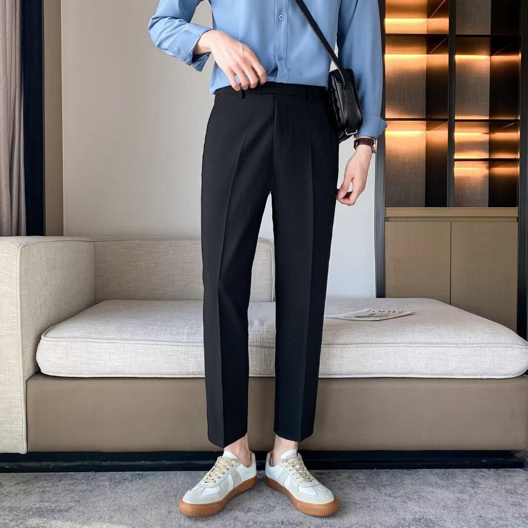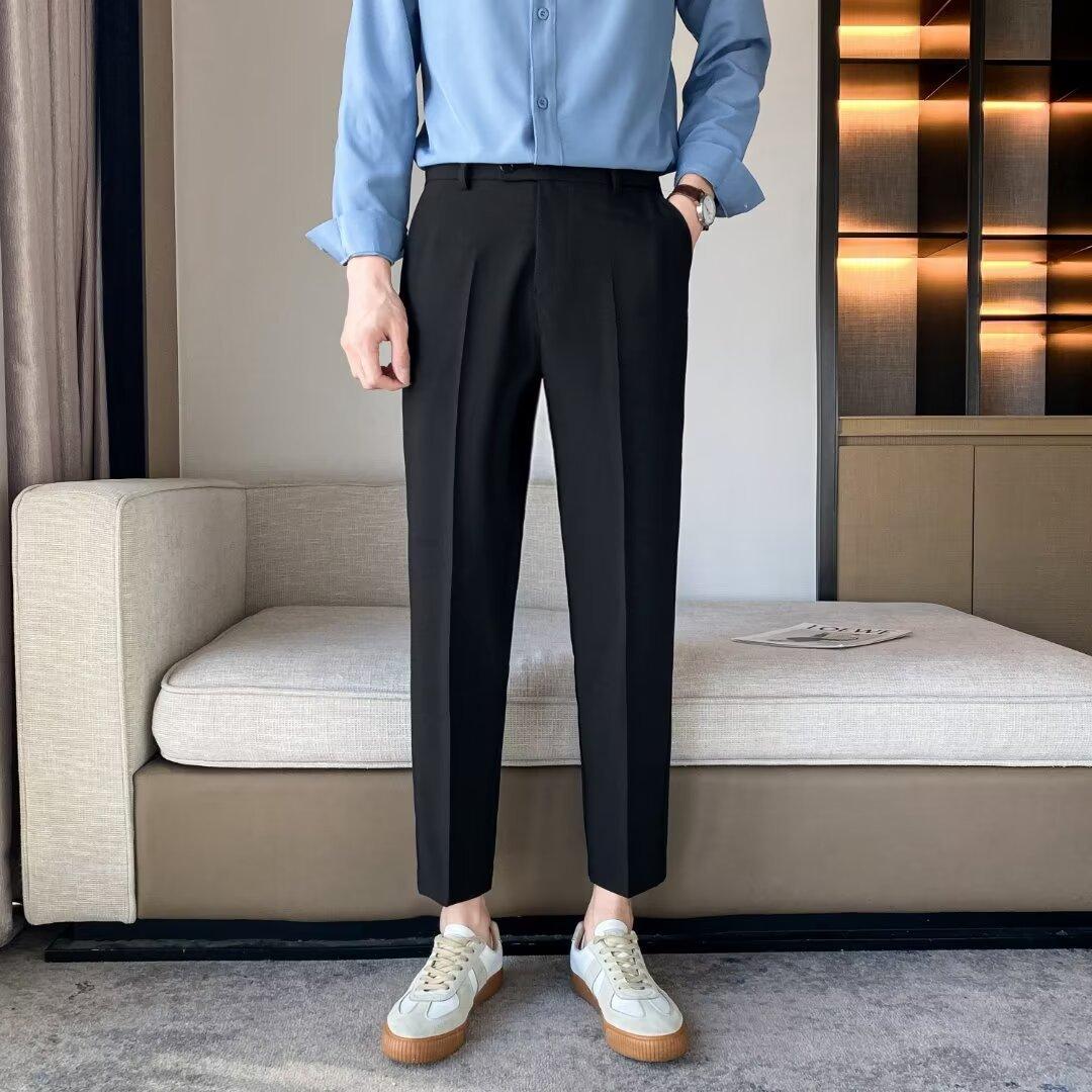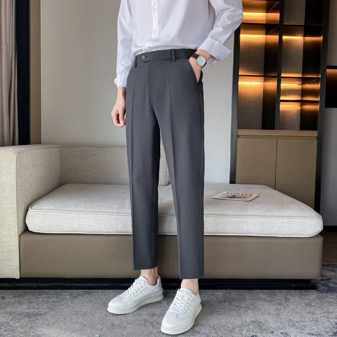 Calças Pequenas Ocidentais de Primavera e Verão Calças de Comprimento no Tornozelo com Pingente Masculino Negócios Casual Moda Coreana Calças Casuais Retas da Moda Finas