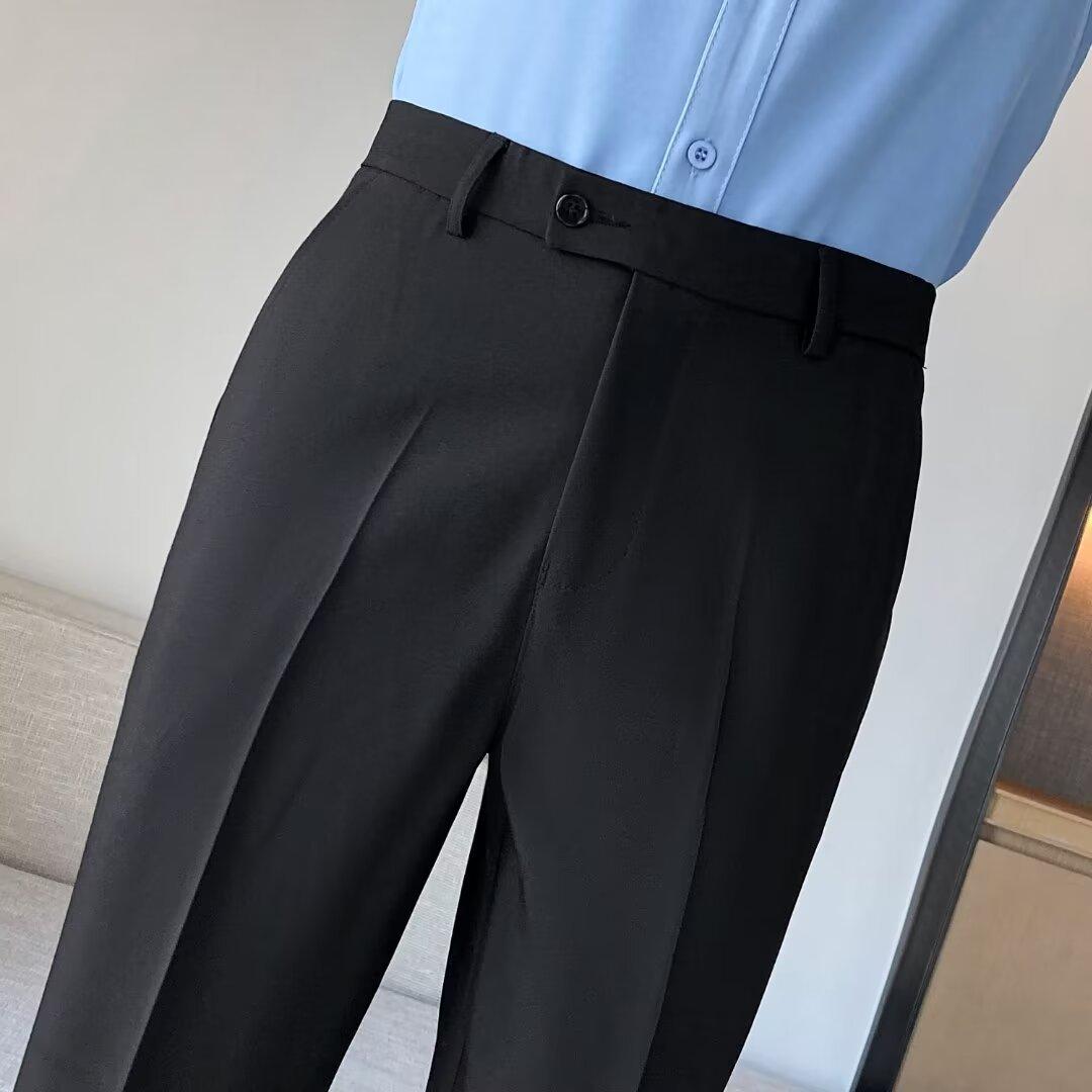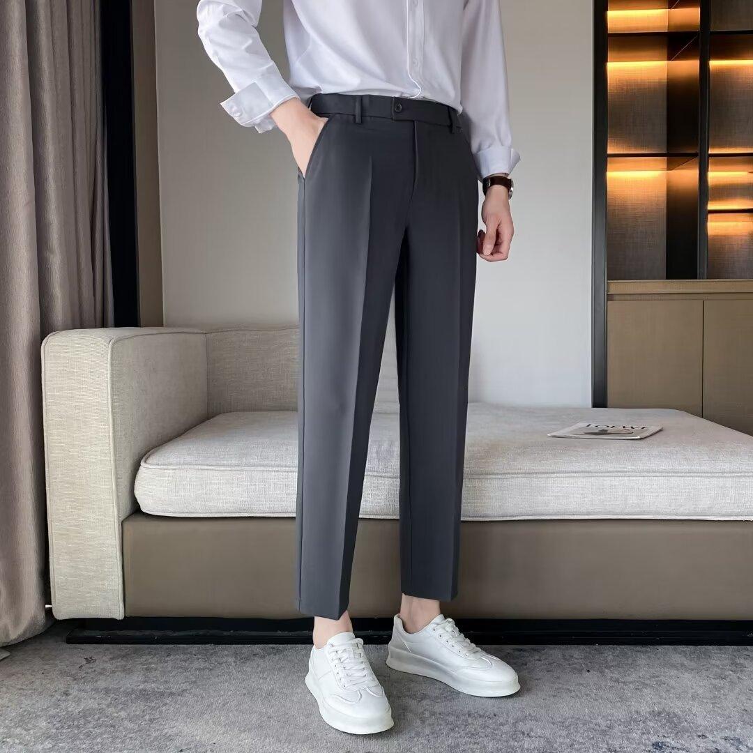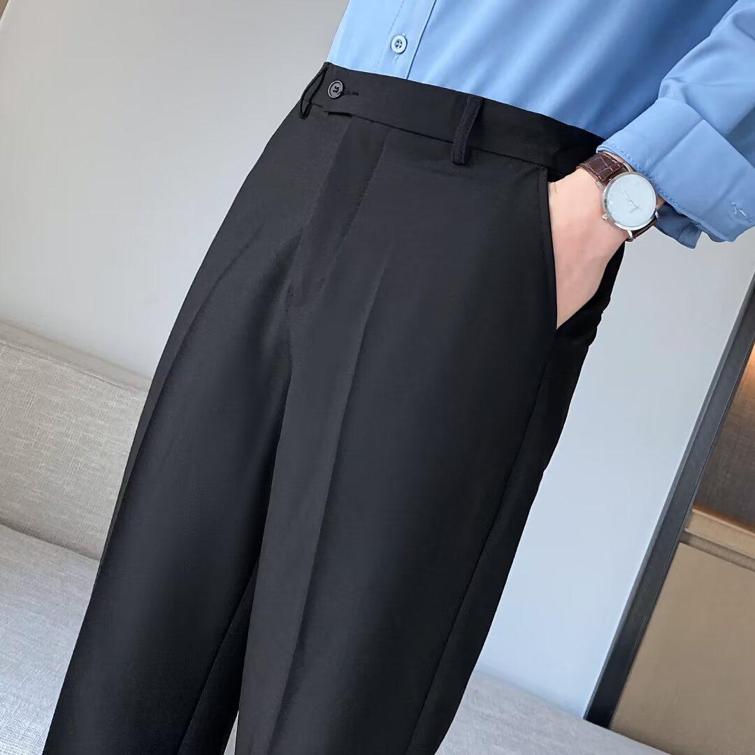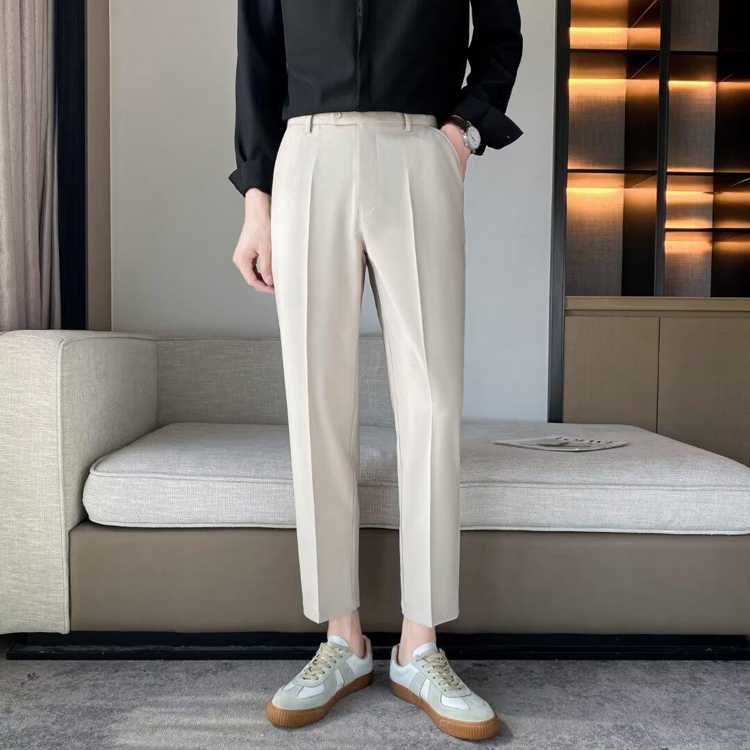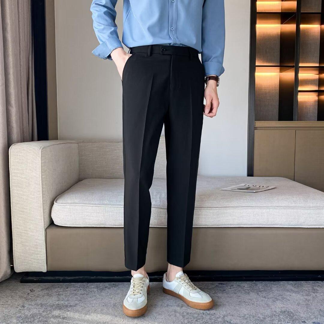 Calças Pequenas Ocidentais de Primavera e Verão Calças de Comprimento no Tornozelo com Pingente Masculino Negócios Casual Moda Coreana Calças Casuais Retas da Moda Finas