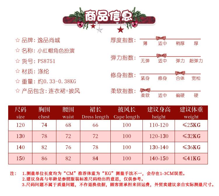 Roupas de Cosplay Chapeuzinho Vermelho Infantil Fornecimento de Comércio Exterior Contos de Fadas Fantasias de Palco Fantasias de Halloween