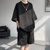 Terno de Manga Curta com Textura Jacquard Masculino Ins Verão Tamanho Plus Tamanho Plus Moderno Pessoas Gordas Solto Camiseta Shorts Conjunto de Duas Peças