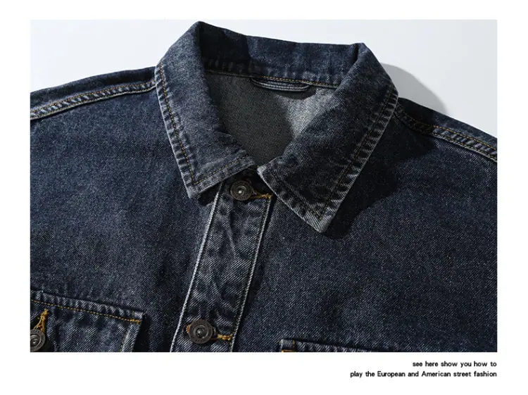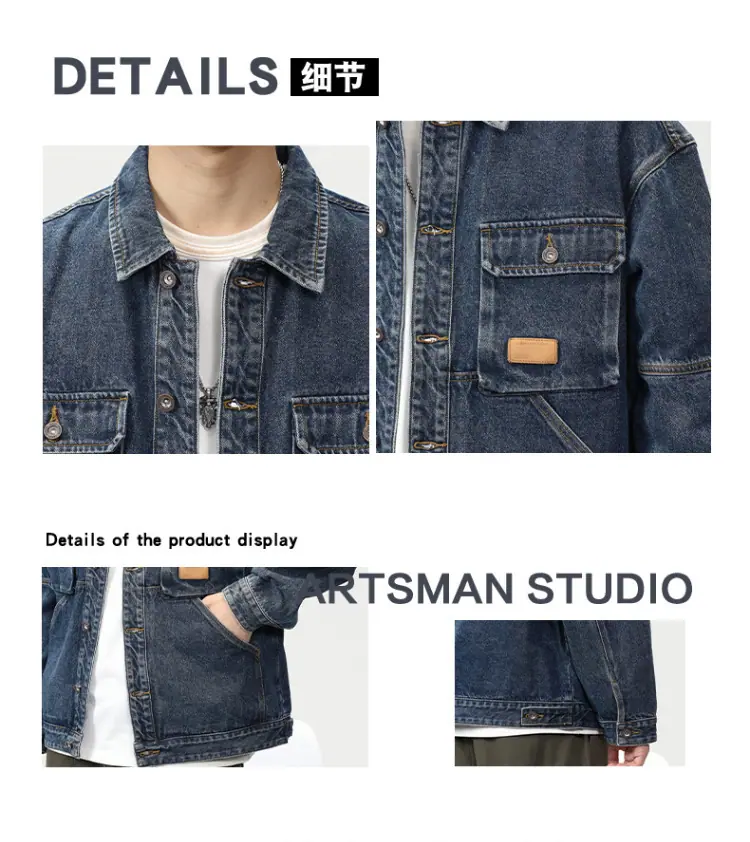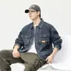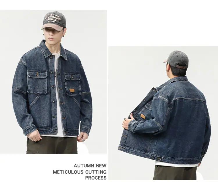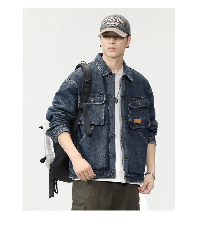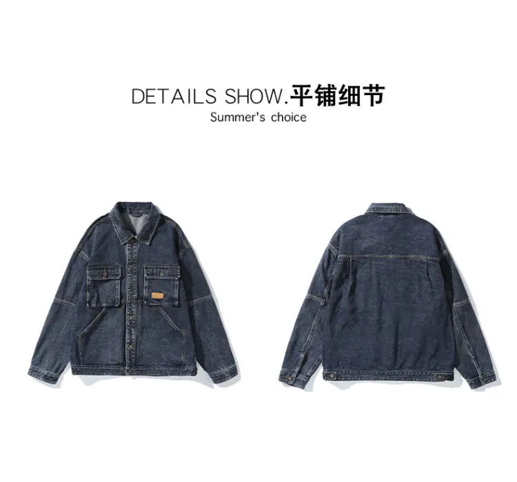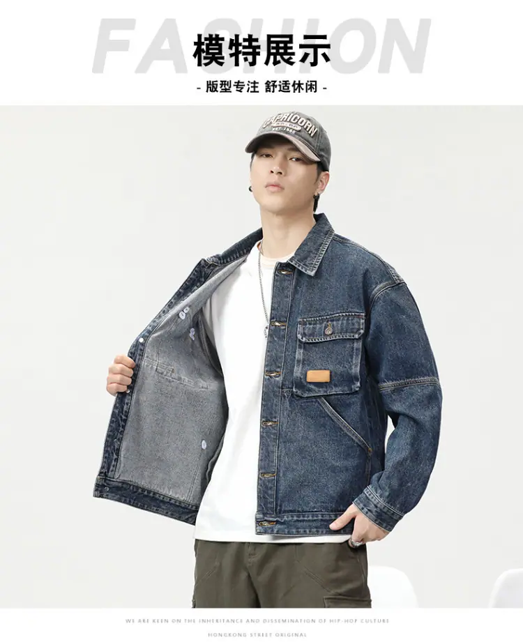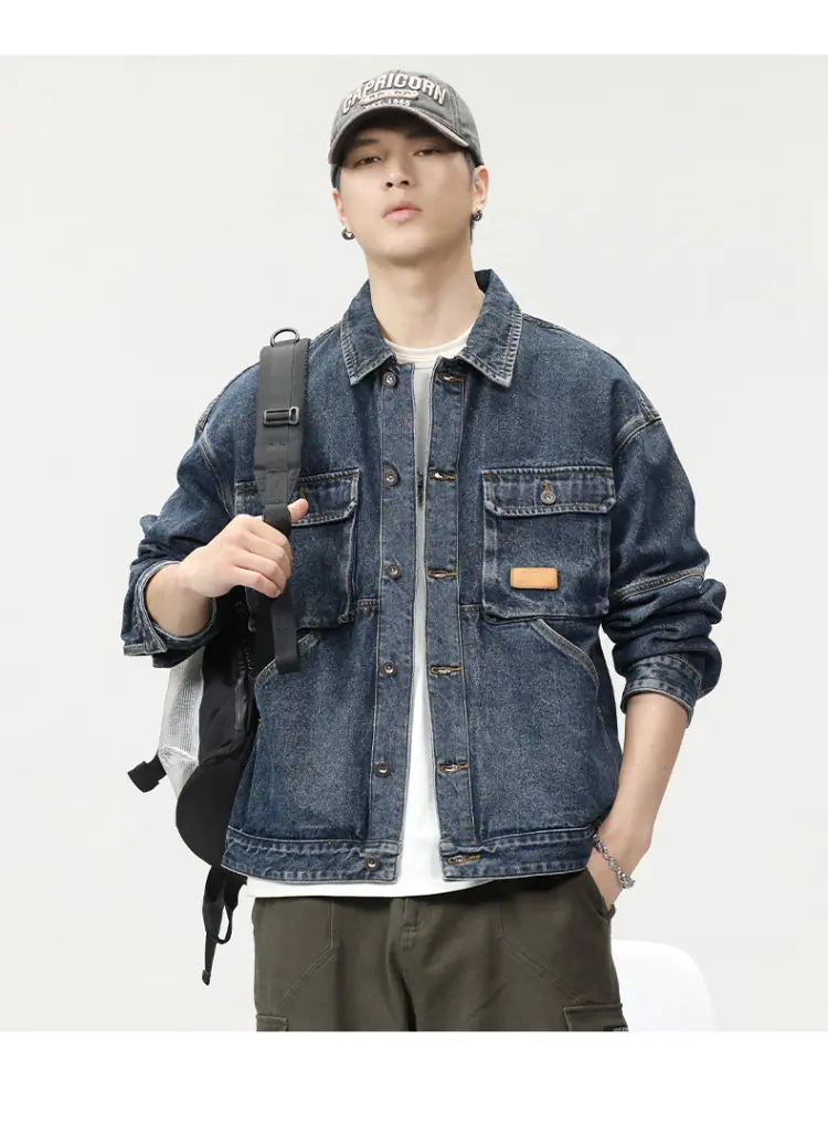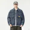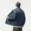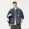 Jaqueta Jeans Workwear Retrô High-End Lavagem Pesada Masculina Primavera e Outono Solta Americana High Street Atacado