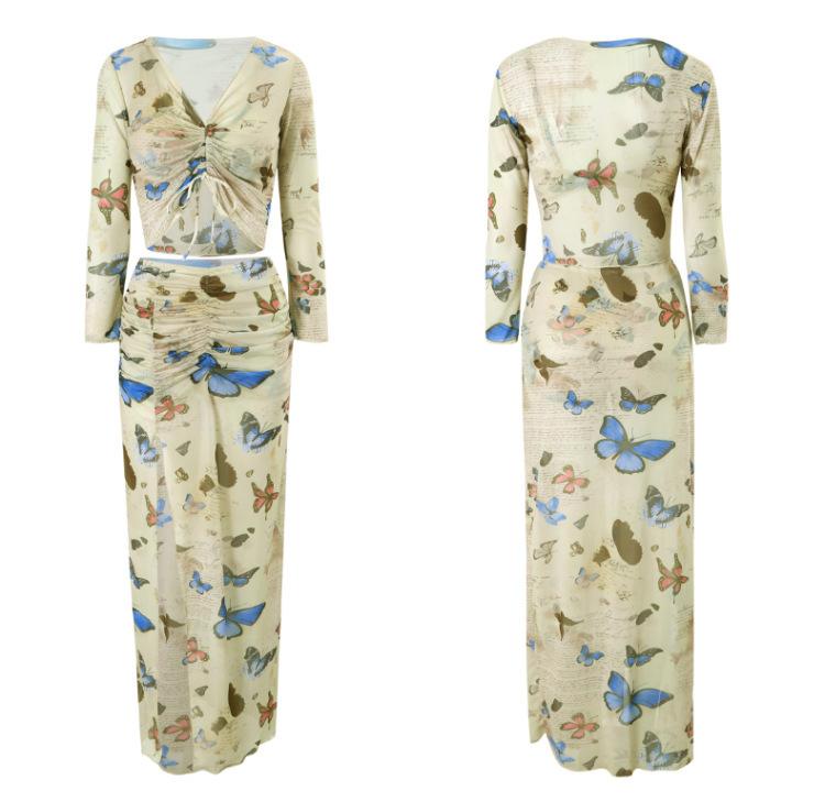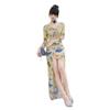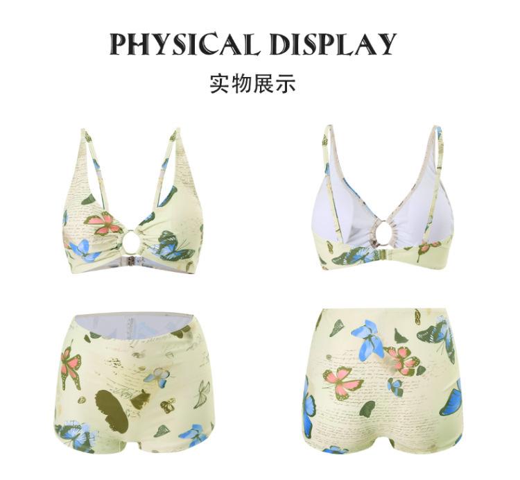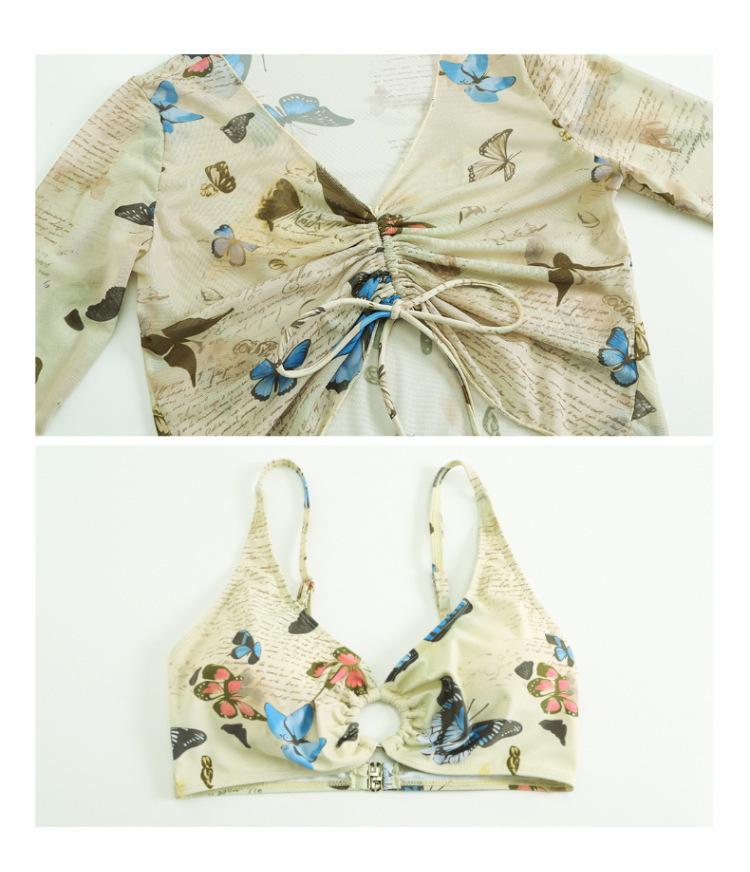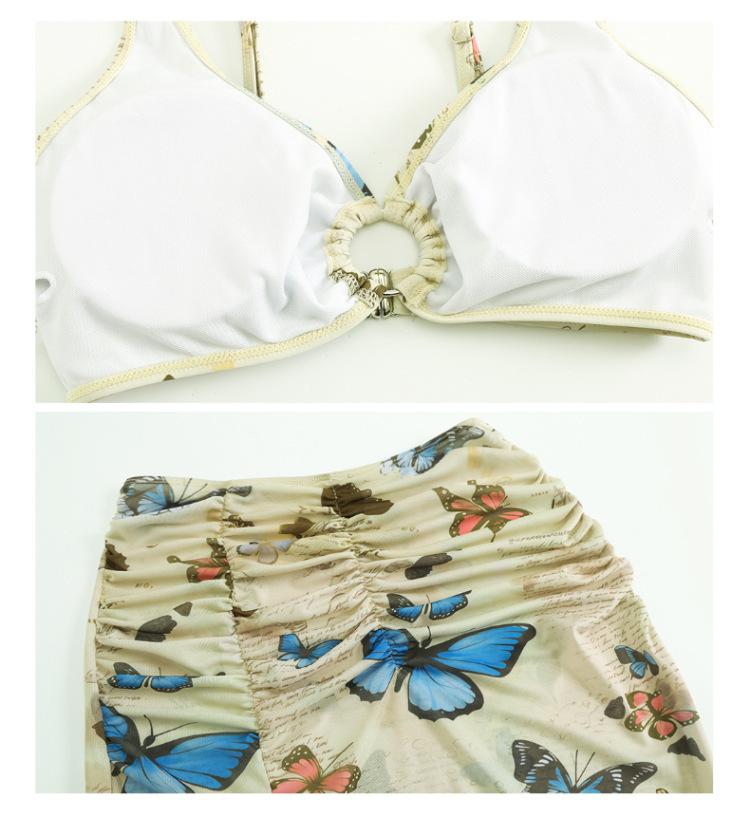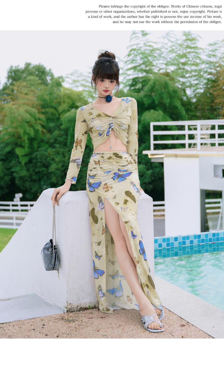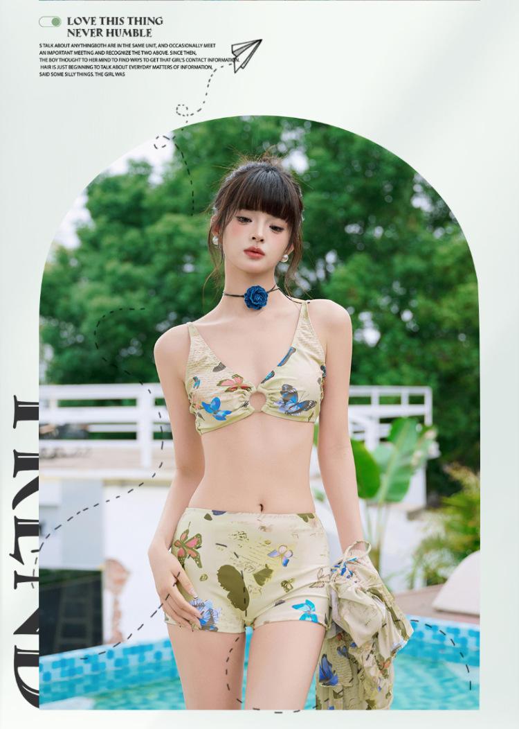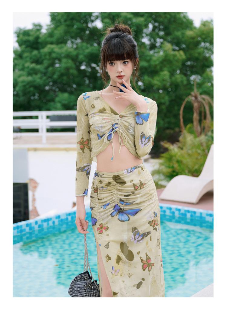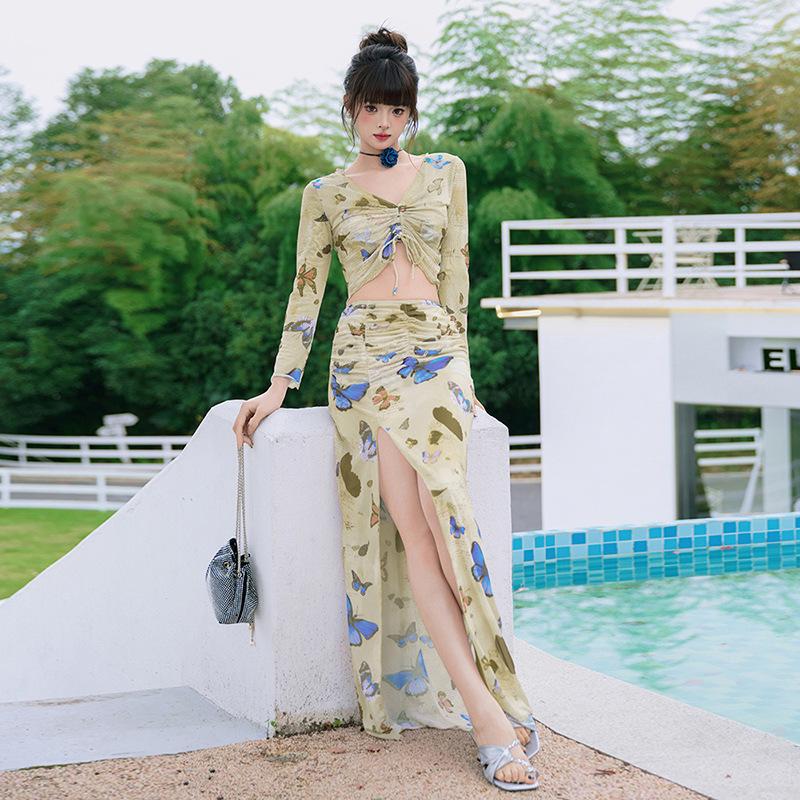 Biquíni Sexy Pure Desire Plus Size Estampado Manga Longa Saia Longa Conjunto de Quatro Peças Saia Plissada Cobre Cintura e Quadril Fato de Banho Feminino para Gordinhas