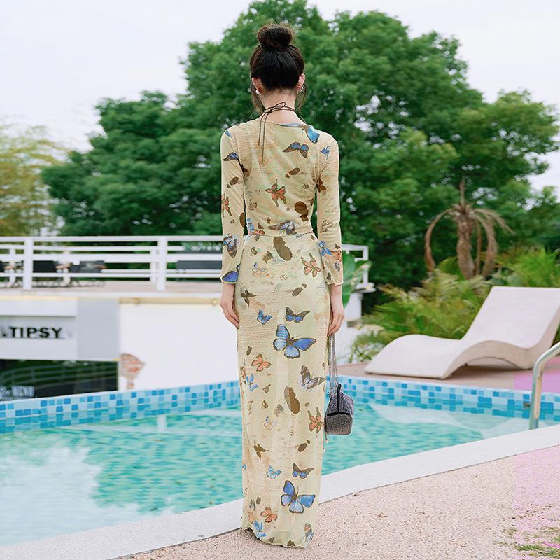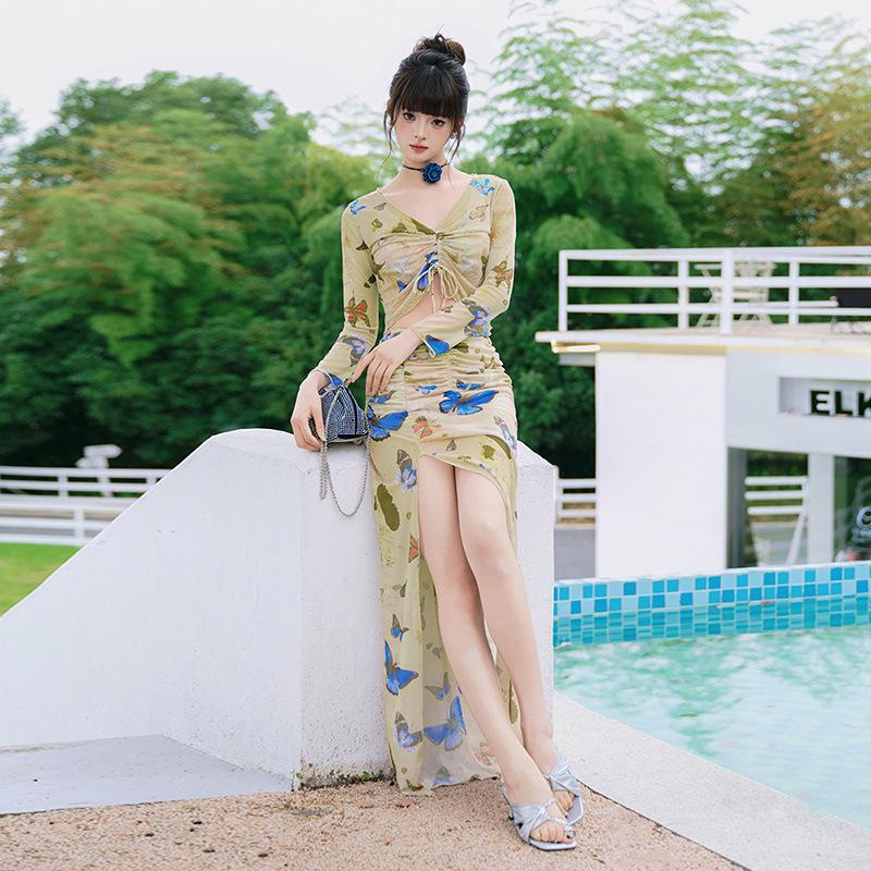 Compre Biquíni Sexy Pure Desire Plus Size Estampado Manga Longa Saia Longa Conjunto de Quatro Peças Saia Plissada Cobre Cintura e Quadril Fato de Banho Feminino para Gordinhas no atacado no Joom.pro