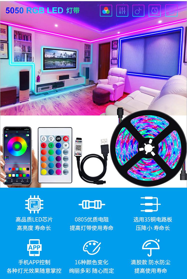 Fornecimento Exclusivo Transfronteiriço de Fitas de Luz 5050, Fitas de Luz RGB, LED Autoadesivo USB Colorido Baixa Tensão 5V Luzes de Atmosfera de Fundo para TV