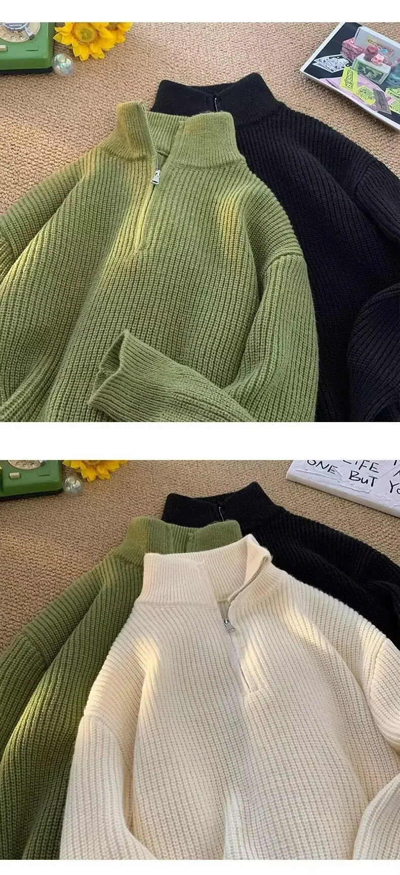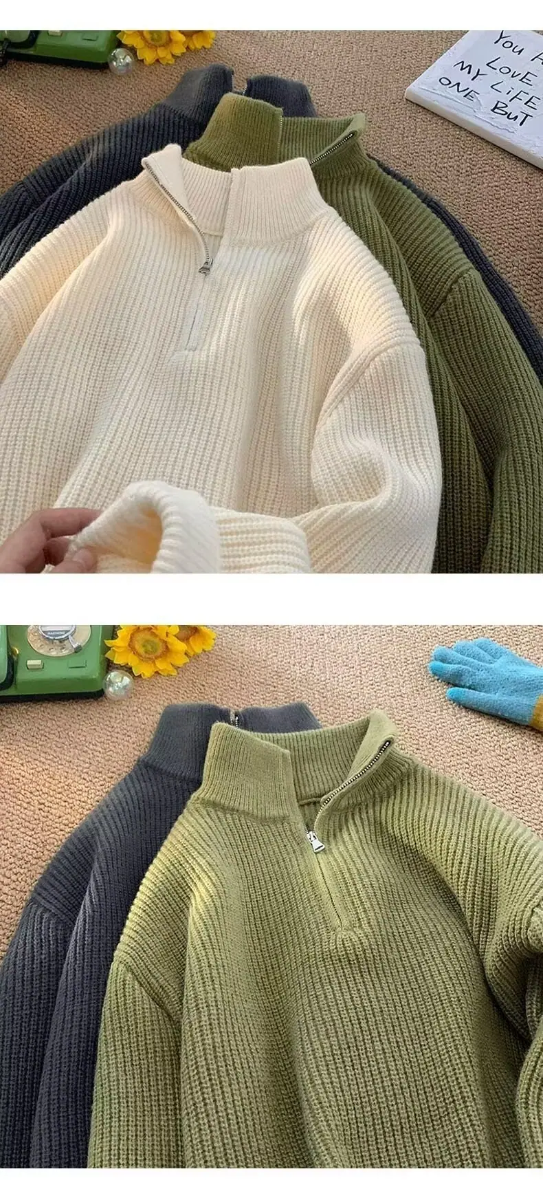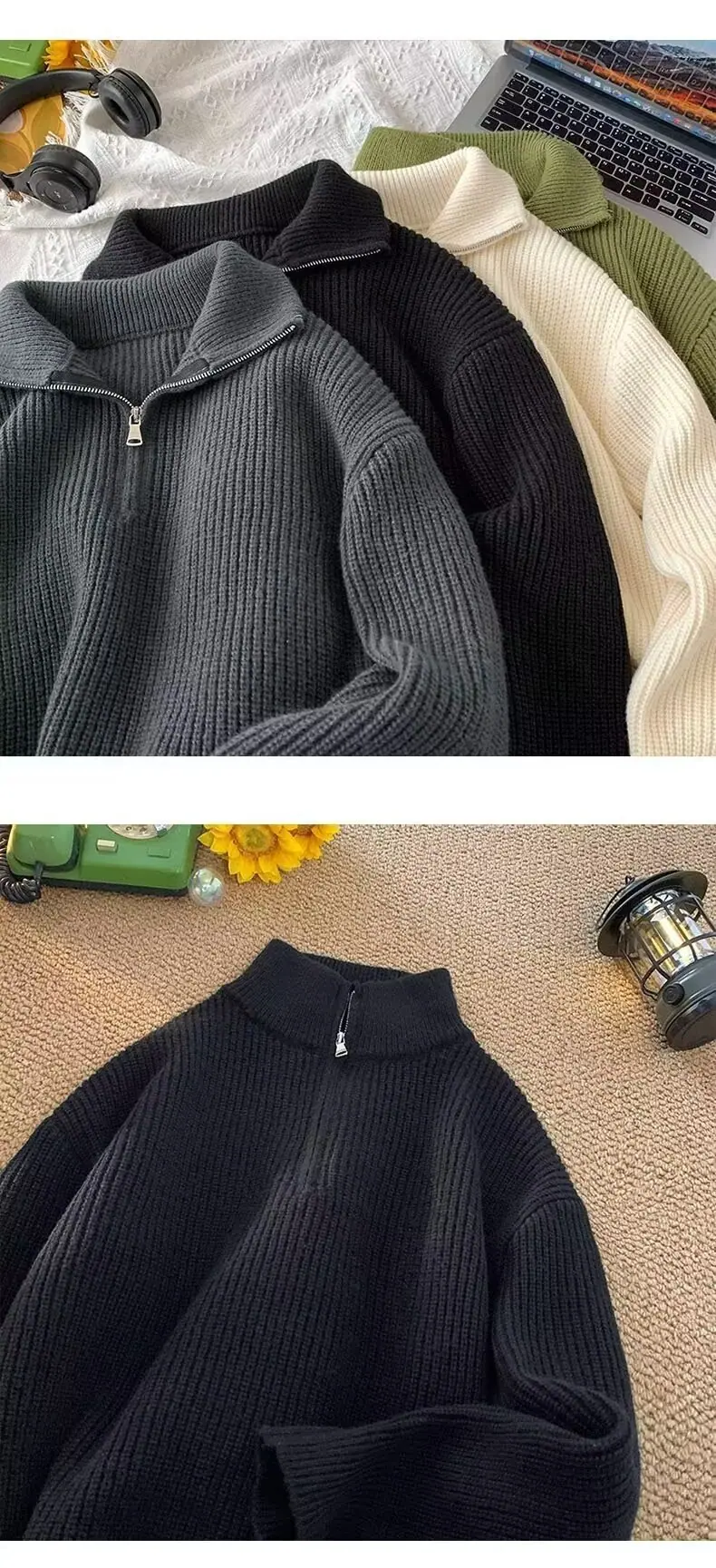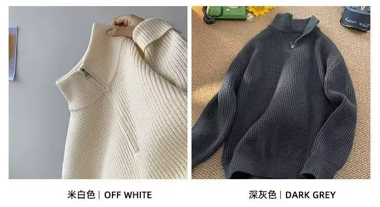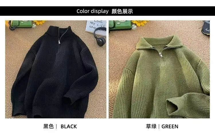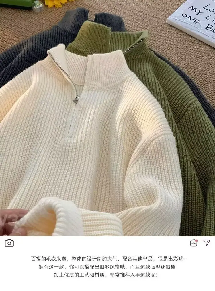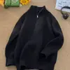 Suéter Gola Alta Regular Masculino Preto Meio Zíper Camiseta Base Jaqueta Inverno Pulôver Adolescentes Moderno Espessado Tipo Reto