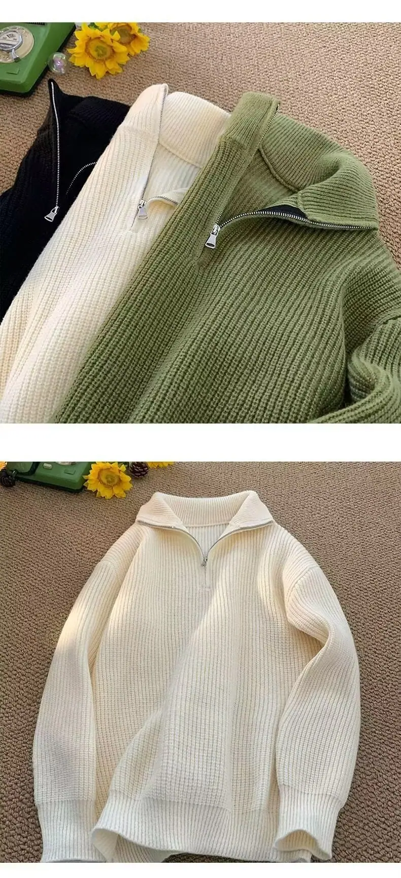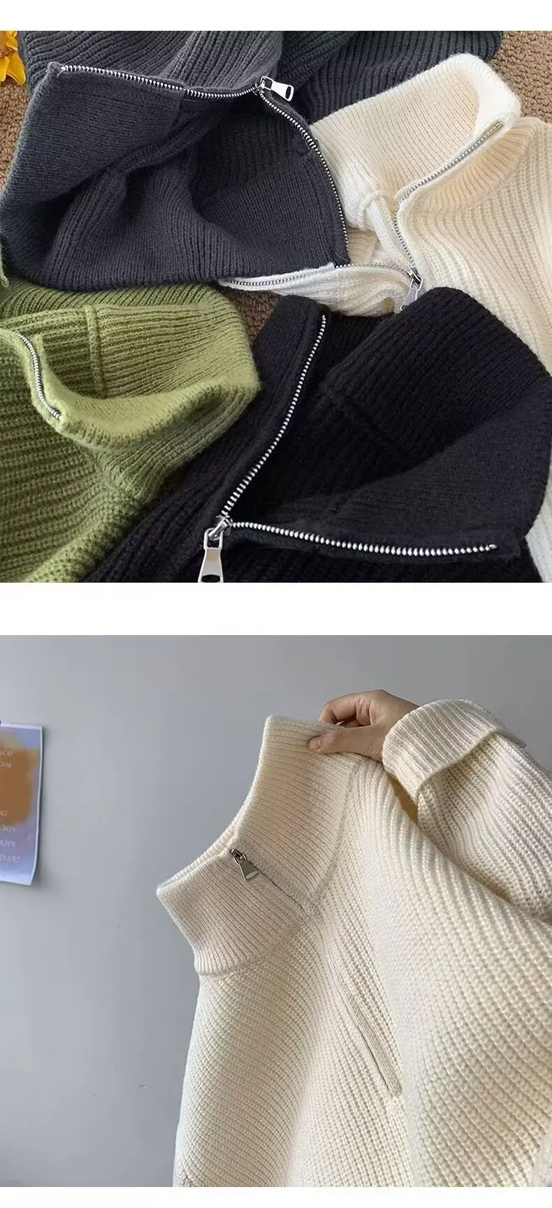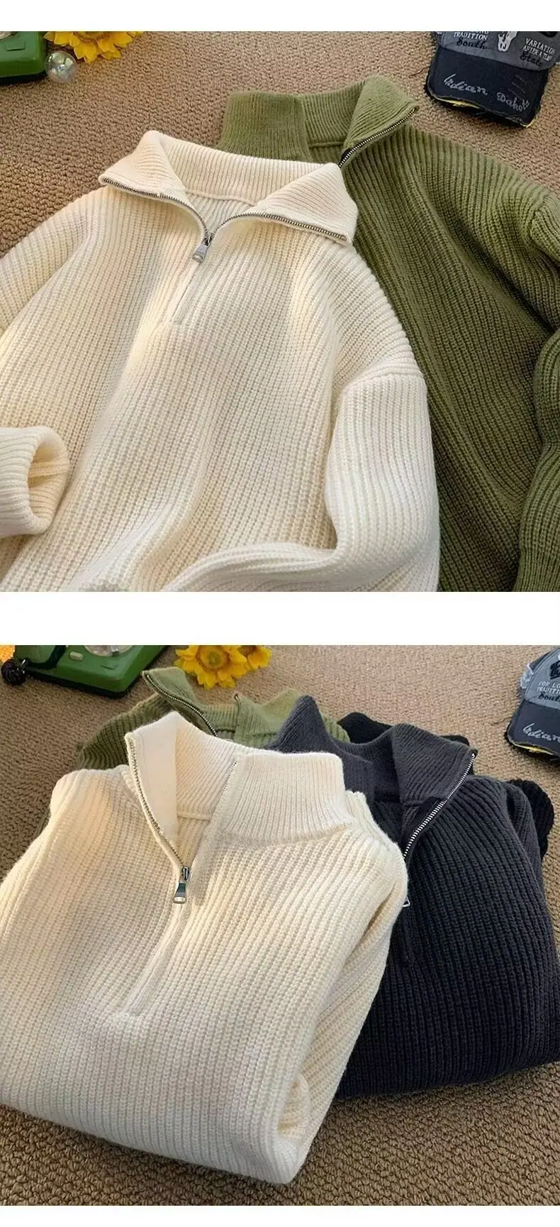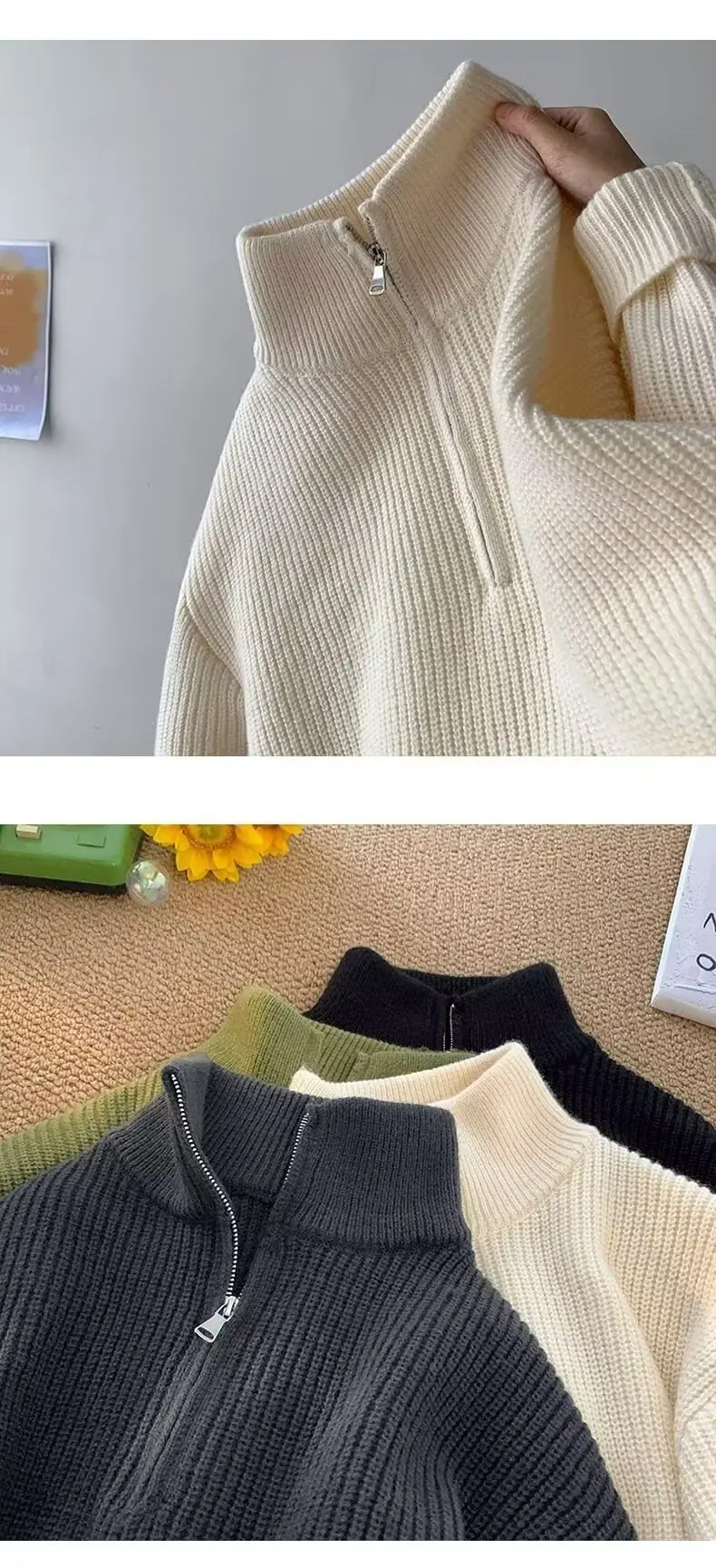 Suéter Gola Alta Regular Masculino Preto Meio Zíper Camiseta Base Jaqueta Inverno Pulôver Adolescentes Moderno Espessado Tipo Reto