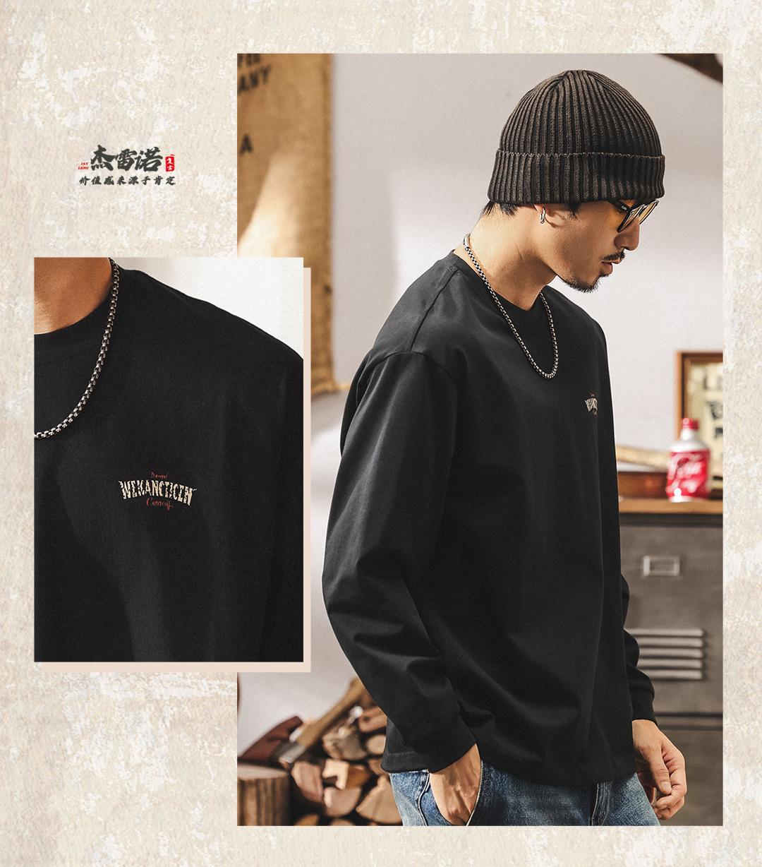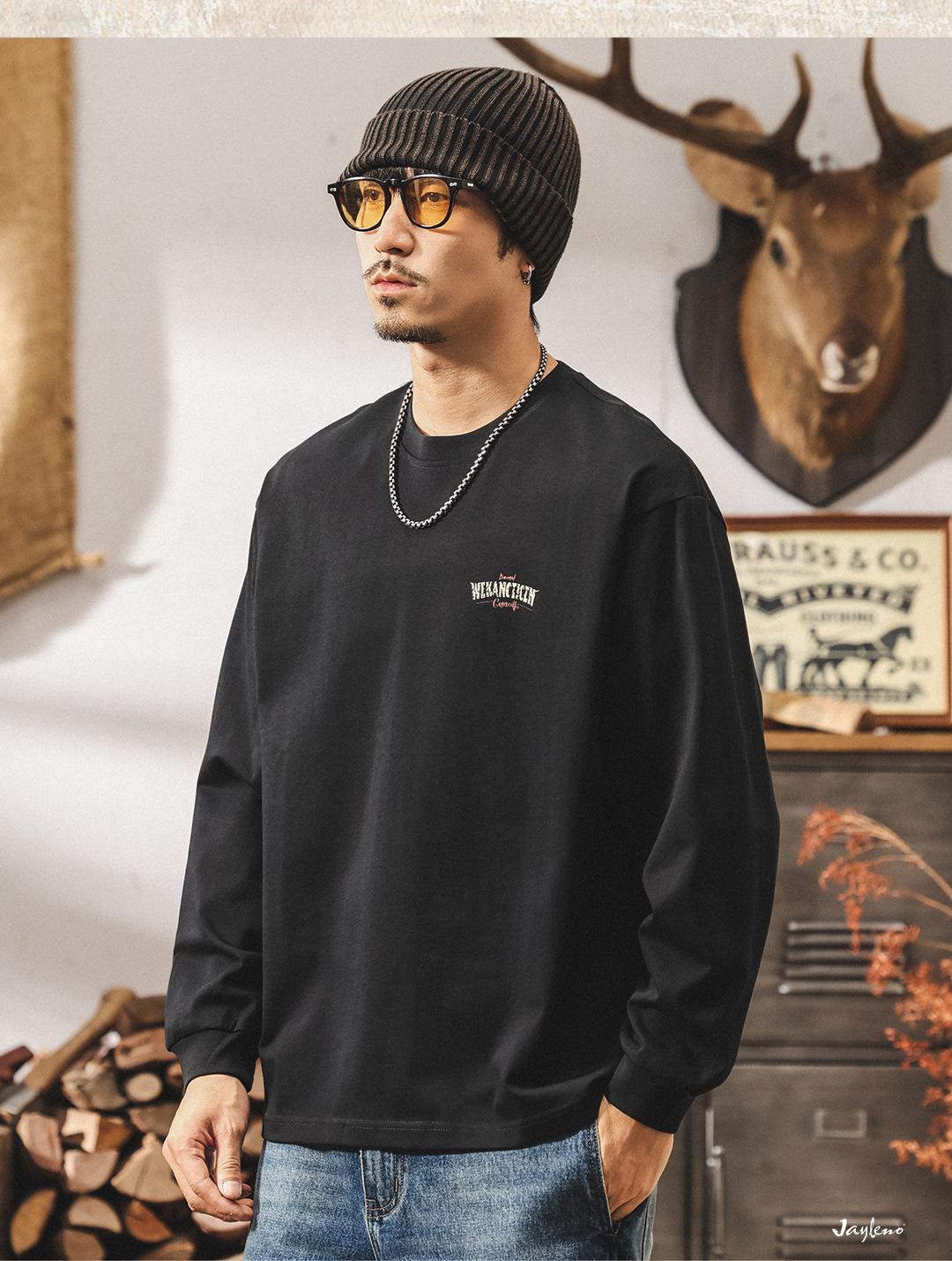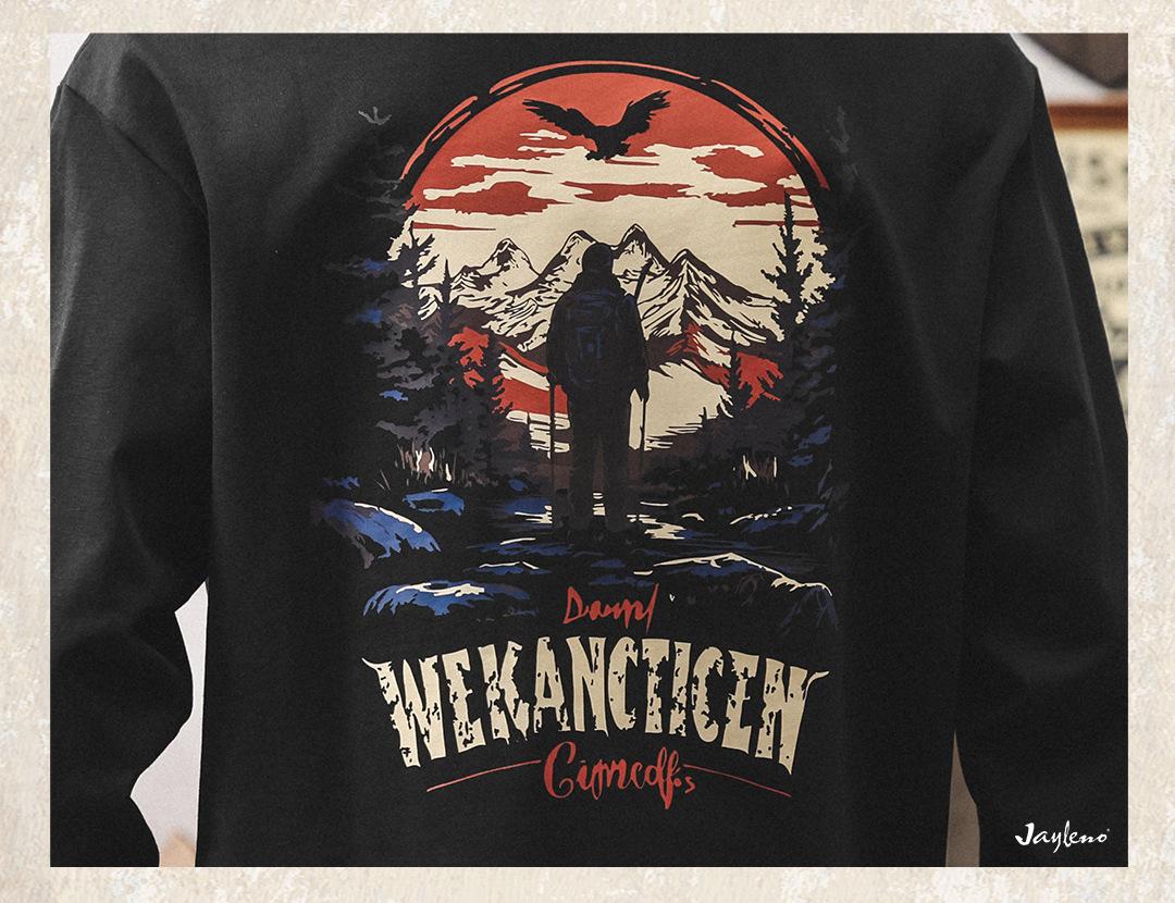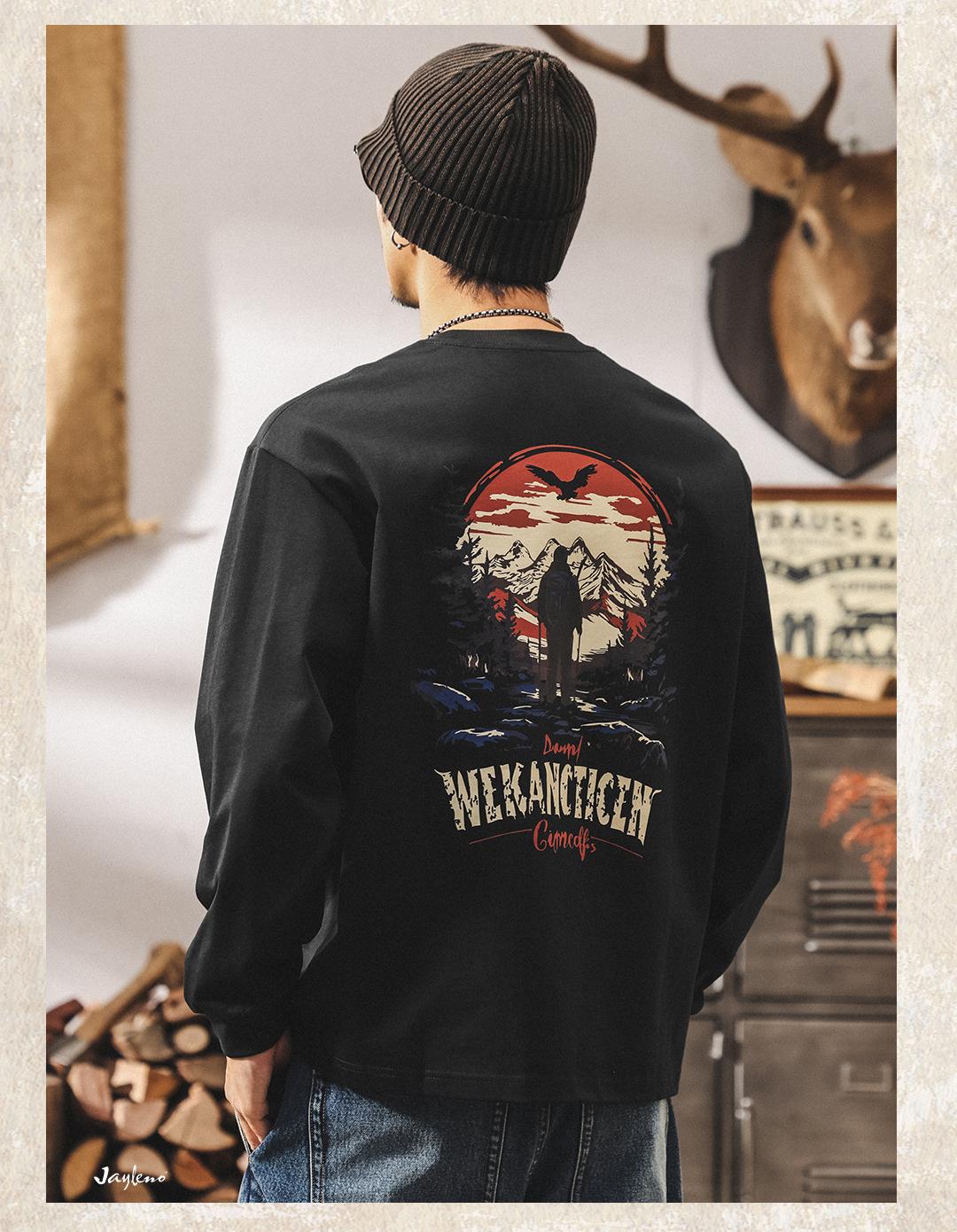 Camiseta Masculina Outdoor Manga Longa Estilo Montanha Americana 2025 Nova Tendência 300g Pesada Solta Plus Size Outono Top Masculino