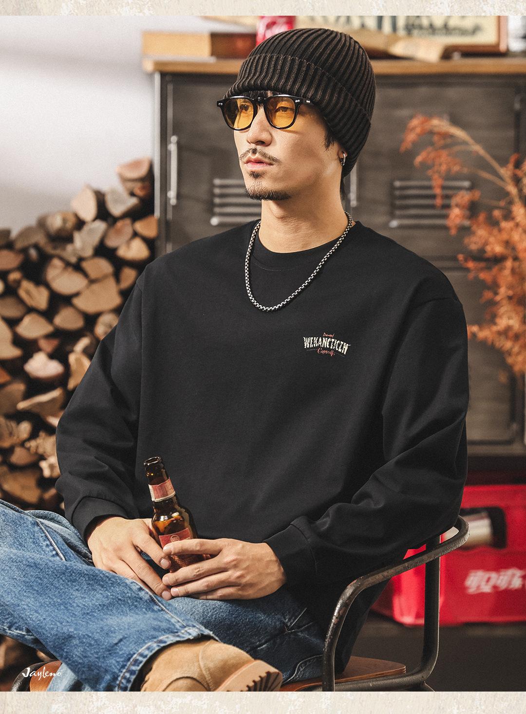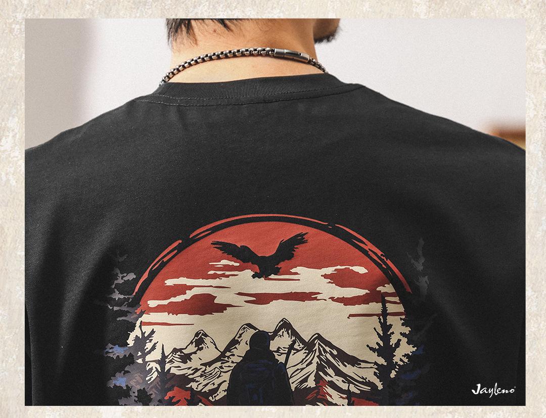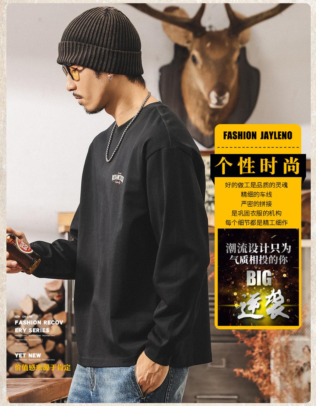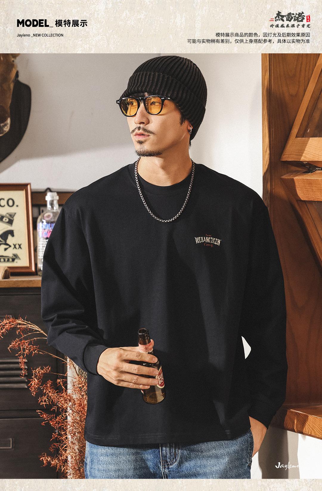 Camiseta Masculina Outdoor Manga Longa Estilo Montanha Americana 2025 Nova Tendência 300g Pesada Solta Plus Size Outono Top Masculino