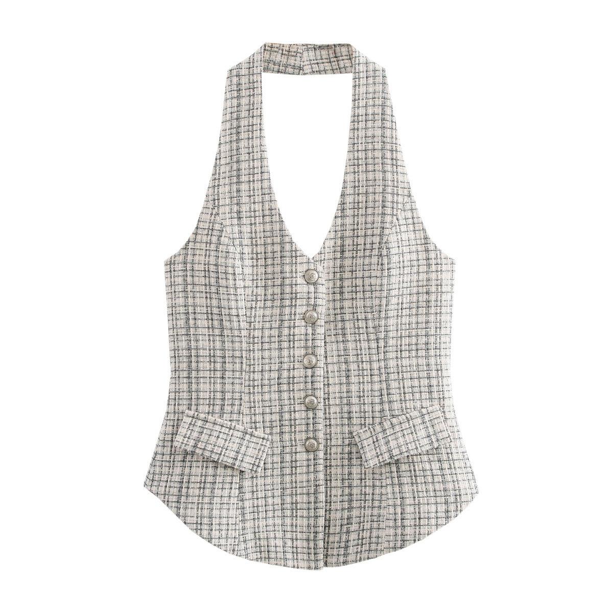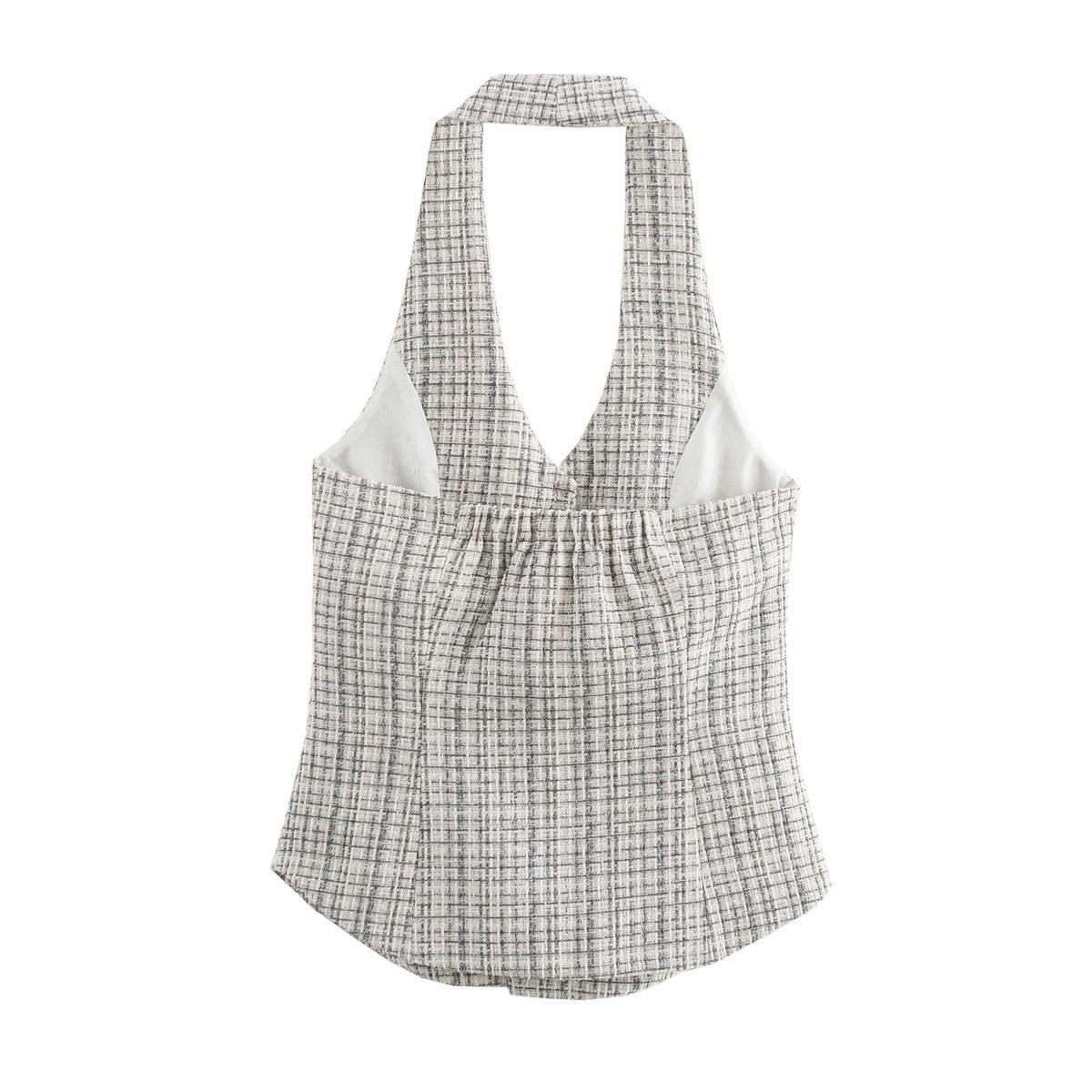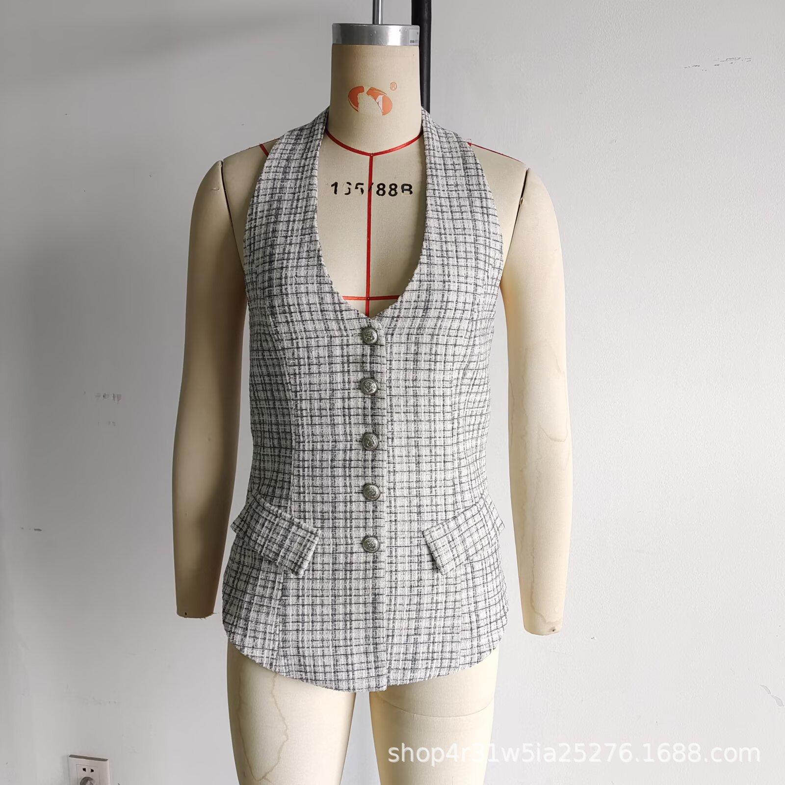 Compre Verão 2025 Novo Estilo Europeu e Americano Moda Simples Regatas Sem Mangas para Mulheres Versátil Pequeno Fragrância Halter Colete Atacado no atacado no Joom.pro