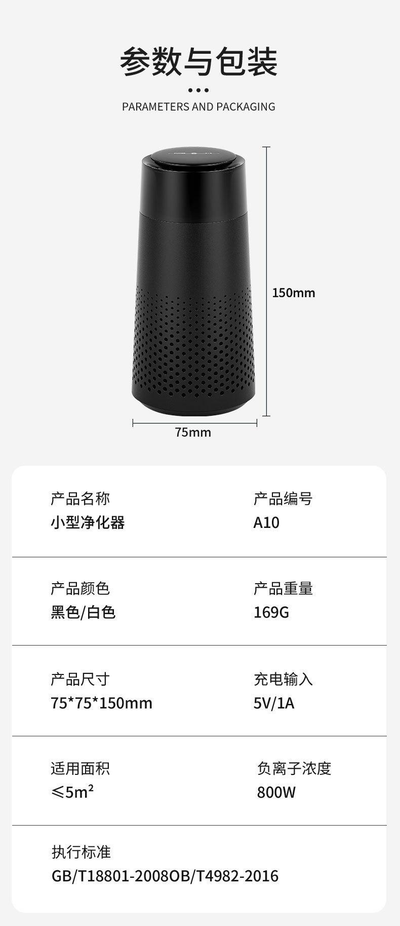 Conteúdo da embalagem: Purificador (incluindo um filtro) x1, cabo de carregamento x1, manual de instruções x1