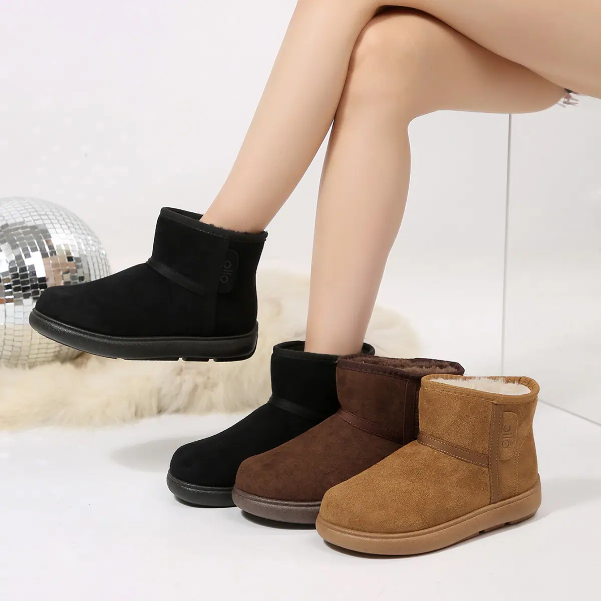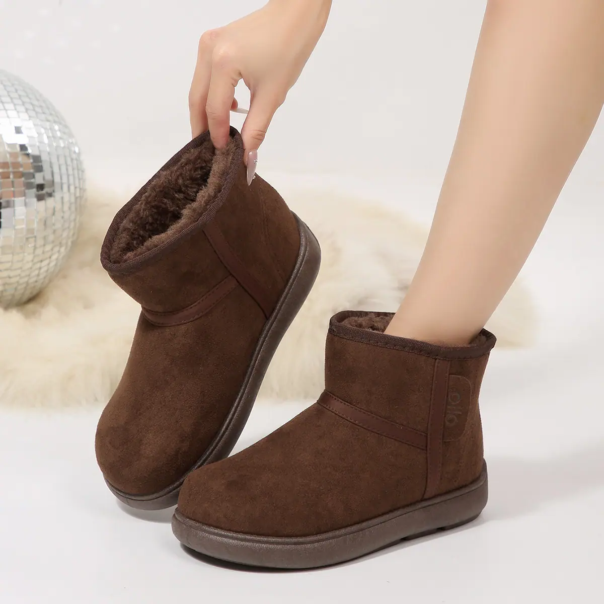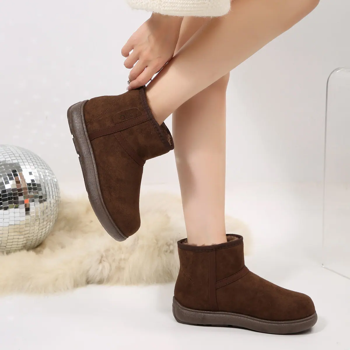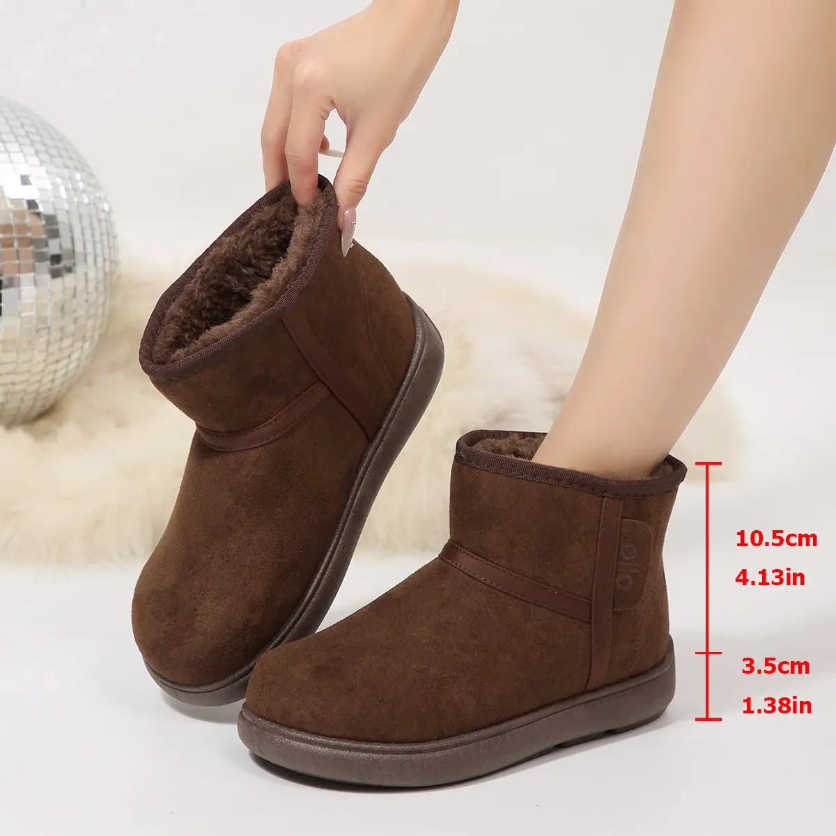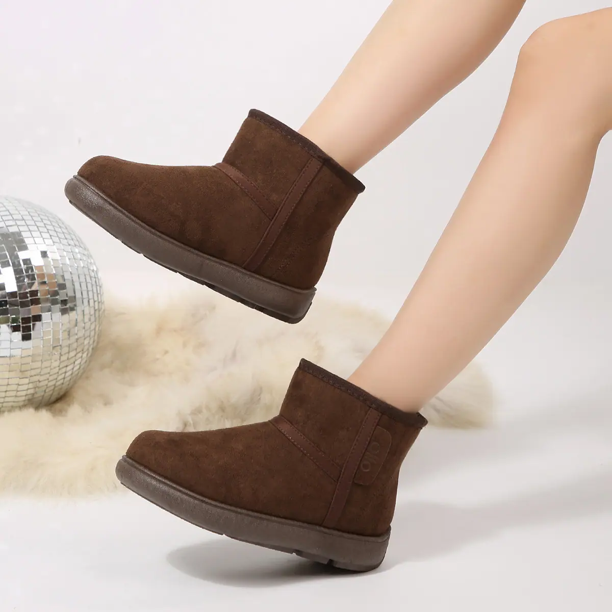 2025 Outono/Inverno Novo Estilo Forrado com Lã Espessado Bico Redondo Slip-on Botas de Neve Mulheres Estilo Coreano Salto Plano Salto Baixo Comércio Exterior Tamanho Grande Botas Femininas