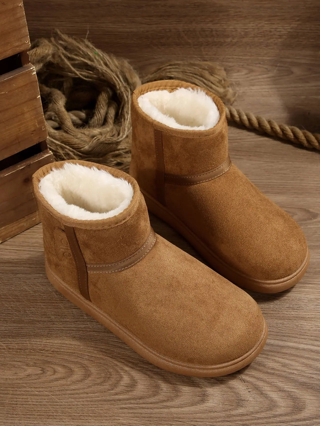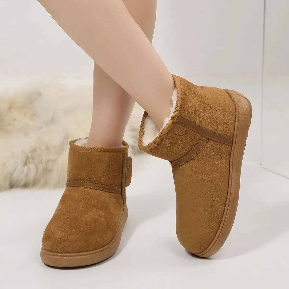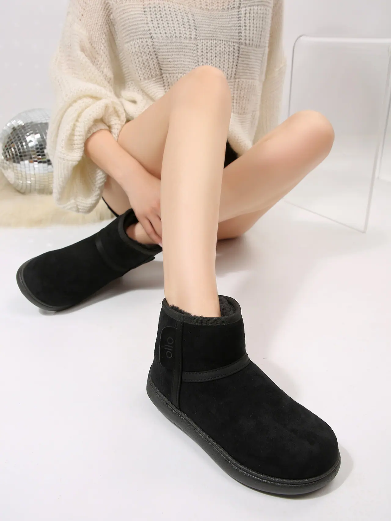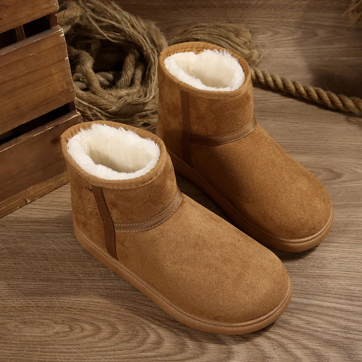 2025 Outono/Inverno Novo Estilo Forrado com Lã Espessado Bico Redondo Slip-on Botas de Neve Mulheres Estilo Coreano Salto Plano Salto Baixo Comércio Exterior Tamanho Grande Botas Femininas