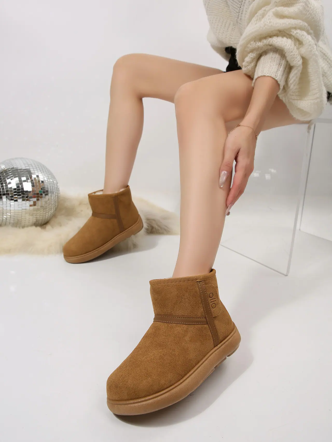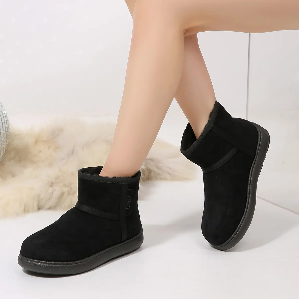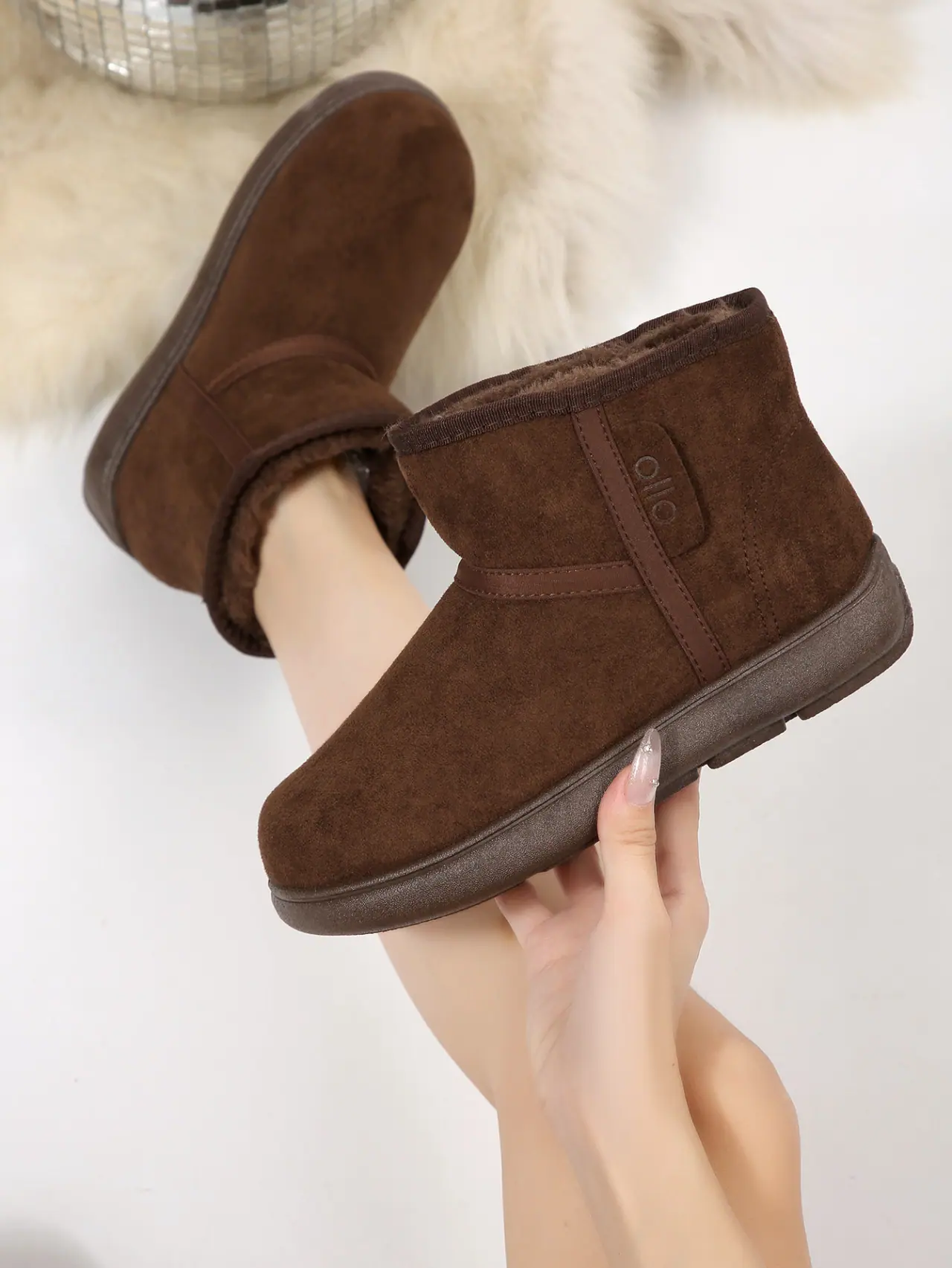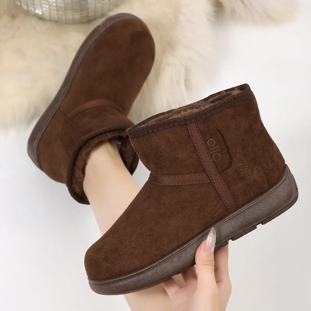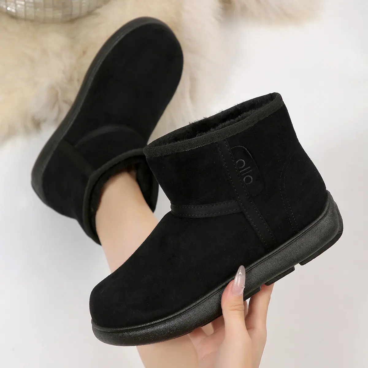 2025 Outono/Inverno Novo Estilo Forrado com Lã Espessado Bico Redondo Slip-on Botas de Neve Mulheres Estilo Coreano Salto Plano Salto Baixo Comércio Exterior Tamanho Grande Botas Femininas