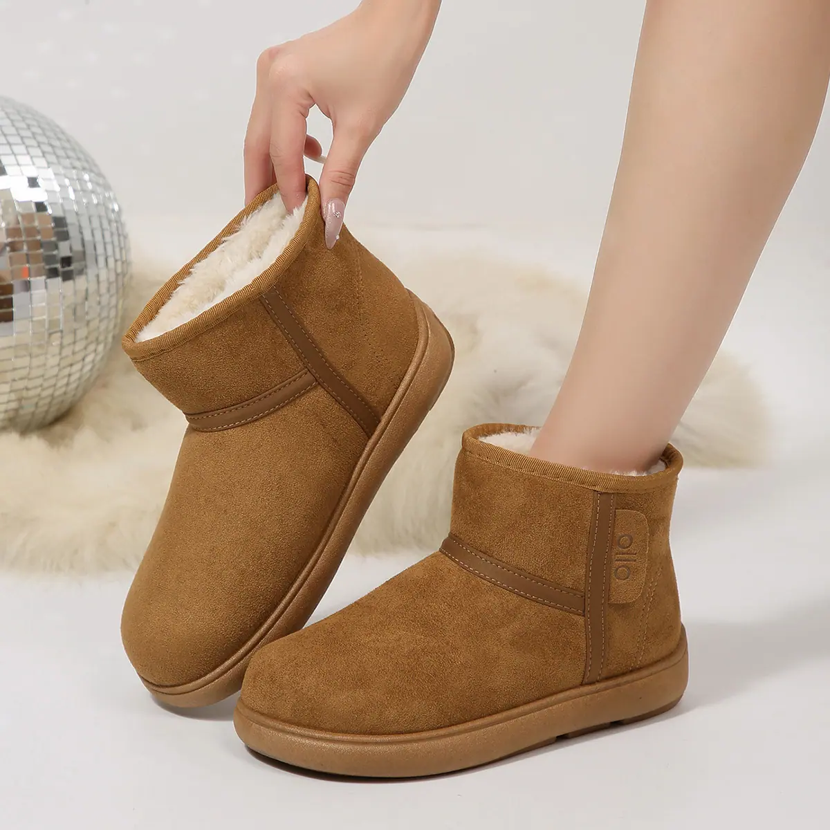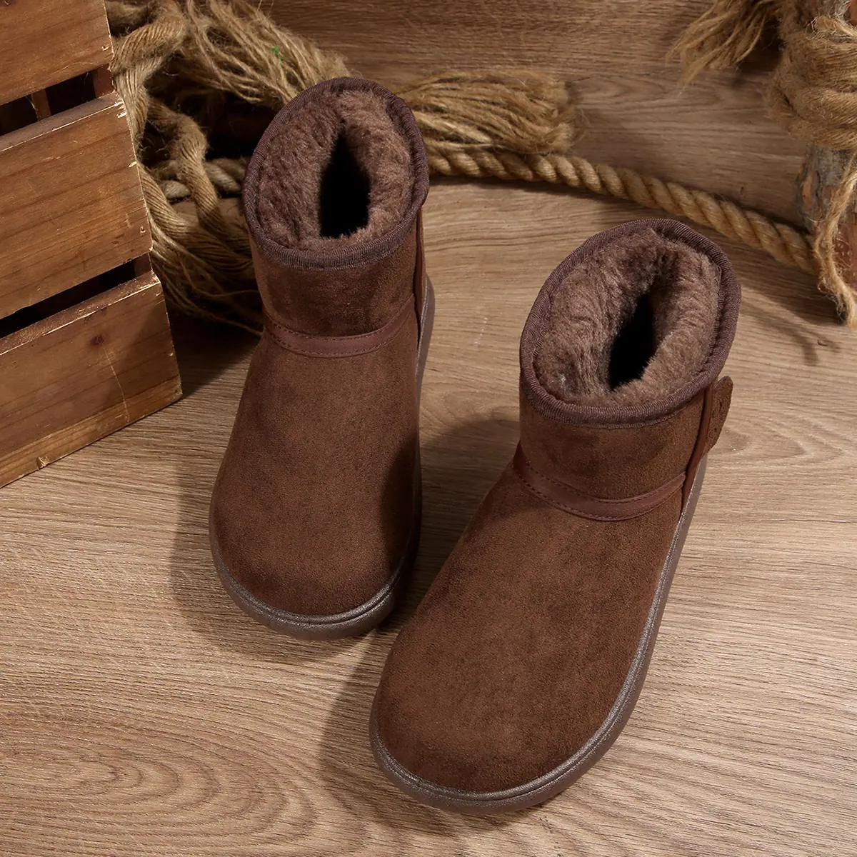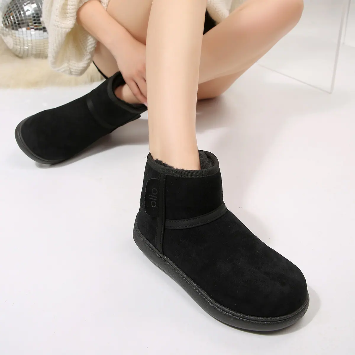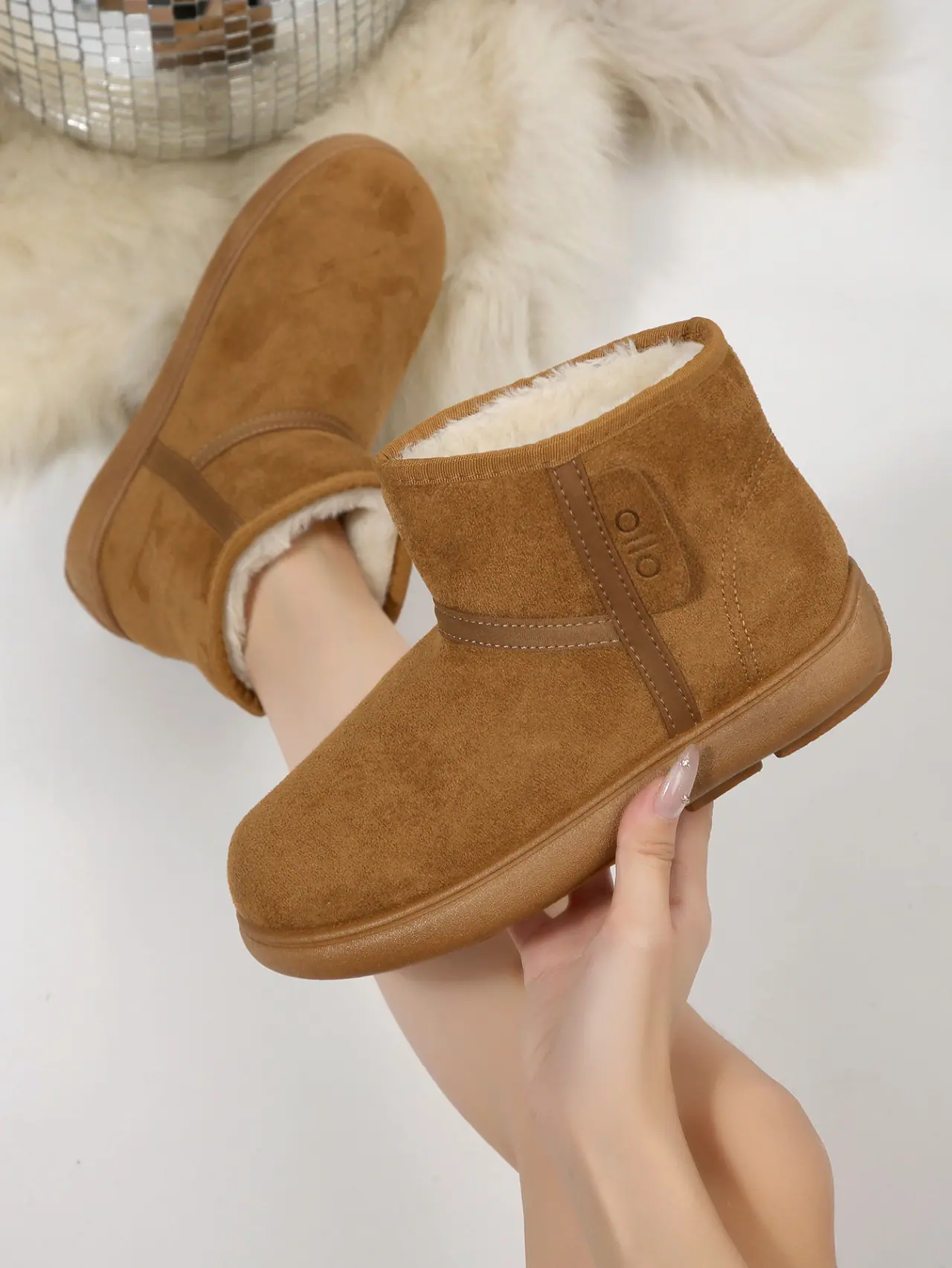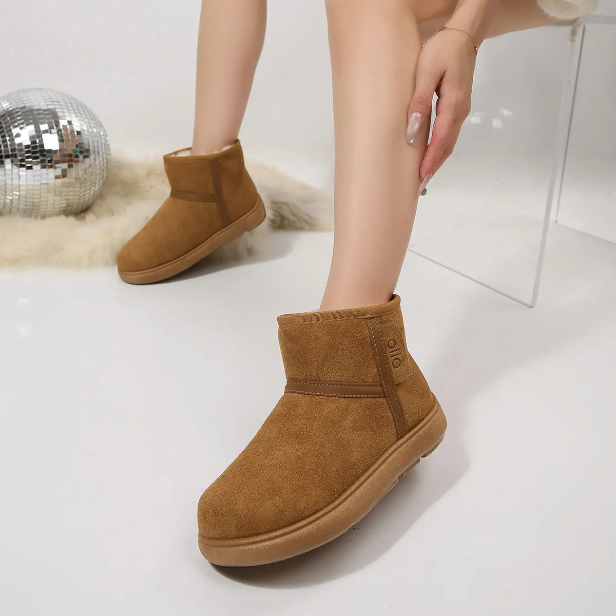 2025 Outono/Inverno Novo Estilo Forrado com Lã Espessado Bico Redondo Slip-on Botas de Neve Mulheres Estilo Coreano Salto Plano Salto Baixo Comércio Exterior Tamanho Grande Botas Femininas