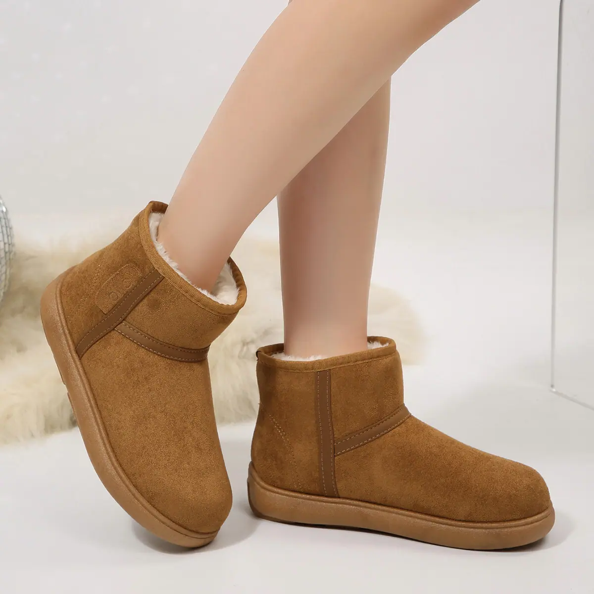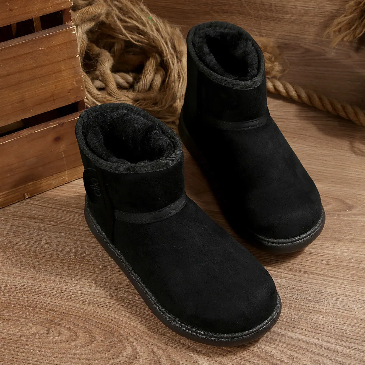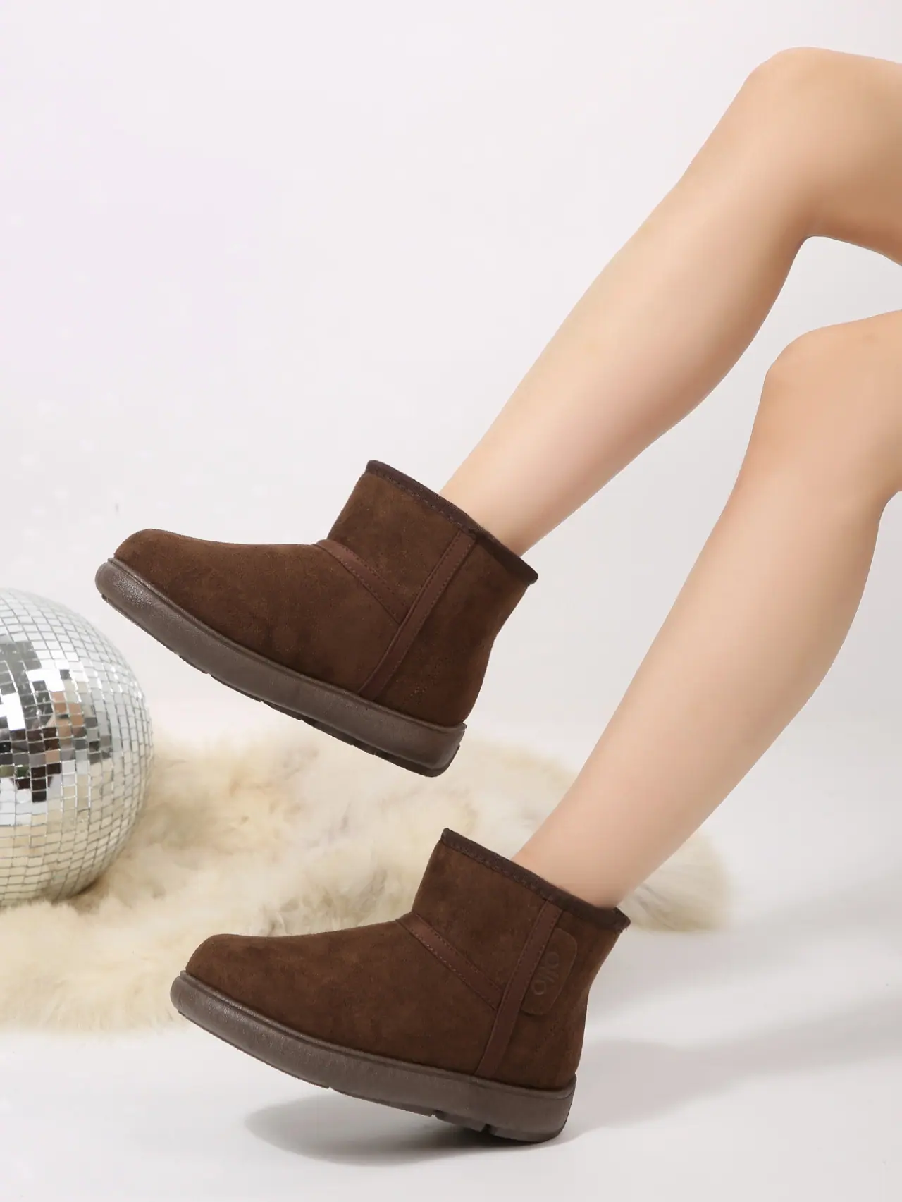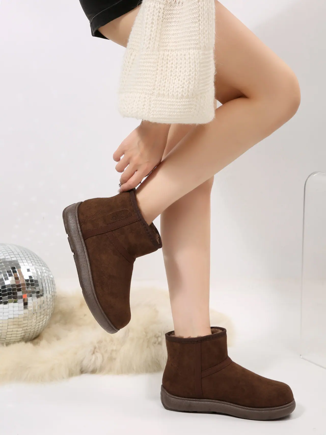 2025 Outono/Inverno Novo Estilo Forrado com Lã Espessado Bico Redondo Slip-on Botas de Neve Mulheres Estilo Coreano Salto Plano Salto Baixo Comércio Exterior Tamanho Grande Botas Femininas