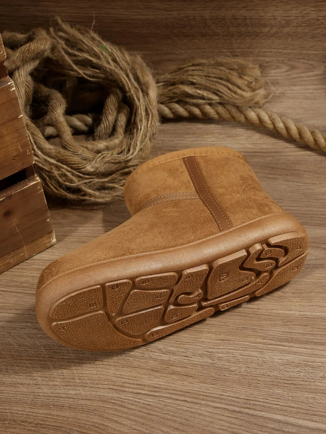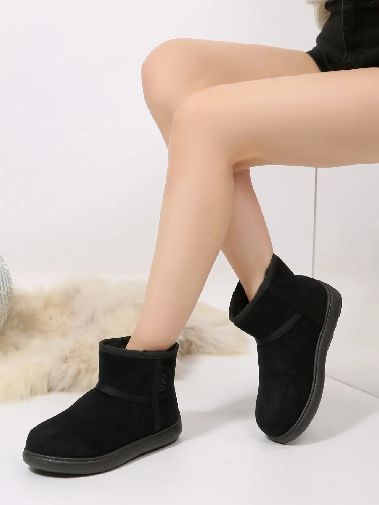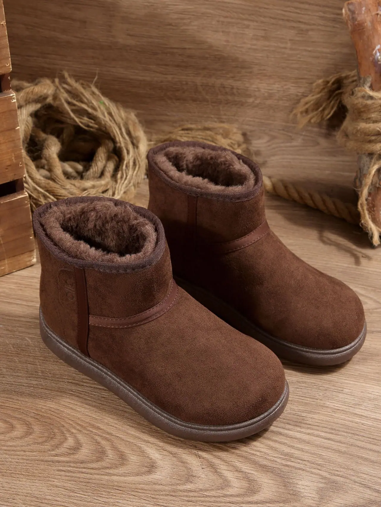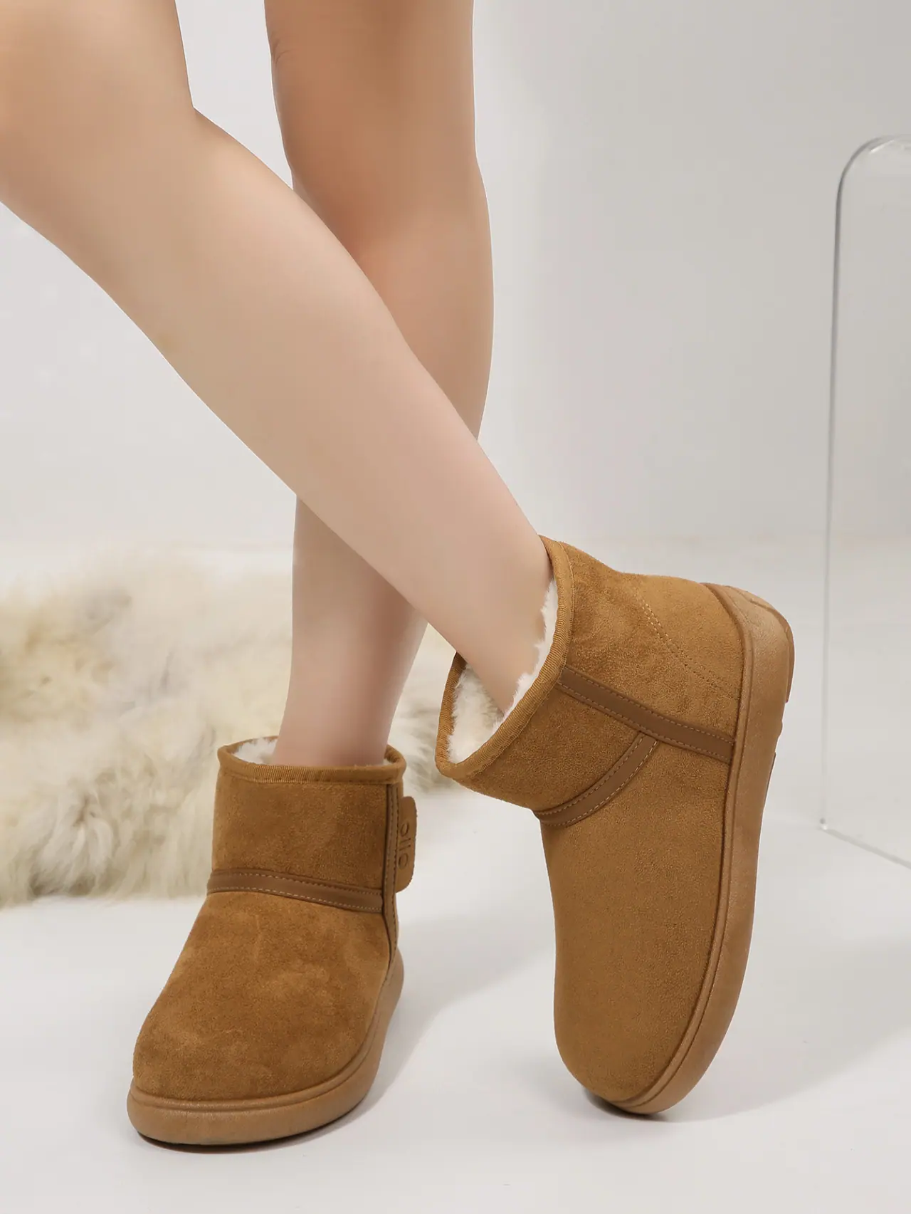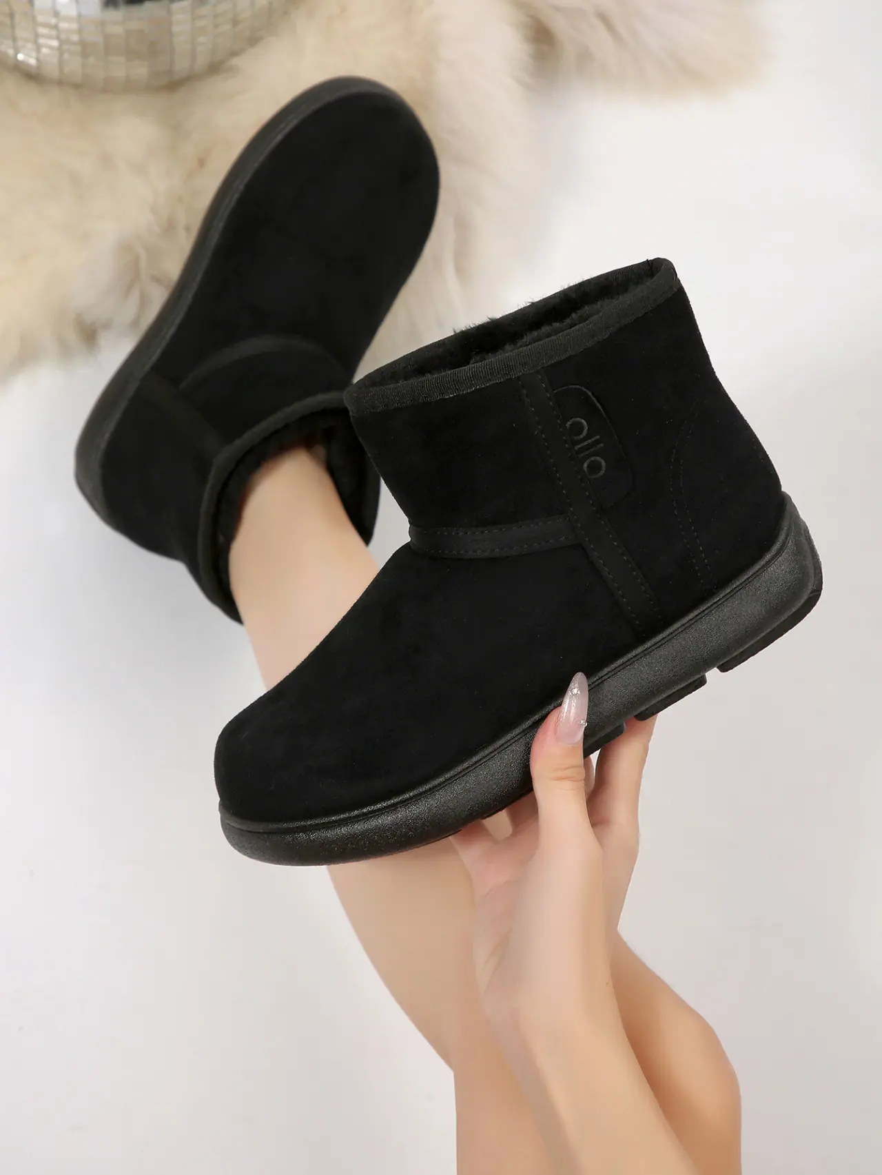 2025 Outono/Inverno Novo Estilo Forrado com Lã Espessado Bico Redondo Slip-on Botas de Neve Mulheres Estilo Coreano Salto Plano Salto Baixo Comércio Exterior Tamanho Grande Botas Femininas