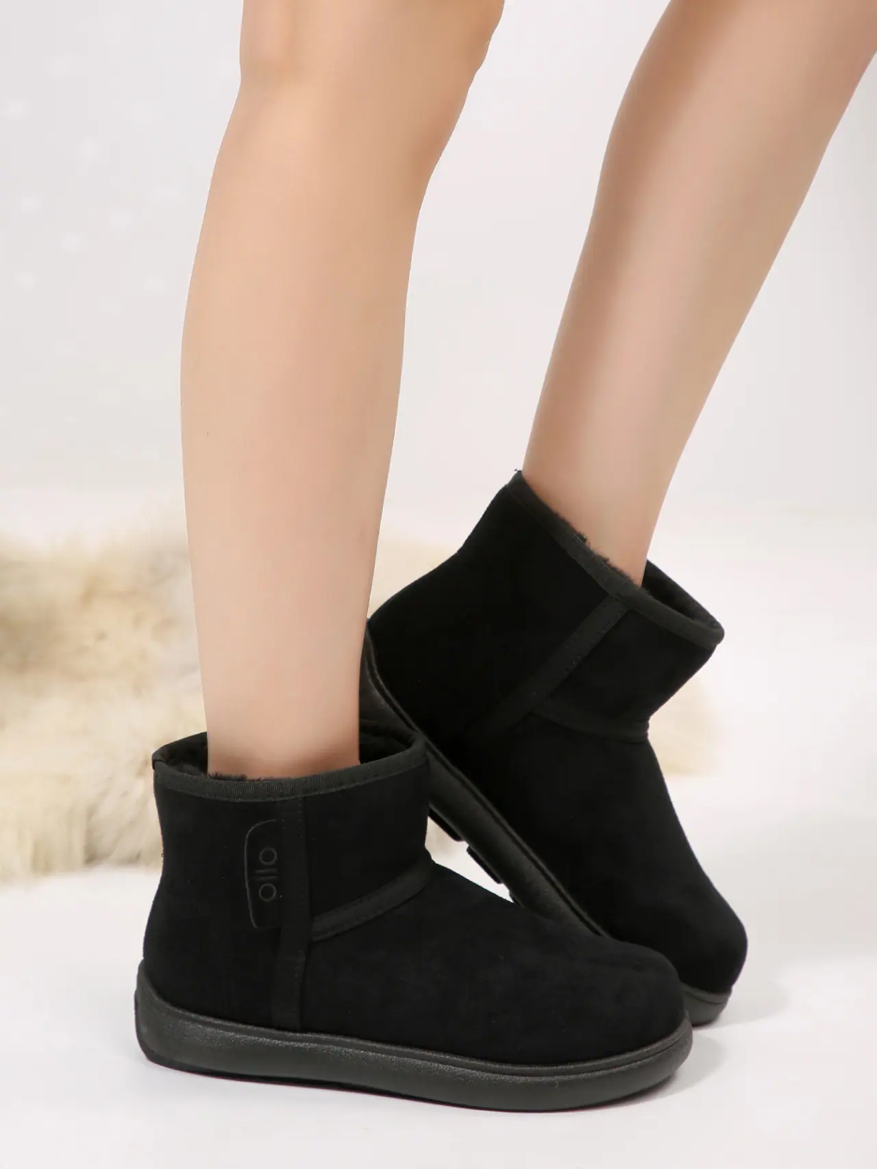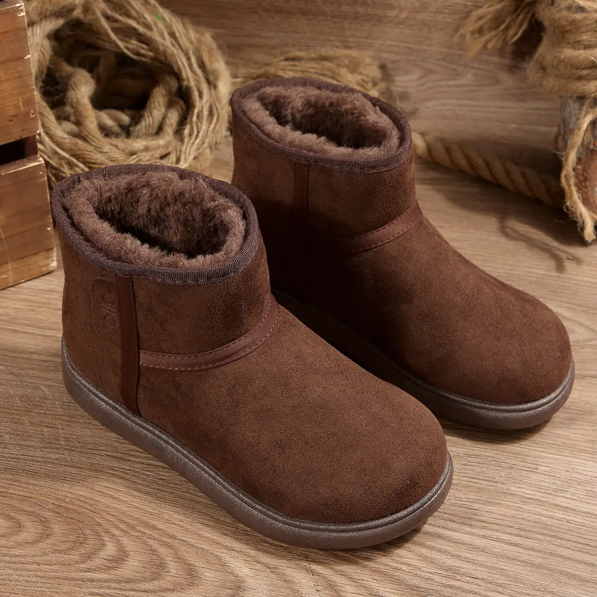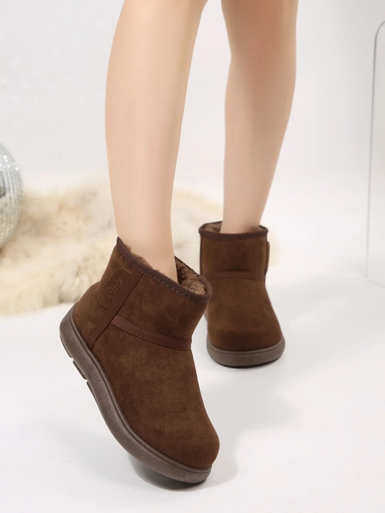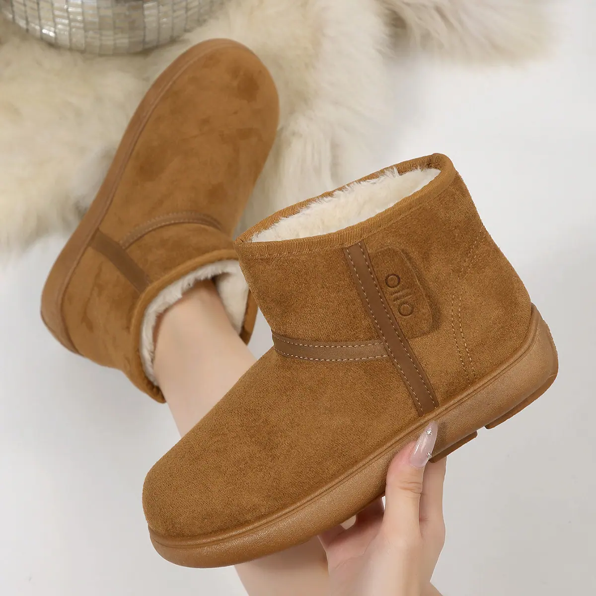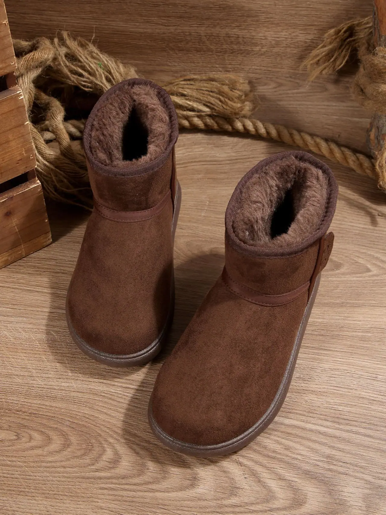 2025 Outono/Inverno Novo Estilo Forrado com Lã Espessado Bico Redondo Slip-on Botas de Neve Mulheres Estilo Coreano Salto Plano Salto Baixo Comércio Exterior Tamanho Grande Botas Femininas