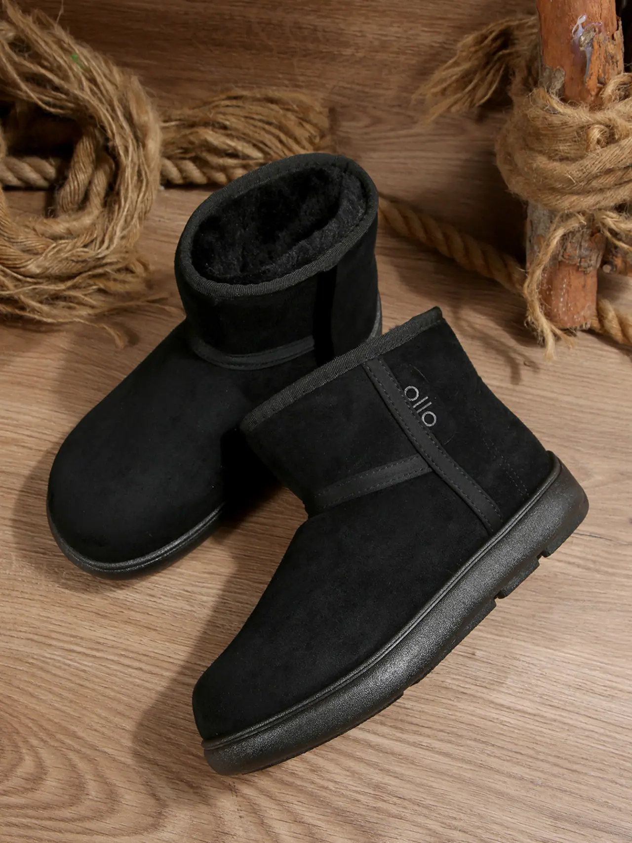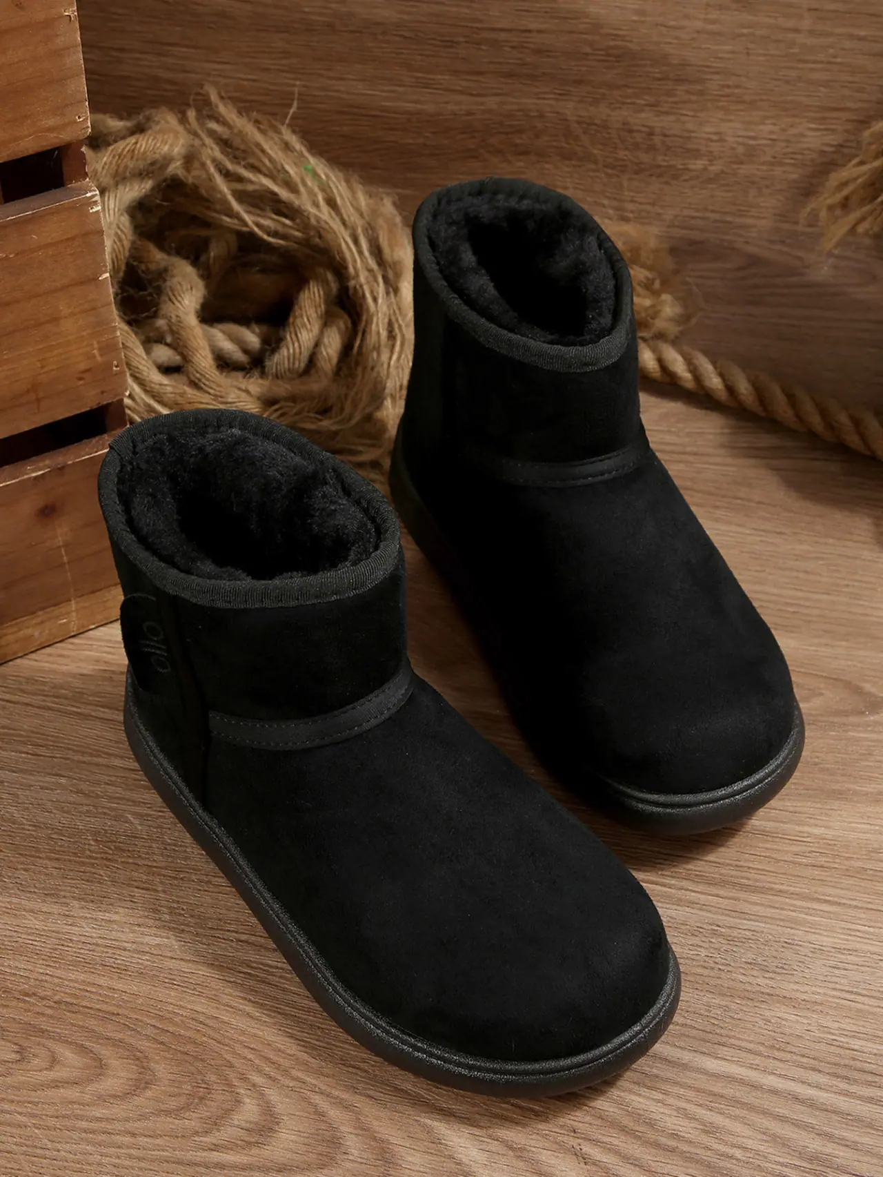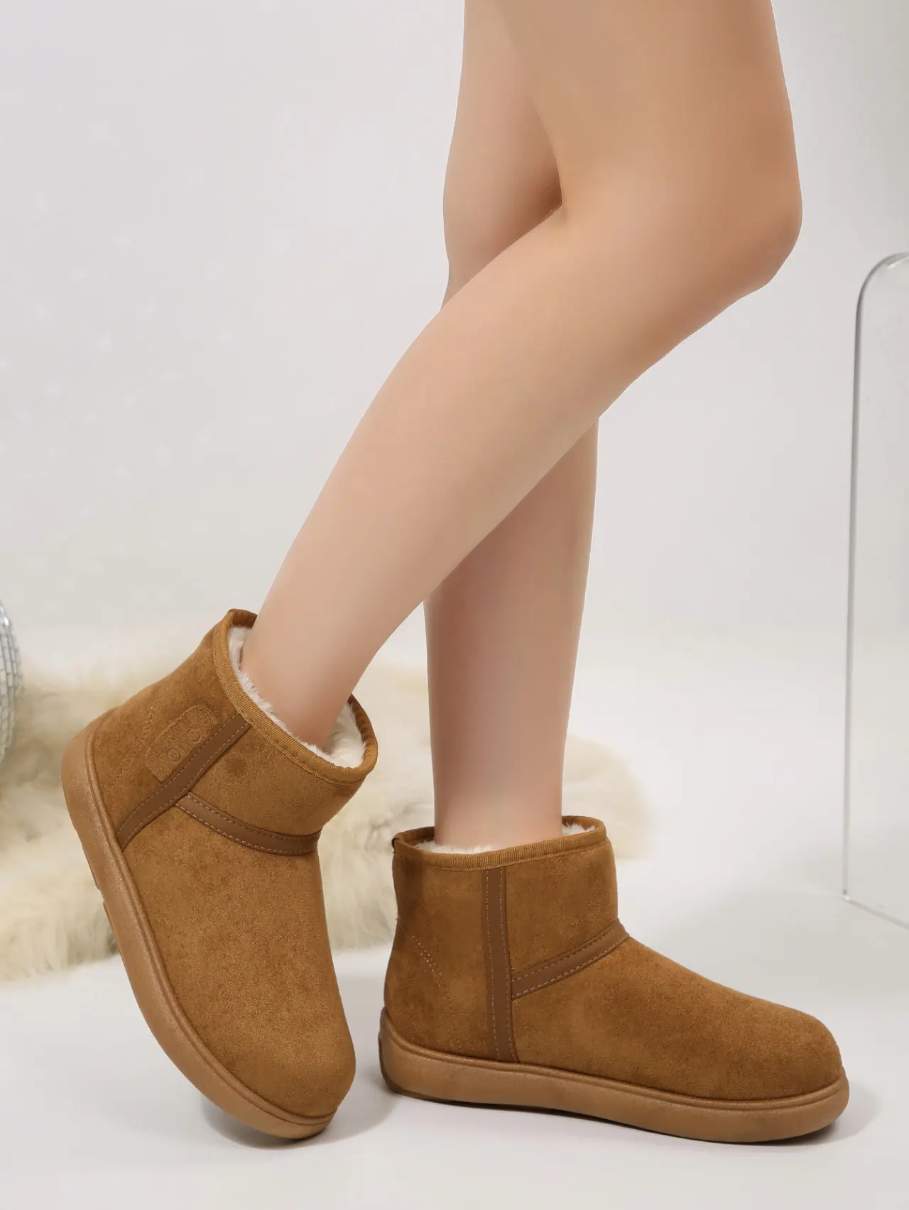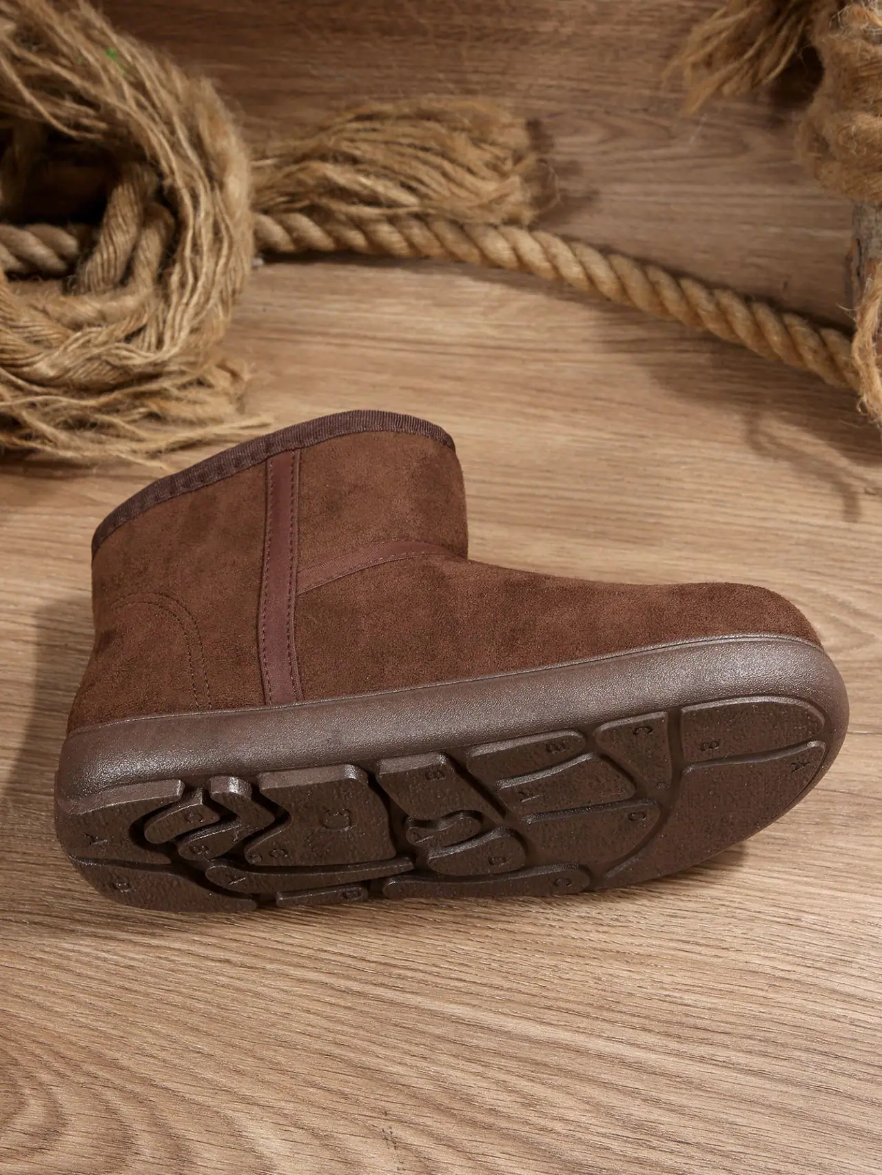 2025 Outono/Inverno Novo Estilo Forrado com Lã Espessado Bico Redondo Slip-on Botas de Neve Mulheres Estilo Coreano Salto Plano Salto Baixo Comércio Exterior Tamanho Grande Botas Femininas