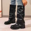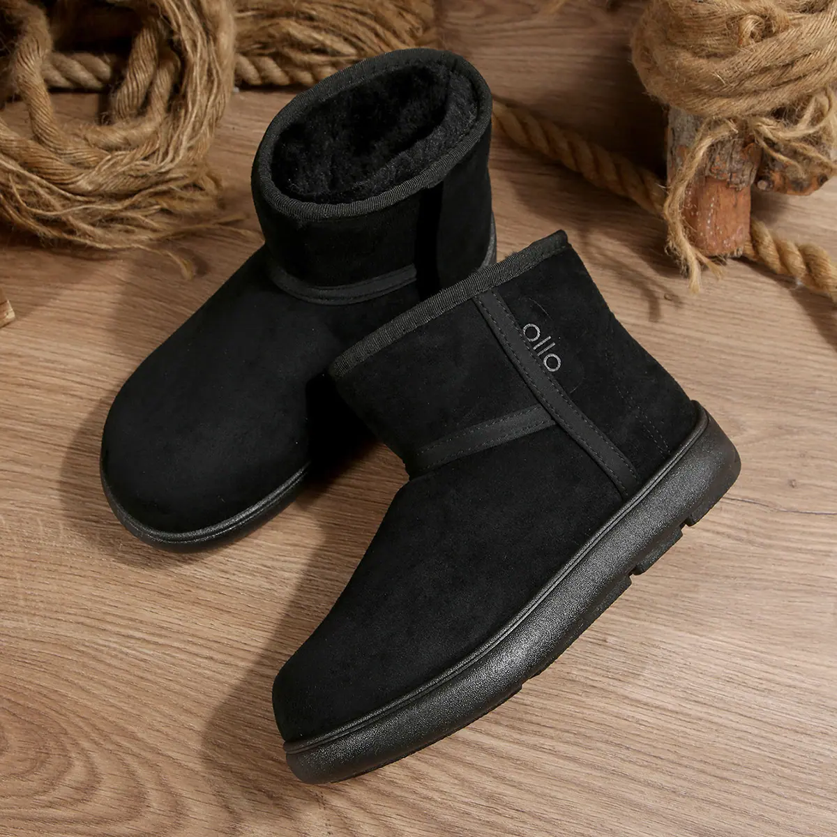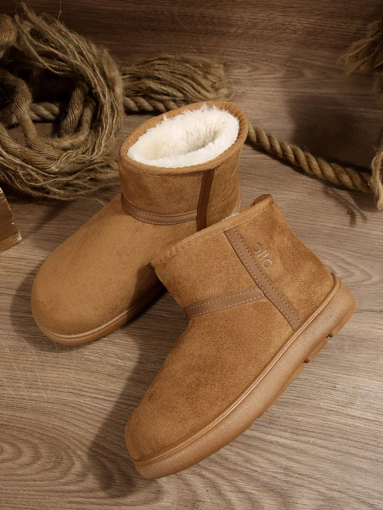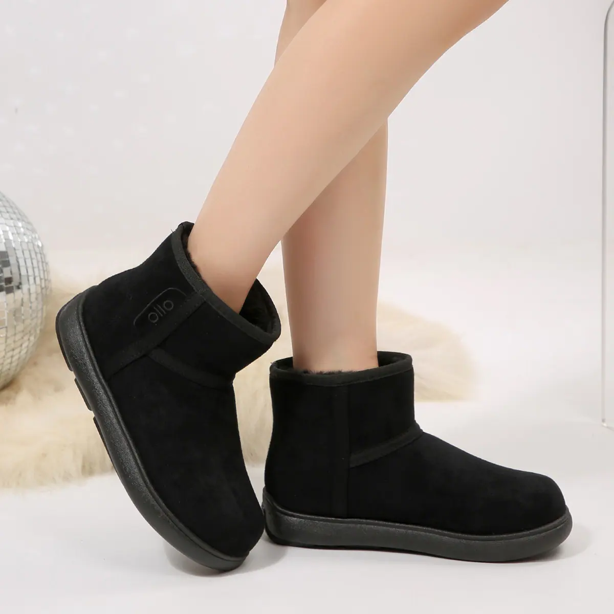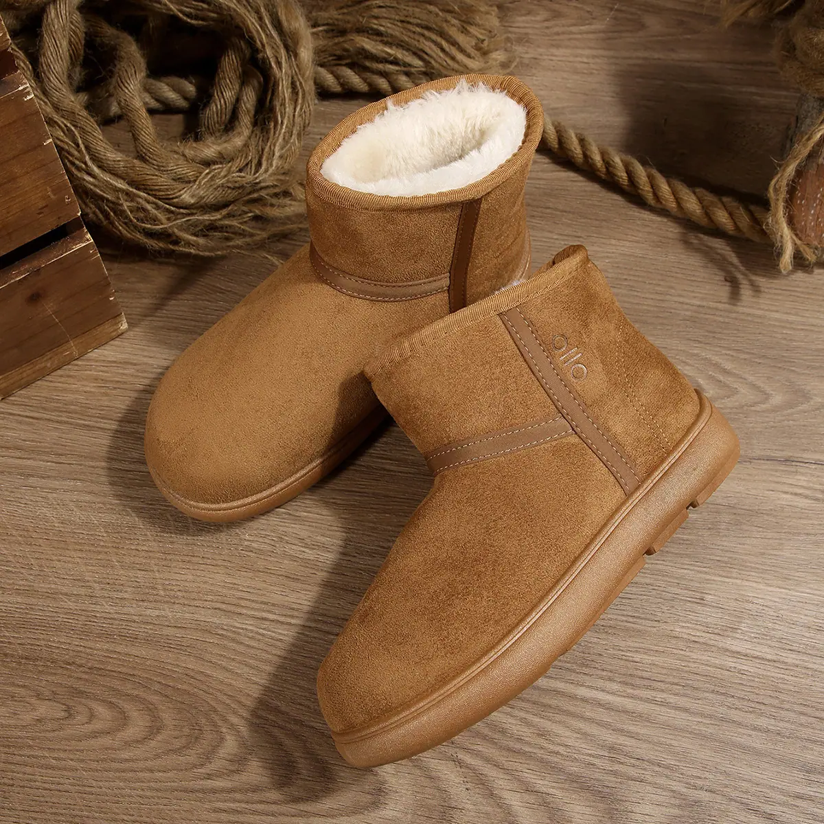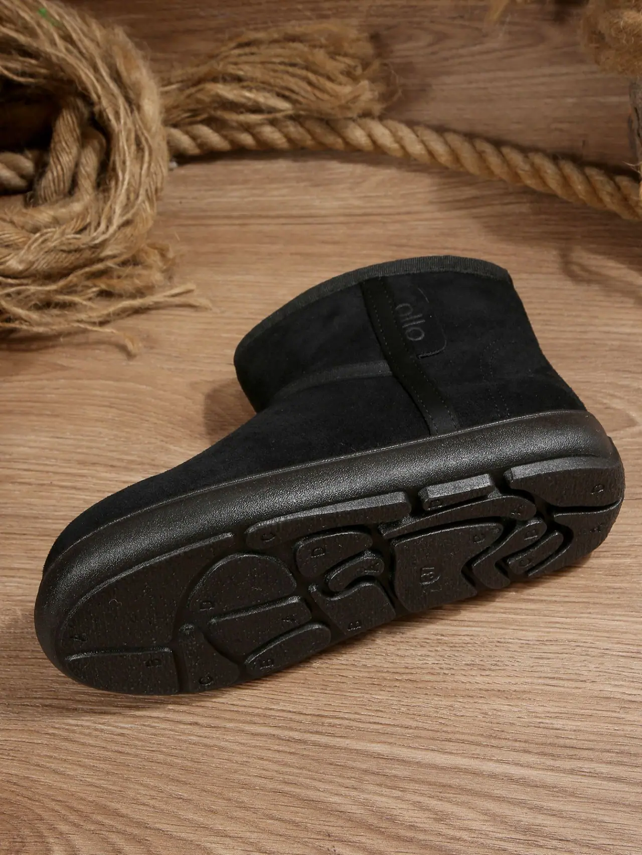 2025 Outono/Inverno Novo Estilo Forrado com Lã Espessado Bico Redondo Slip-on Botas de Neve Mulheres Estilo Coreano Salto Plano Salto Baixo Comércio Exterior Tamanho Grande Botas Femininas