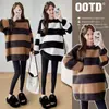 Blusas de Maternidade 2025 Outono e Inverno Nova Moda Alta Densidade Alta Elasticidade Gola POLO Versátil Suéter Básico Tricotado Maré