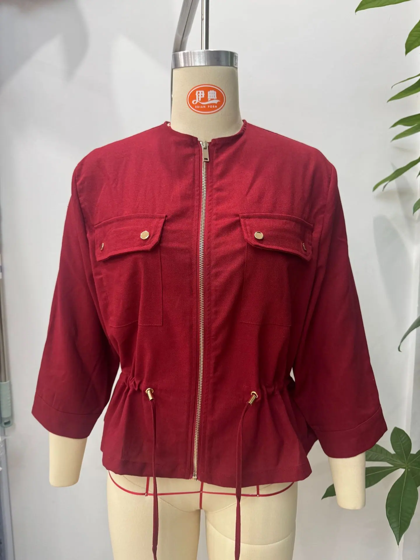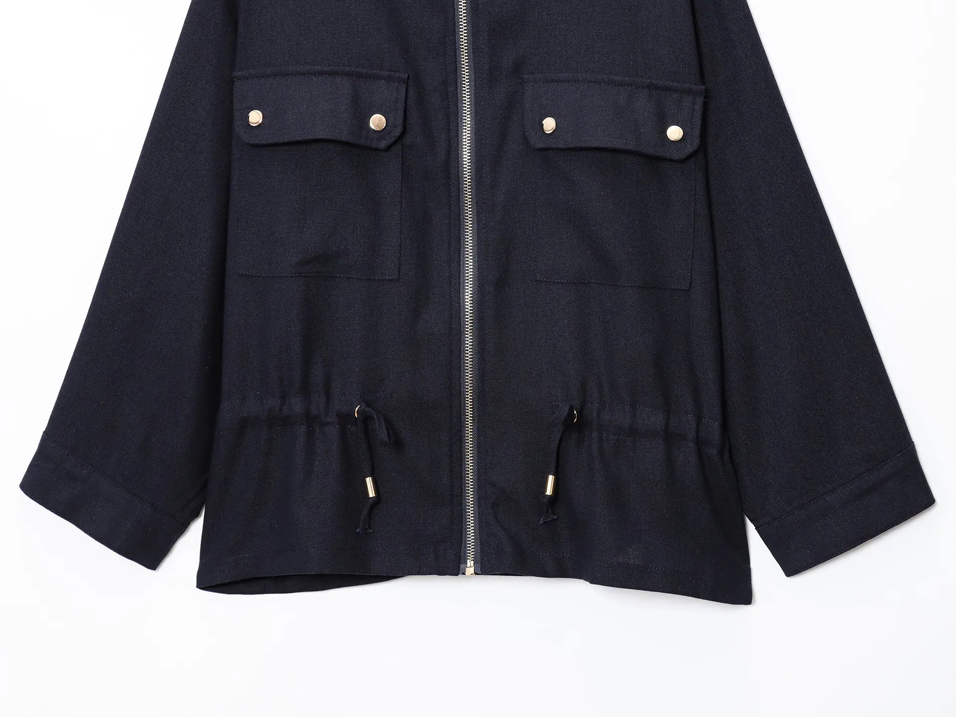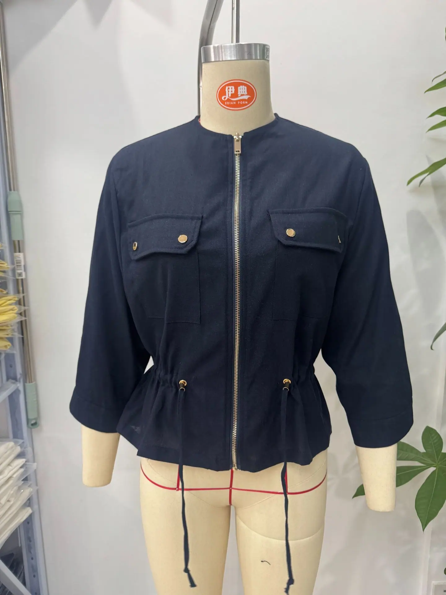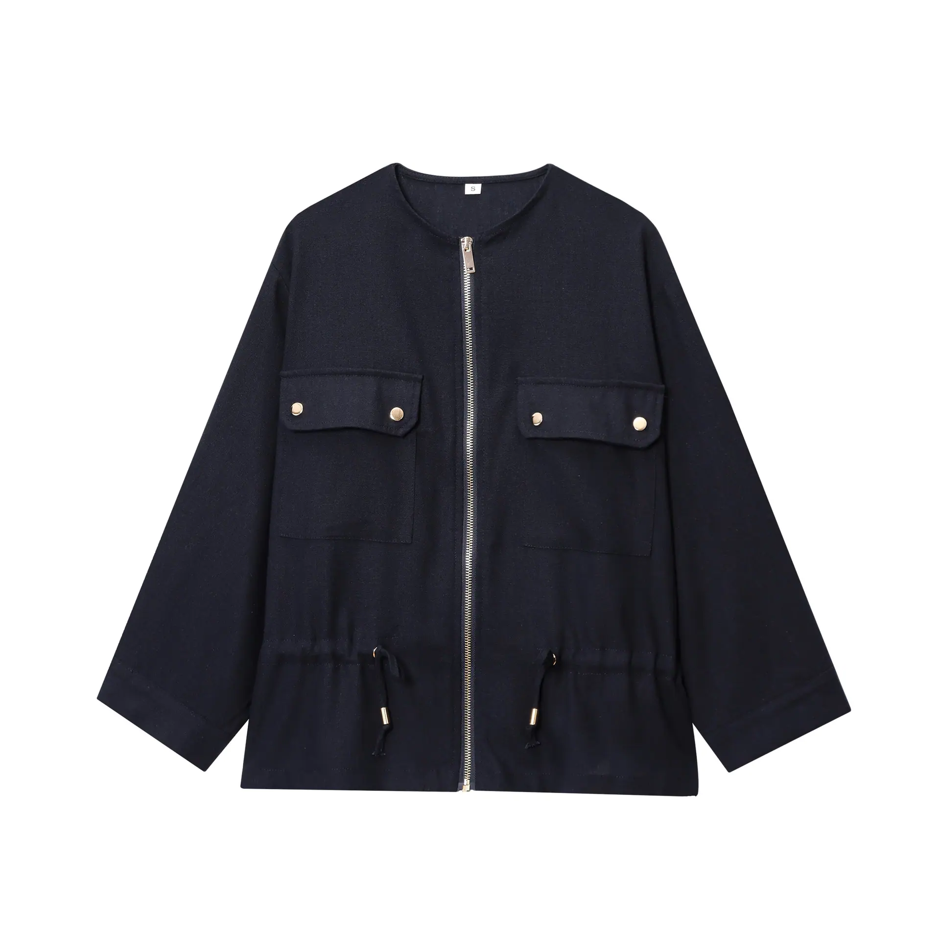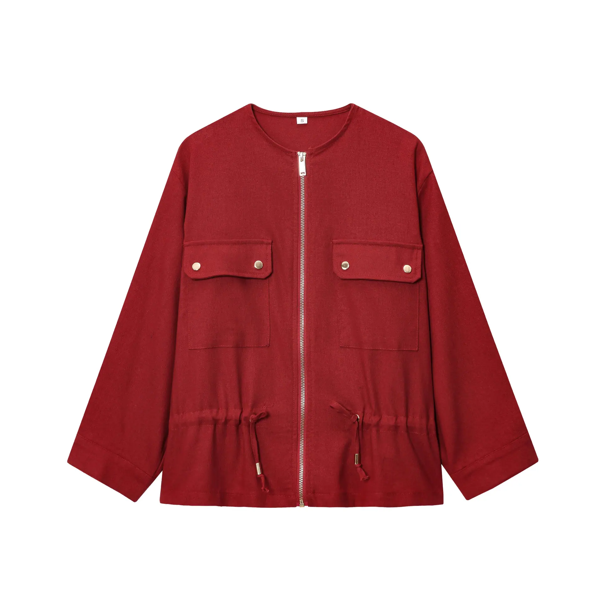 Amazon Roupas Europeias e Americanas Atacado 2025 Novo Outono Jaqueta de Caça Mistura de Linho Jaqueta Casual da Moda