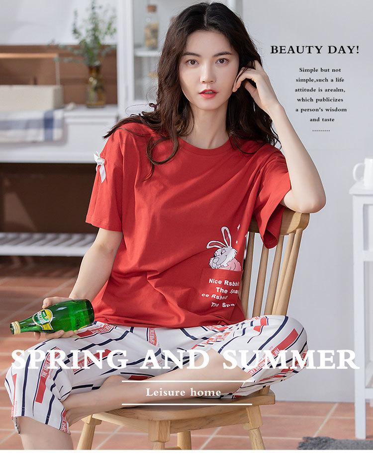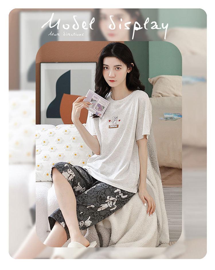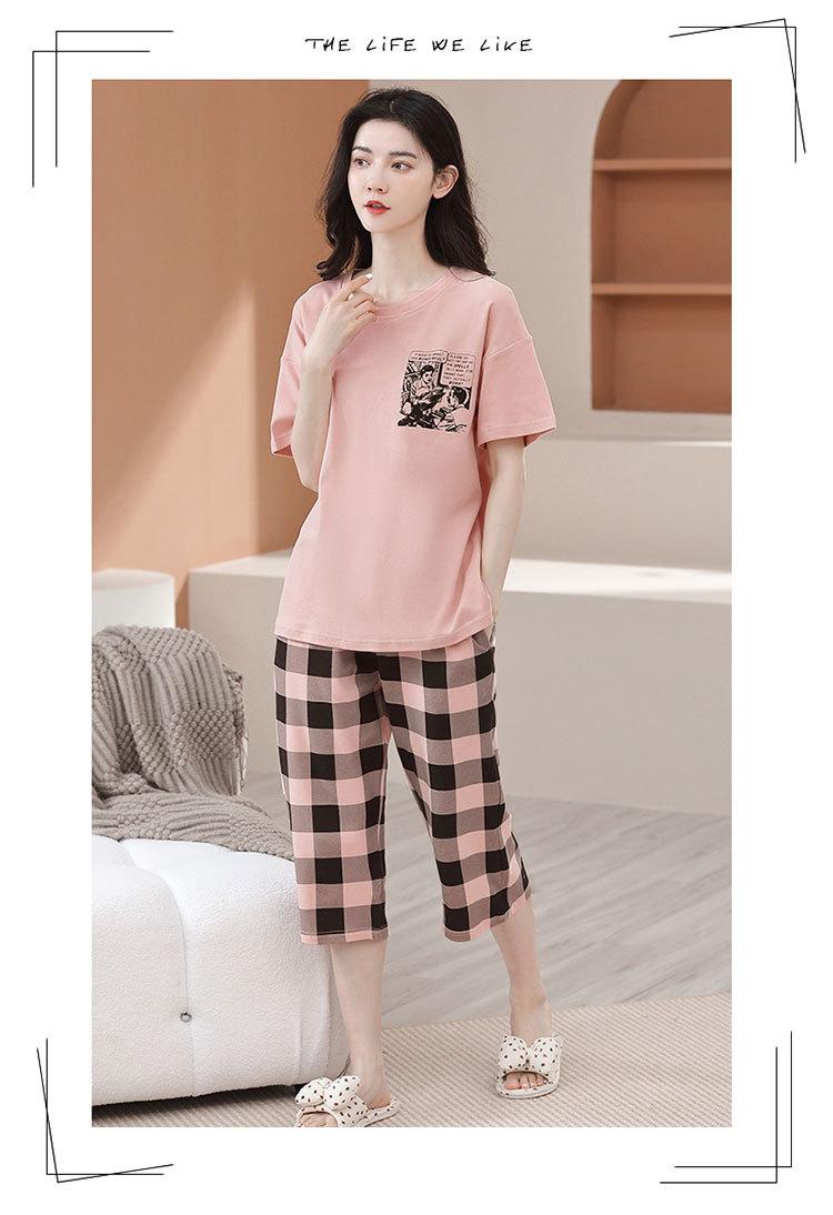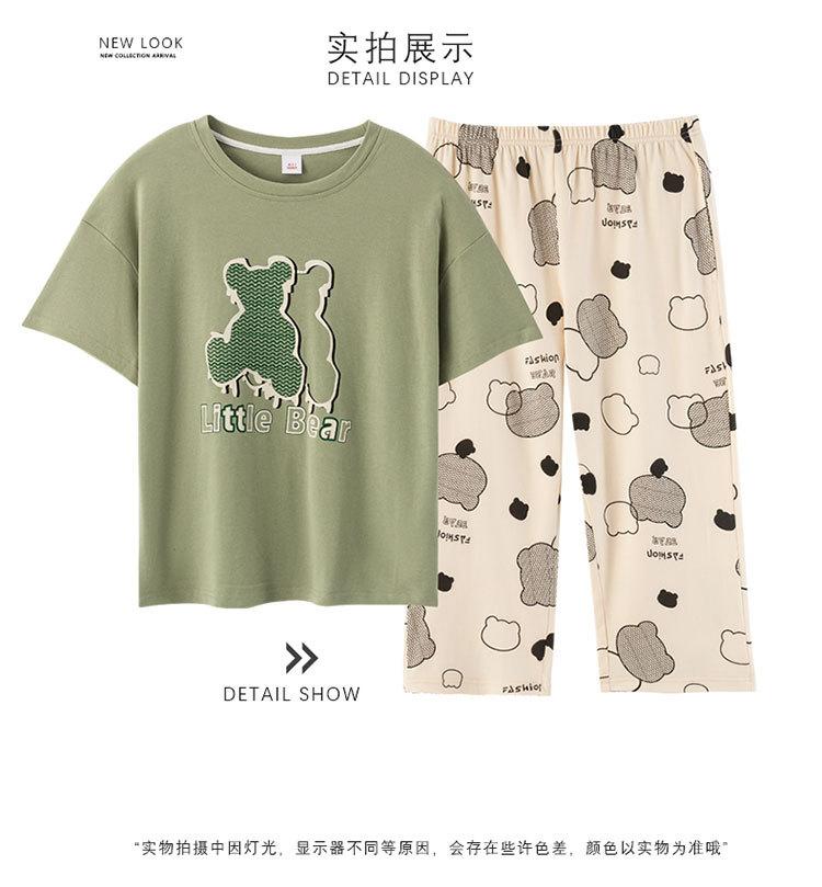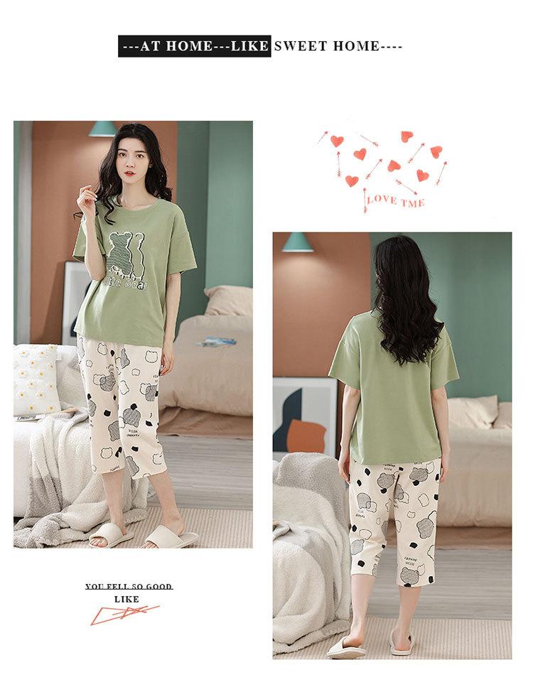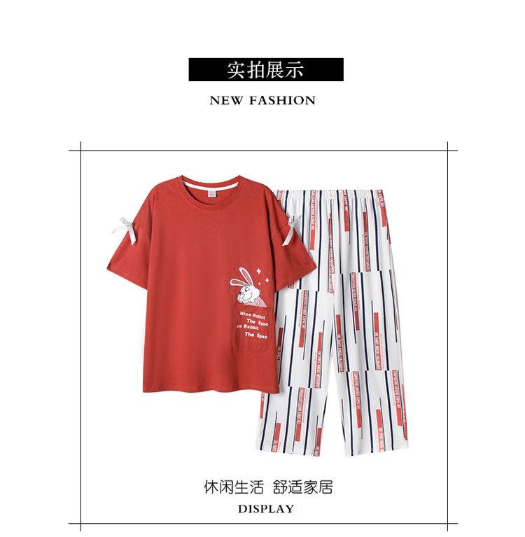 Compre Algodão Fino Roupa de Casa Duas Peças Casual Pulôver Gola Redonda Manga Curta Calças Cropped Pijama Feminino Verão Doce Novo Estilo no atacado no Joom.pro
