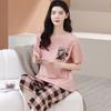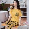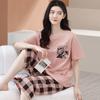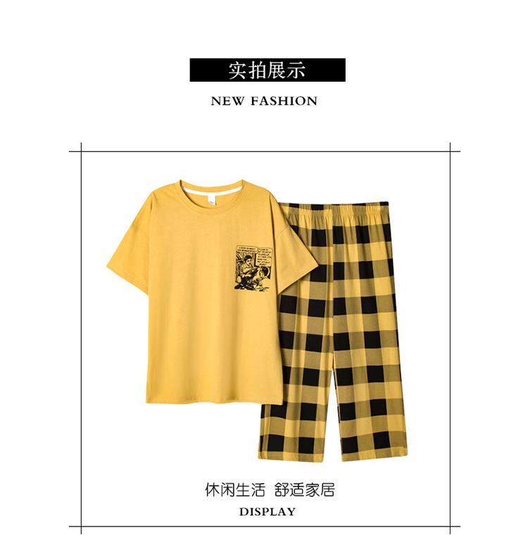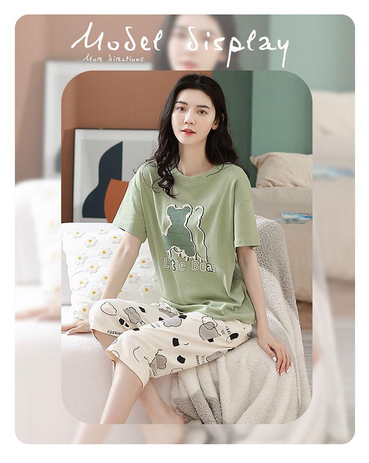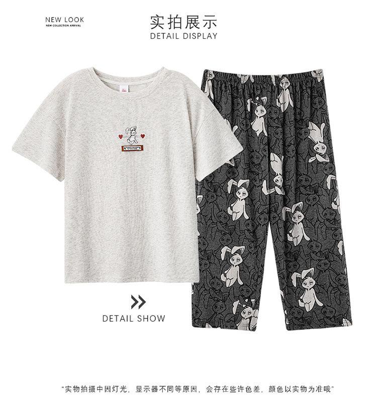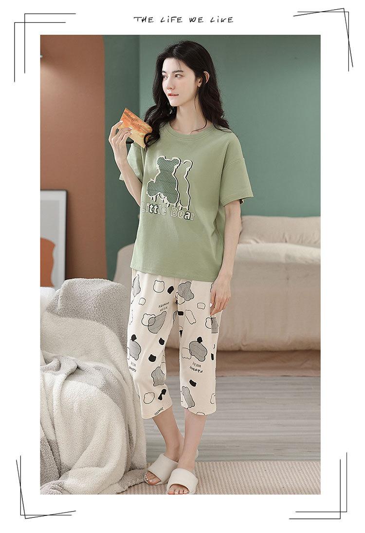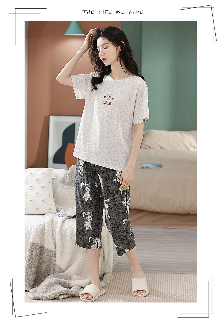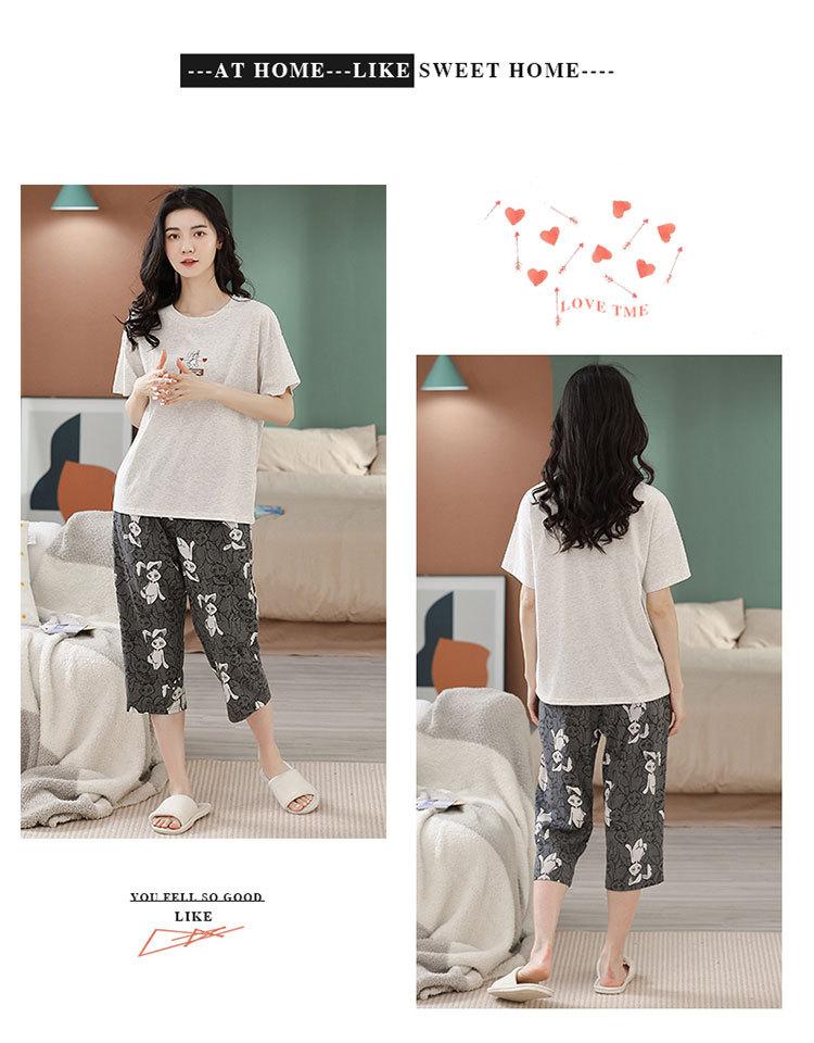 Compre Algodão Fino Roupa de Casa Duas Peças Casual Pulôver Gola Redonda Manga Curta Calças Cropped Pijama Feminino Verão Doce Novo Estilo no atacado no Joom.pro
