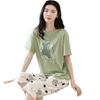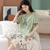 Algodão Fino Roupa de Casa Duas Peças Casual Pulôver Gola Redonda Manga Curta Calças Cropped Pijama Feminino Verão Doce Novo Estilo
