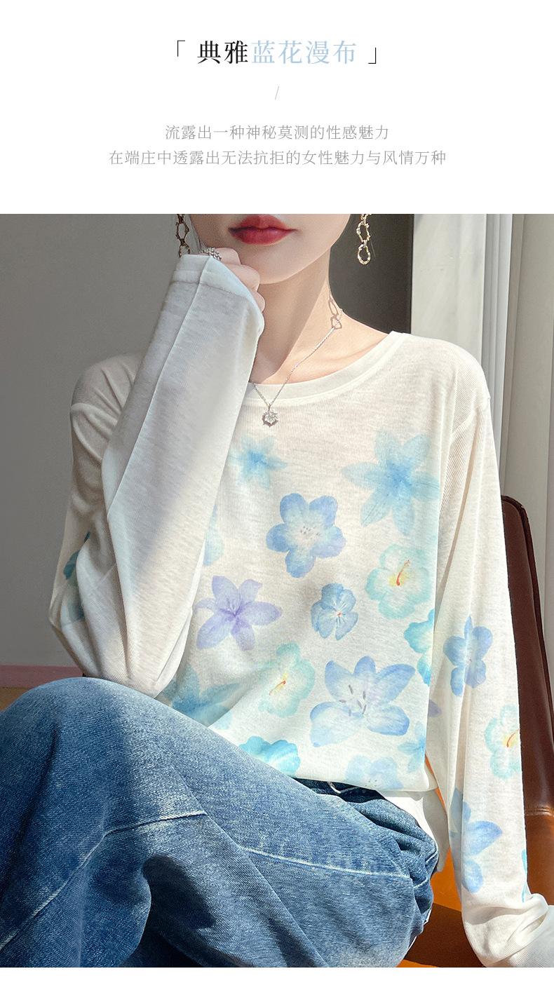 Suéter básico de malha feminino outono e inverno novo estilo transfronteiriço estampa de renderização design senso gola redonda solto macio e versátil
