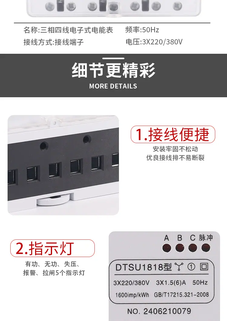 Medidor Eletrônico de Energia Trifásico Quatro Fios 3Va1 É Compatível com Medidor Multifunção de Tensão, Corrente e Potência