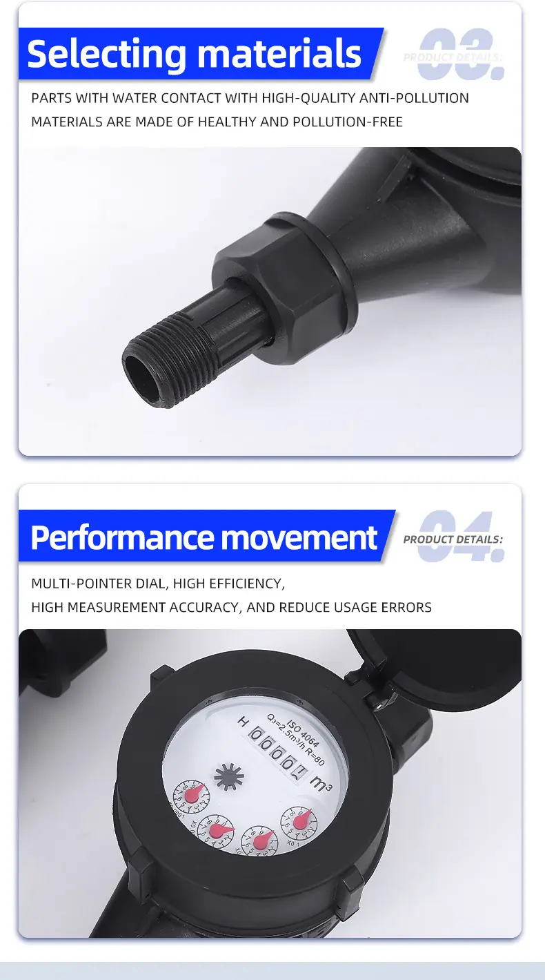 Medidor de Água Tipo Rotor de Nylon Medidor de Água Doméstico para Água Fria de Torneira Uso Comunitário Medidor de Água Mecânico Medidor de Água de Plástico de Engenharia