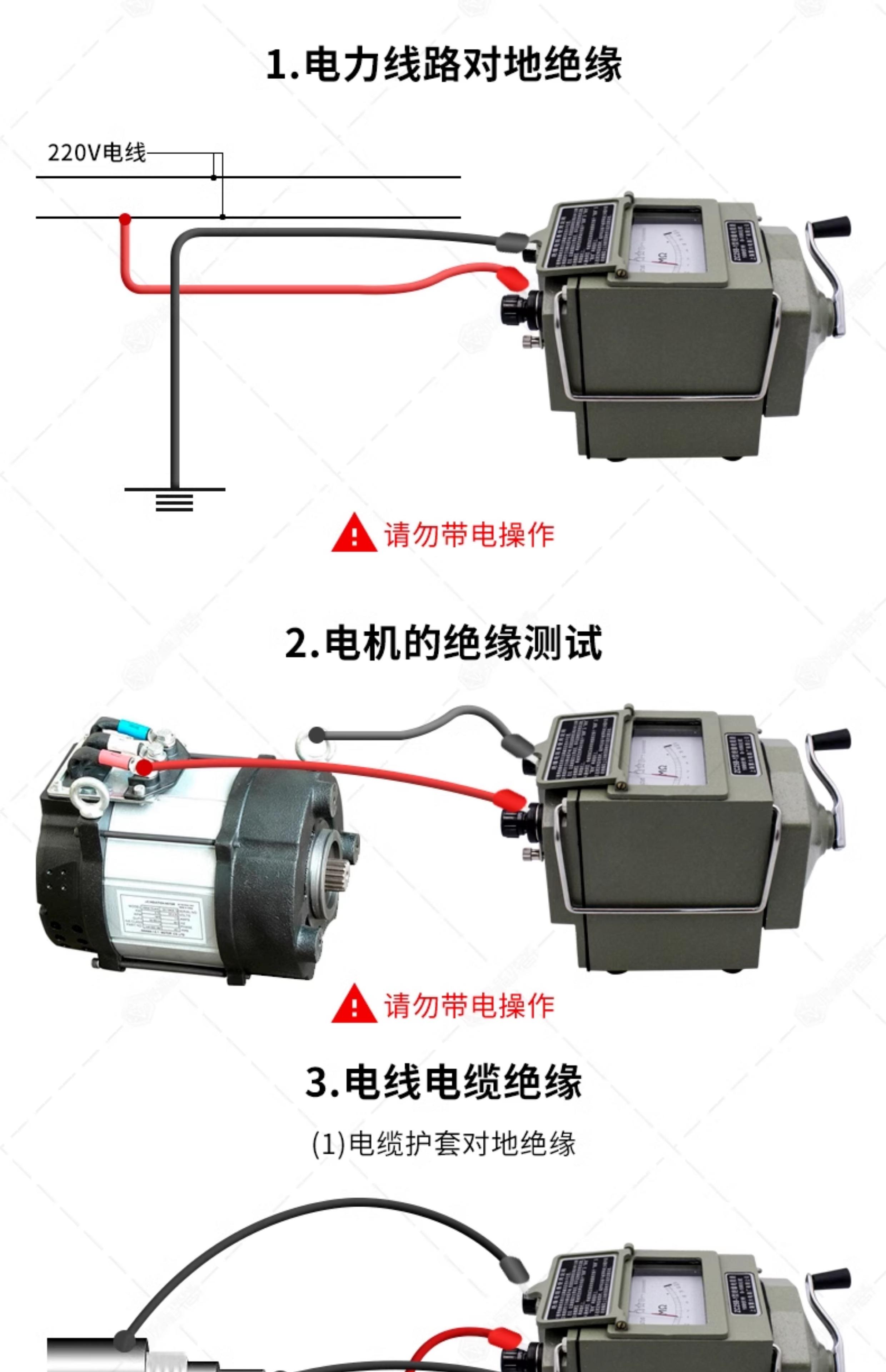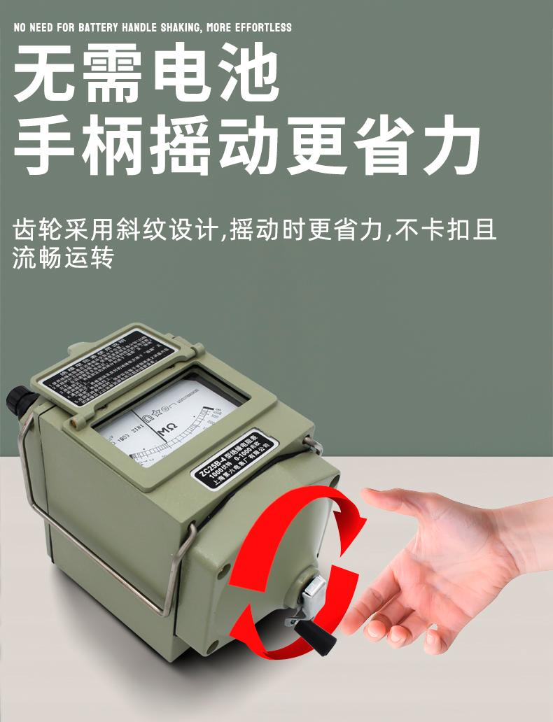 Megômetro de 500v com manivela 1000v medidor de isolamento zc25b-3/1/2/4 testador de resistência de isolamento