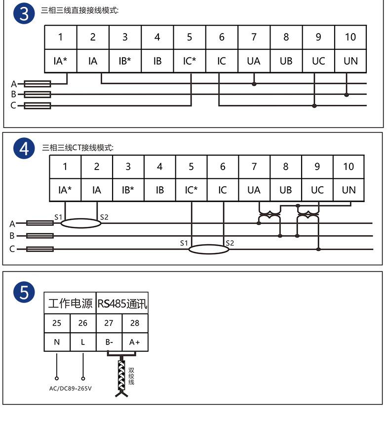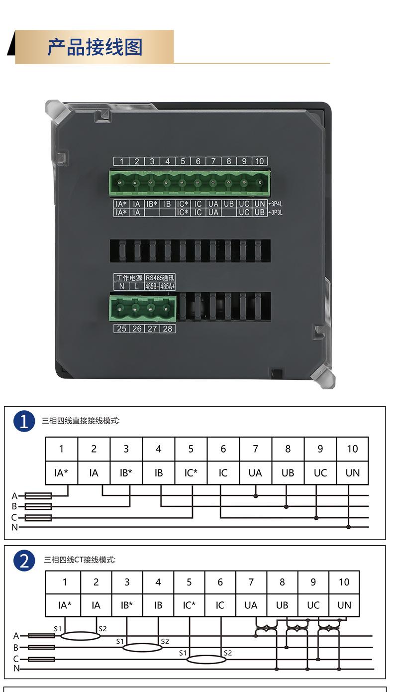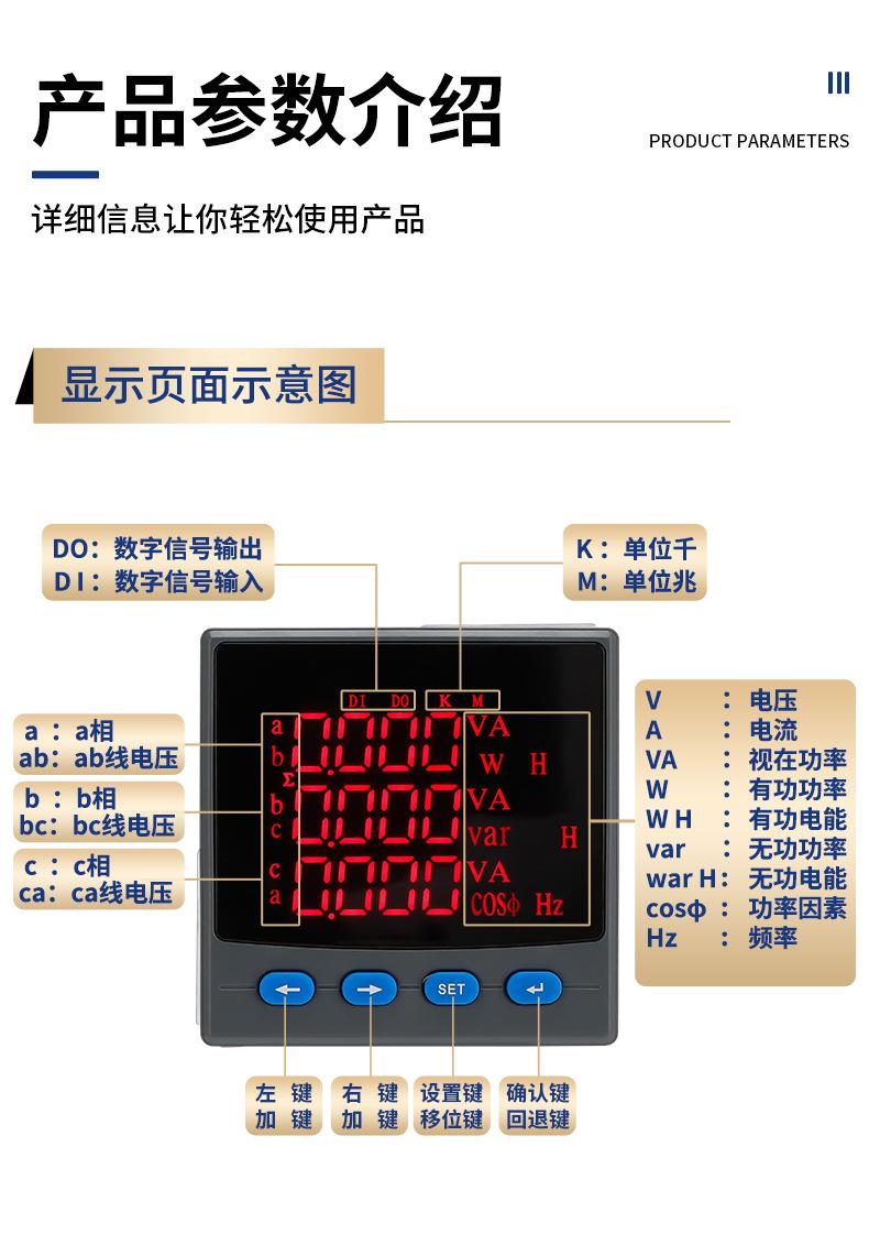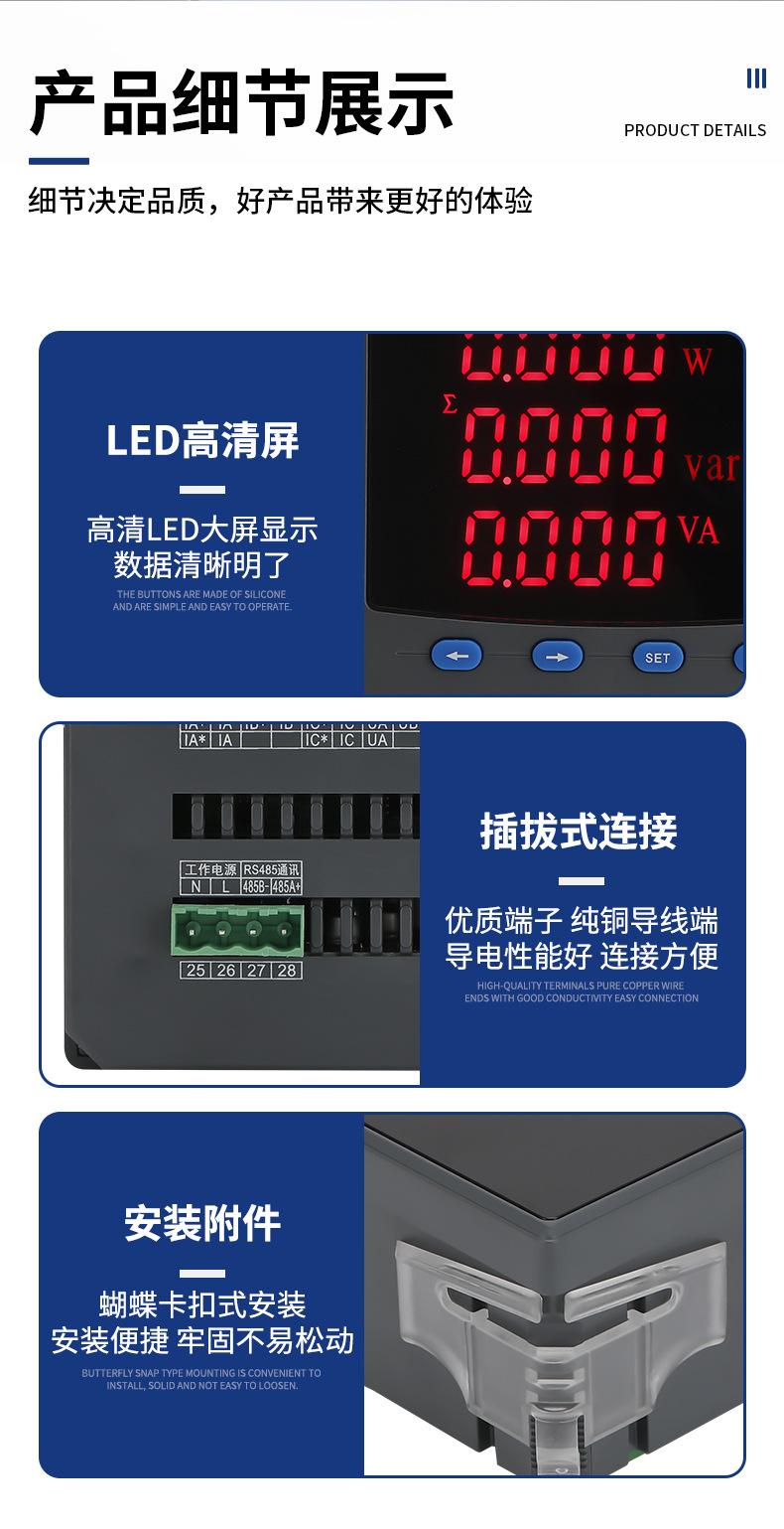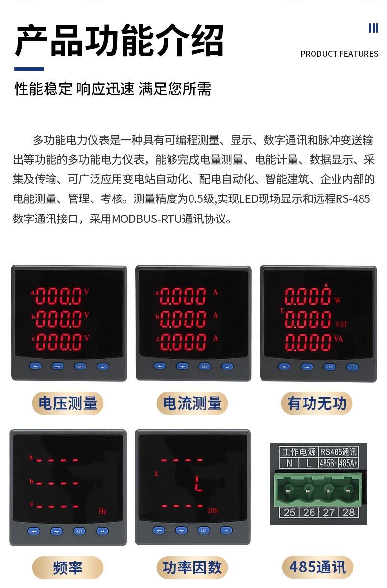 Three-phase digital ammeter: (panel 72*72 opening 67*67) supports 485 communication, Three-phase digital displ...