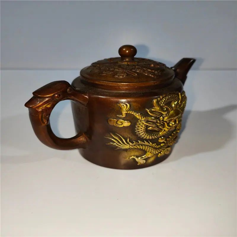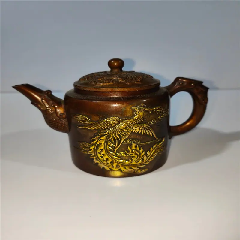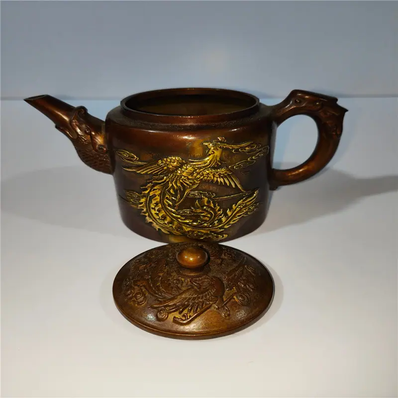 2023 coleção de bronze antigo antigo decoração de pote de dragão e fênix decoração de casa presente criativo artesanato pote de cobre atacado