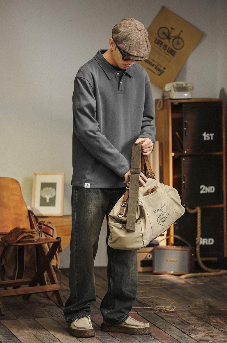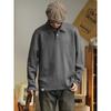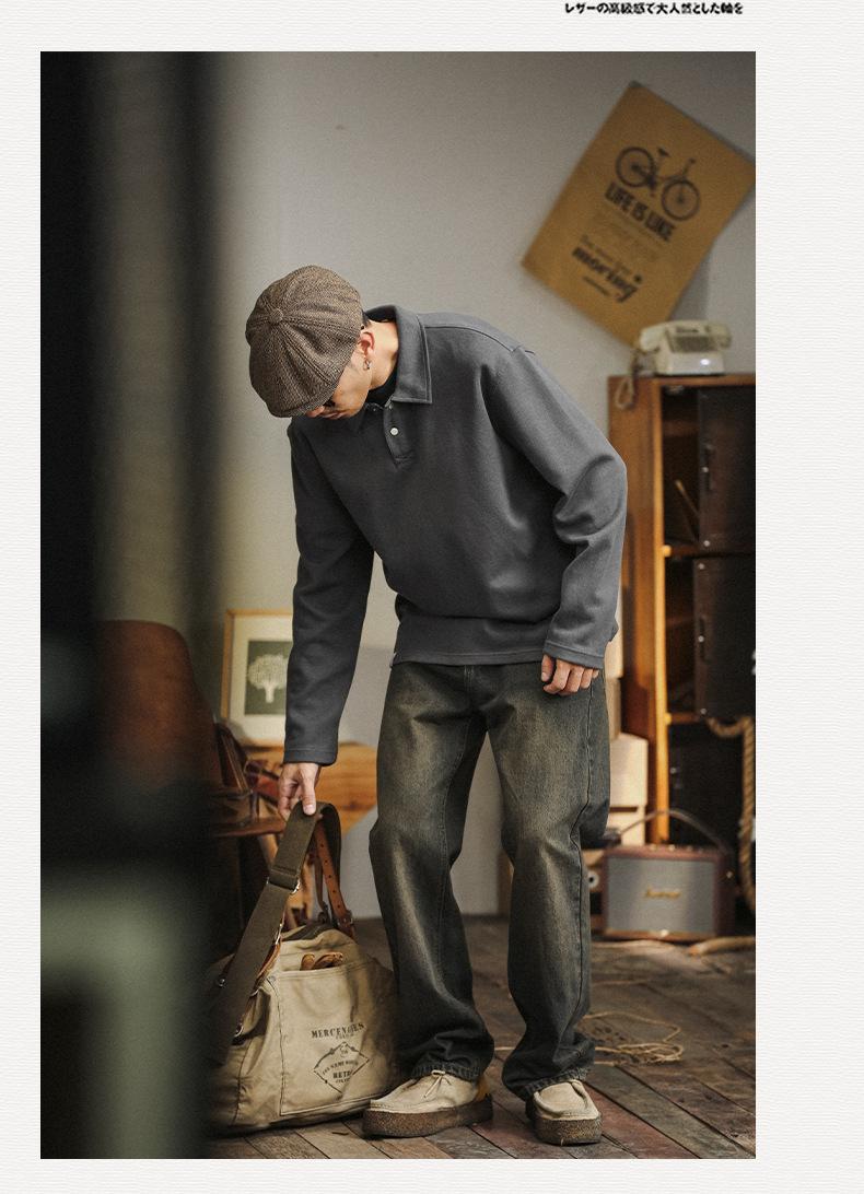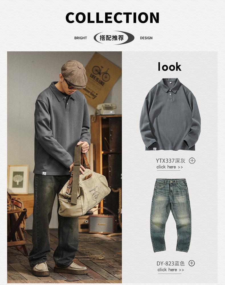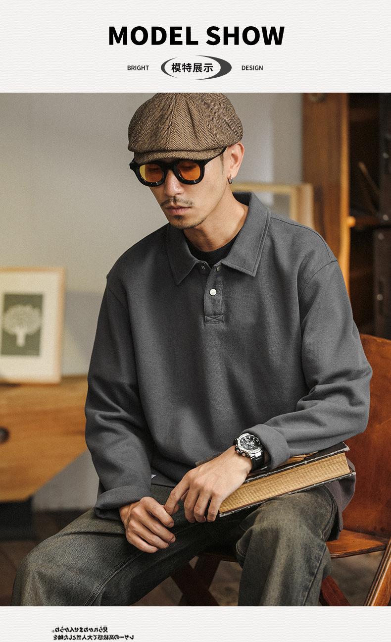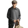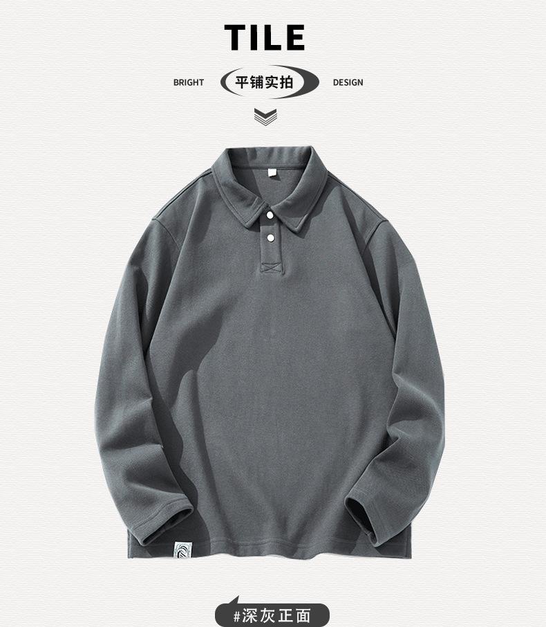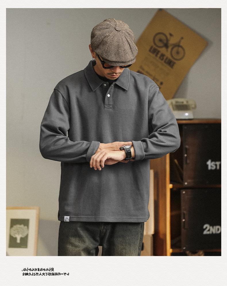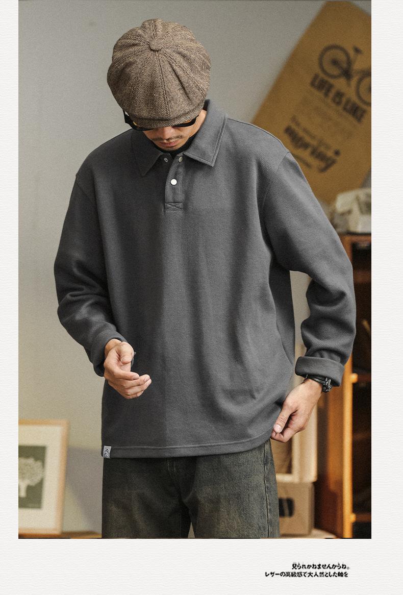 2025 Outono Novo Cor Sólida Manga Longa Camiseta Masculina Gola POLO Roupas Masculinas Casual Americano Solto Top Masculino