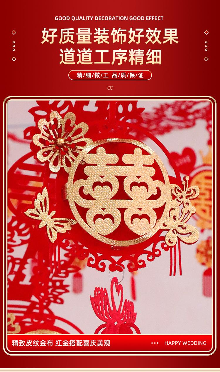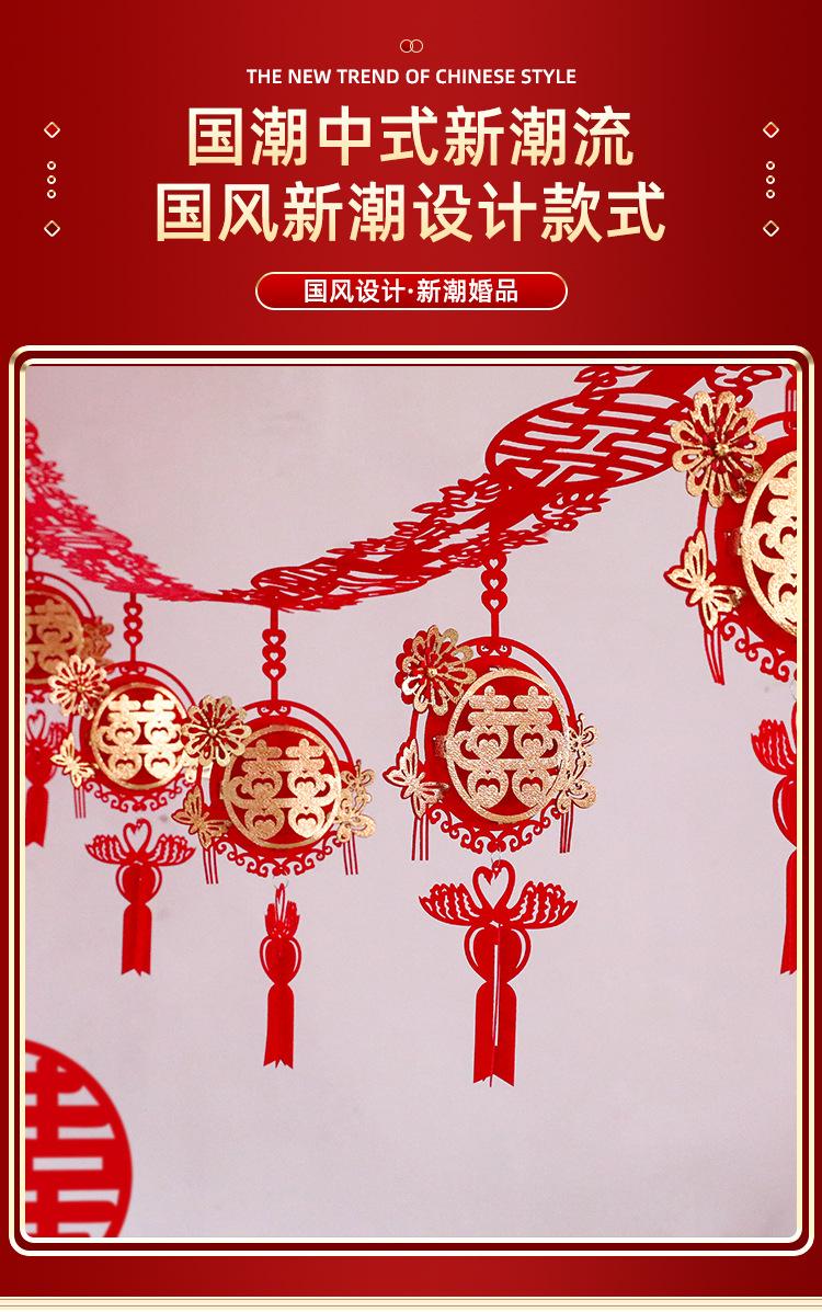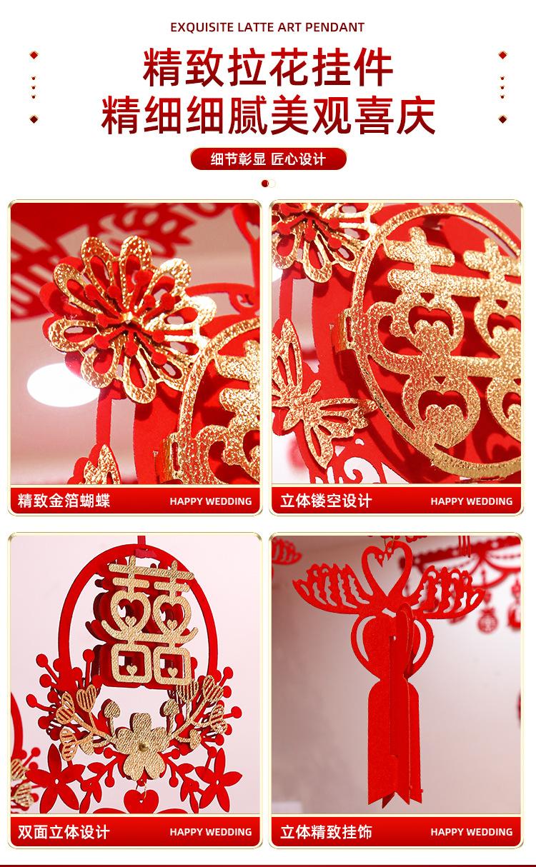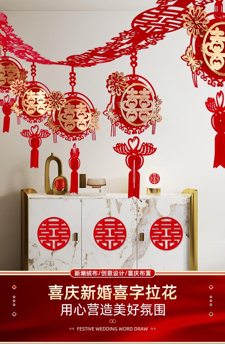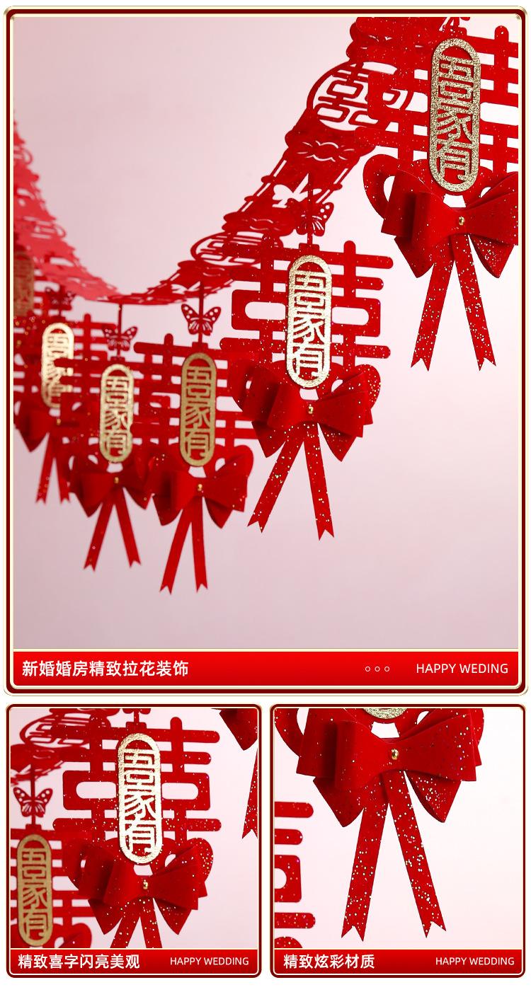 Conjunto de Decoração de Quarto de Casamento Puxar Flores Decoração de Sala de Estar de Casamento Fita Puxar Dupla Felicidade Suprimentos de Casamento para Quarto Novo Conjunto Completo