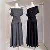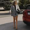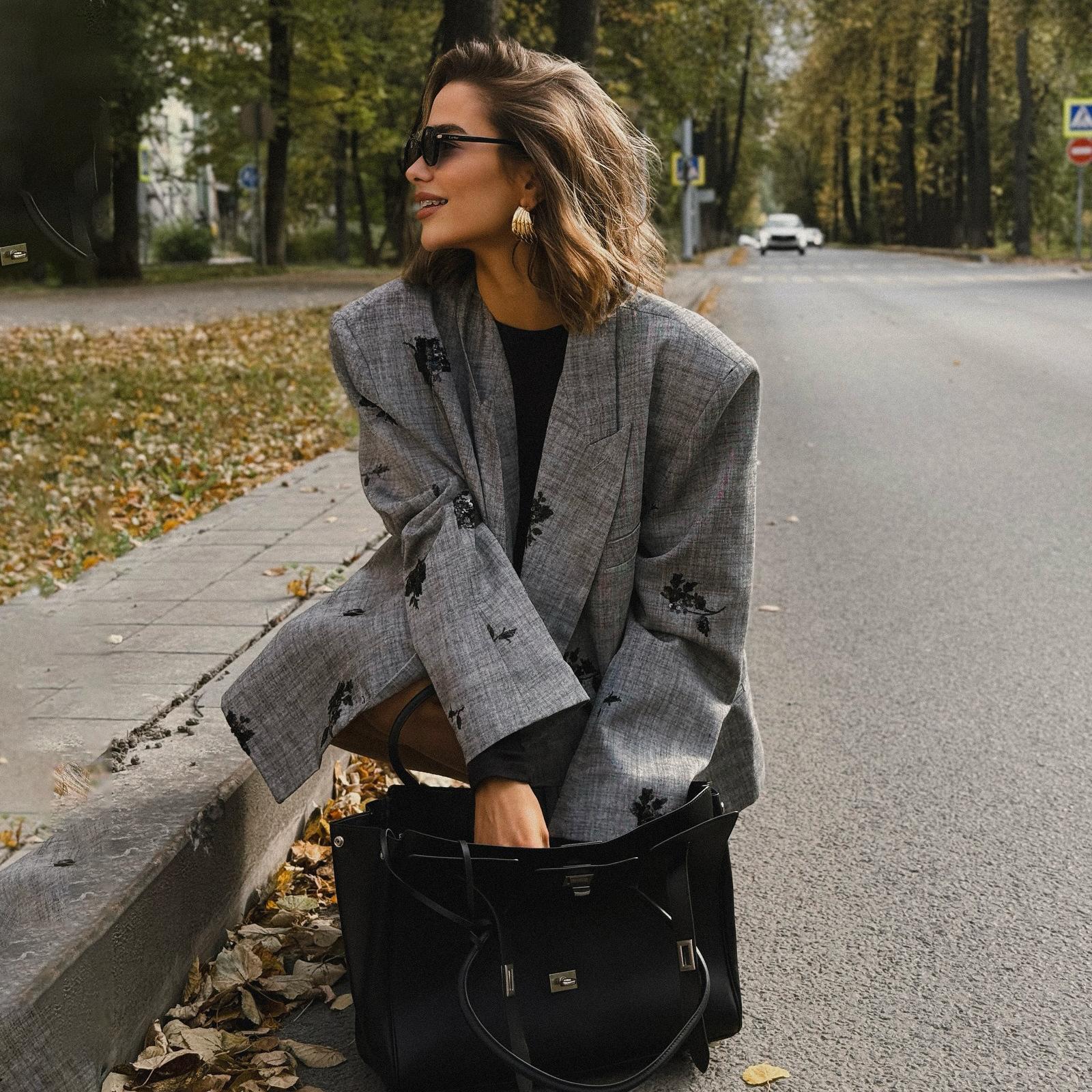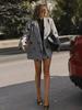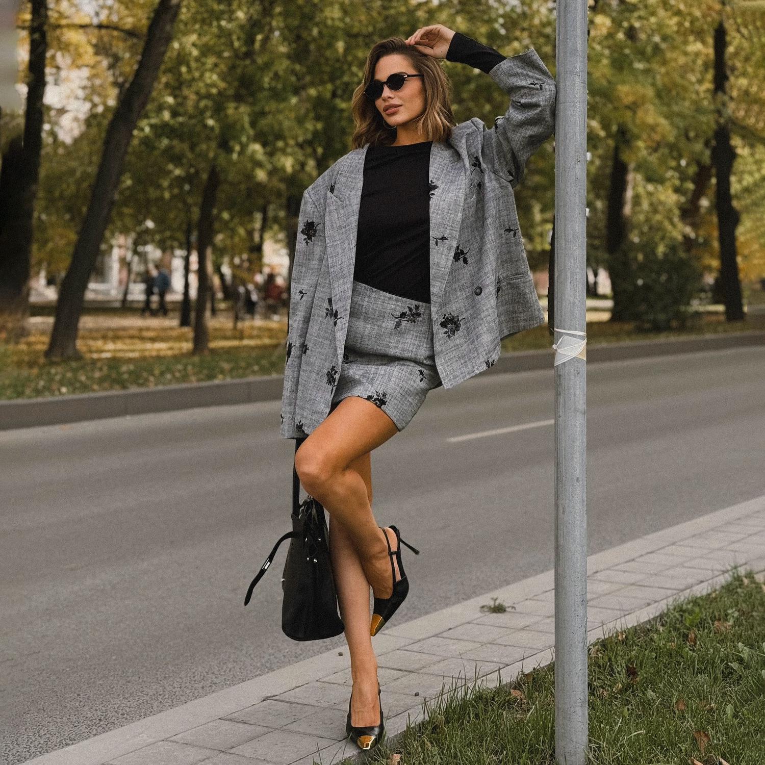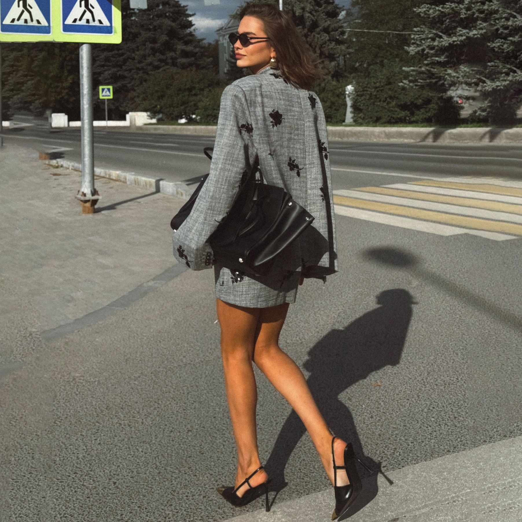 Conjunto feminino bordado estilo commuter transfronteiriço outono high-end blazer com ombros caídos saia curta evasê conjunto temperamental