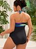Venda direta de fábrica de maiô inteiro tamanho plus novo 2025 para mulheres, estilo de amarrar no pescoço, cobrindo a barriga, plissado, roupa de banho com bloqueio de sol, atacado e personalização.