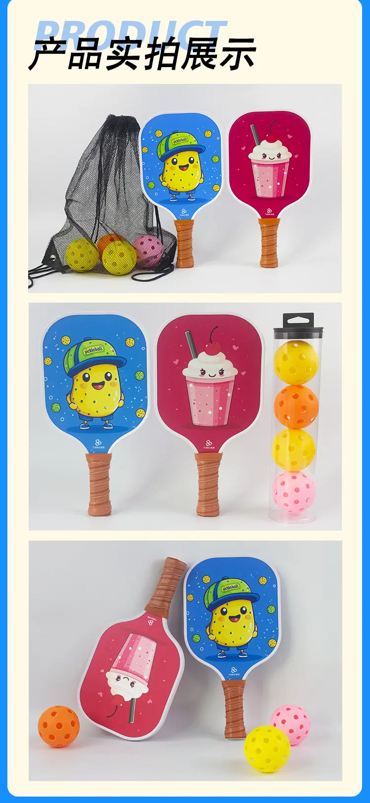 Conjunto Mini Raquete de Pickleball para Crianças, Pickleball Escola Treino ao Ar Livre Bola Especial, Leve