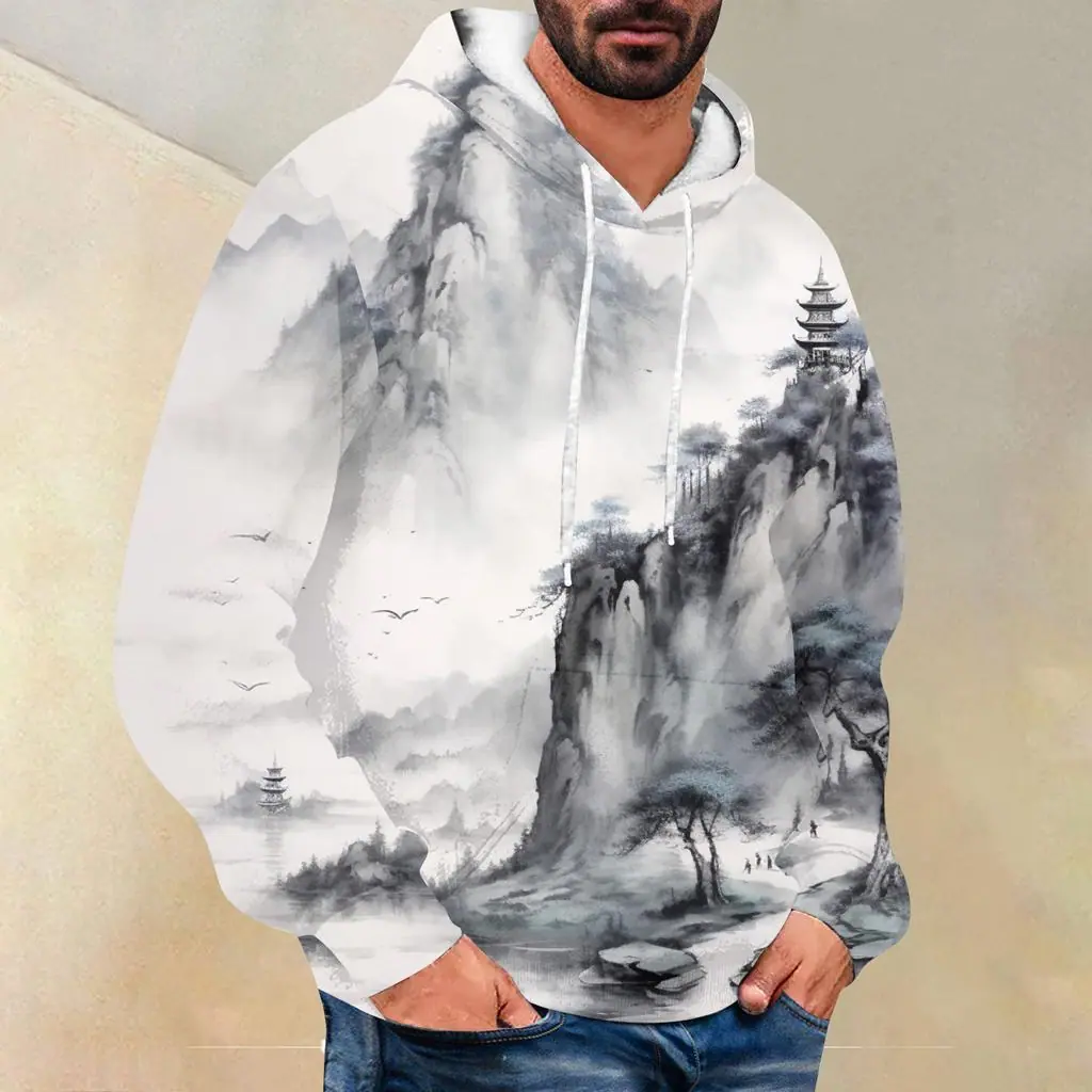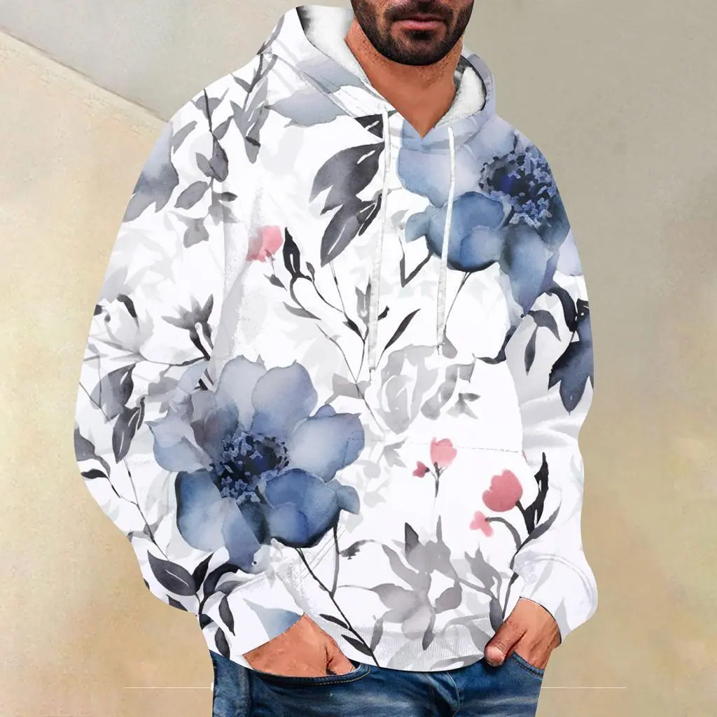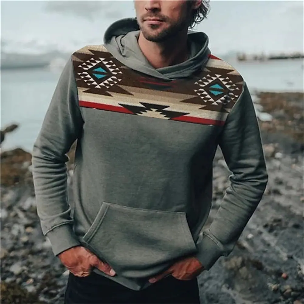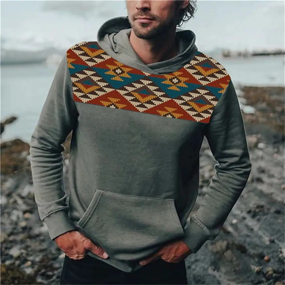 Moletom com capuz novo de outono e inverno masculino transfronteiriço, xadrez geométrico, estampa 3D, pulôver, moletom de manga comprida, moletom com capuz masculino