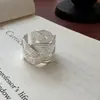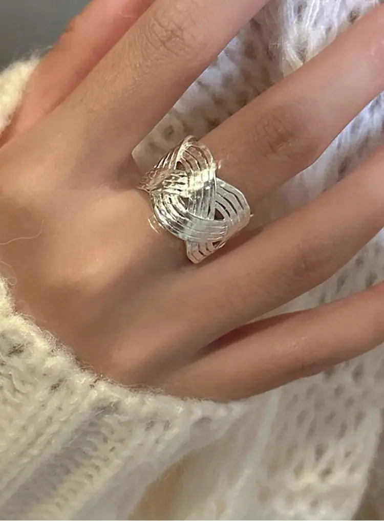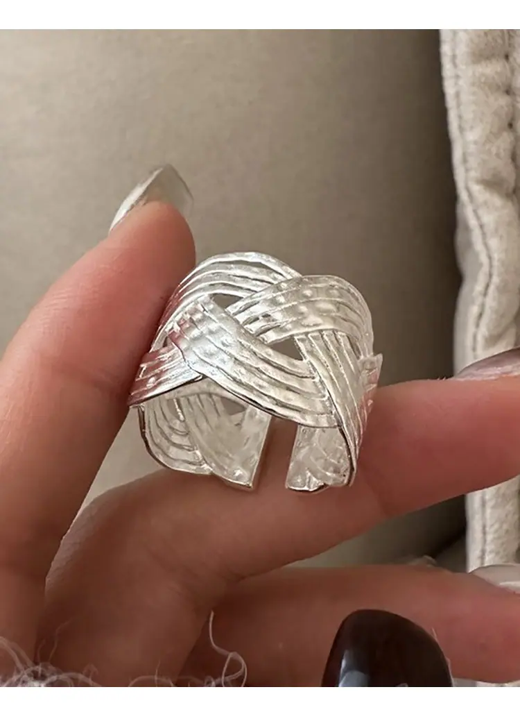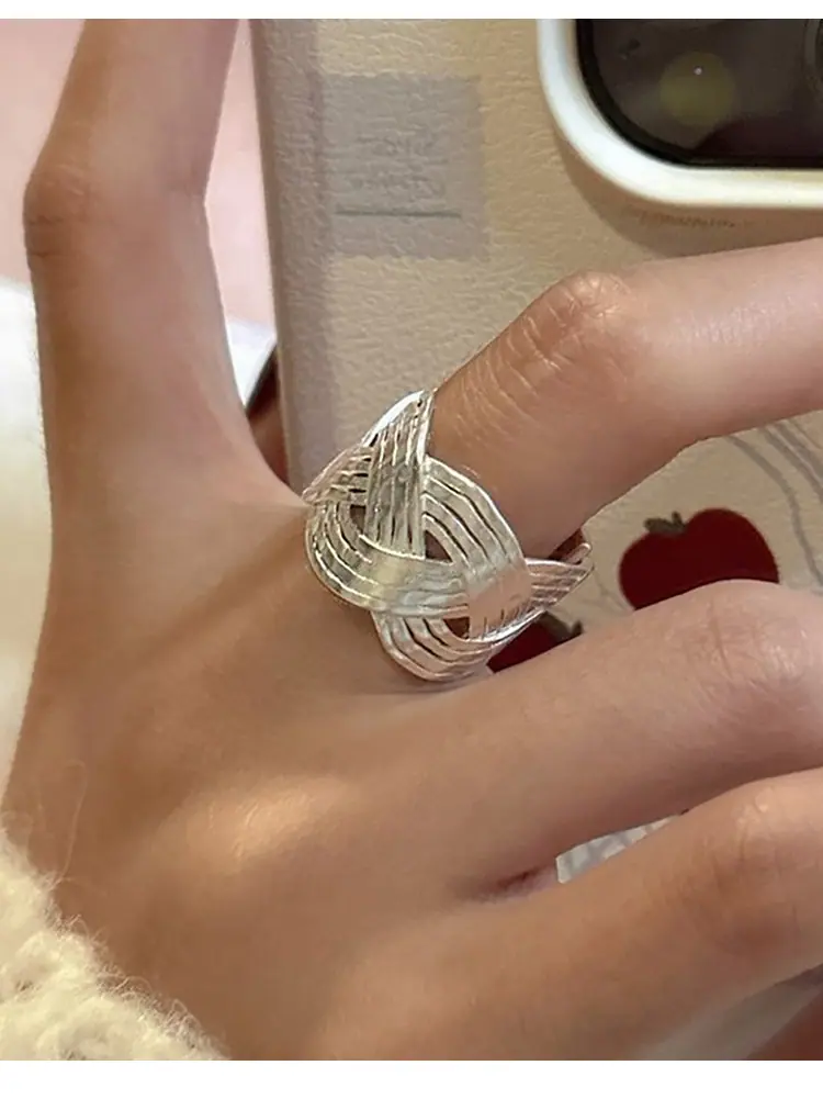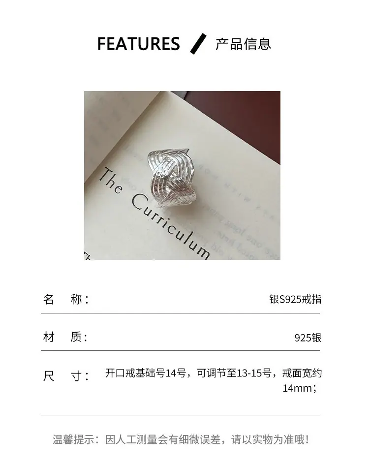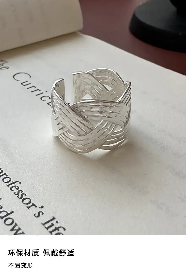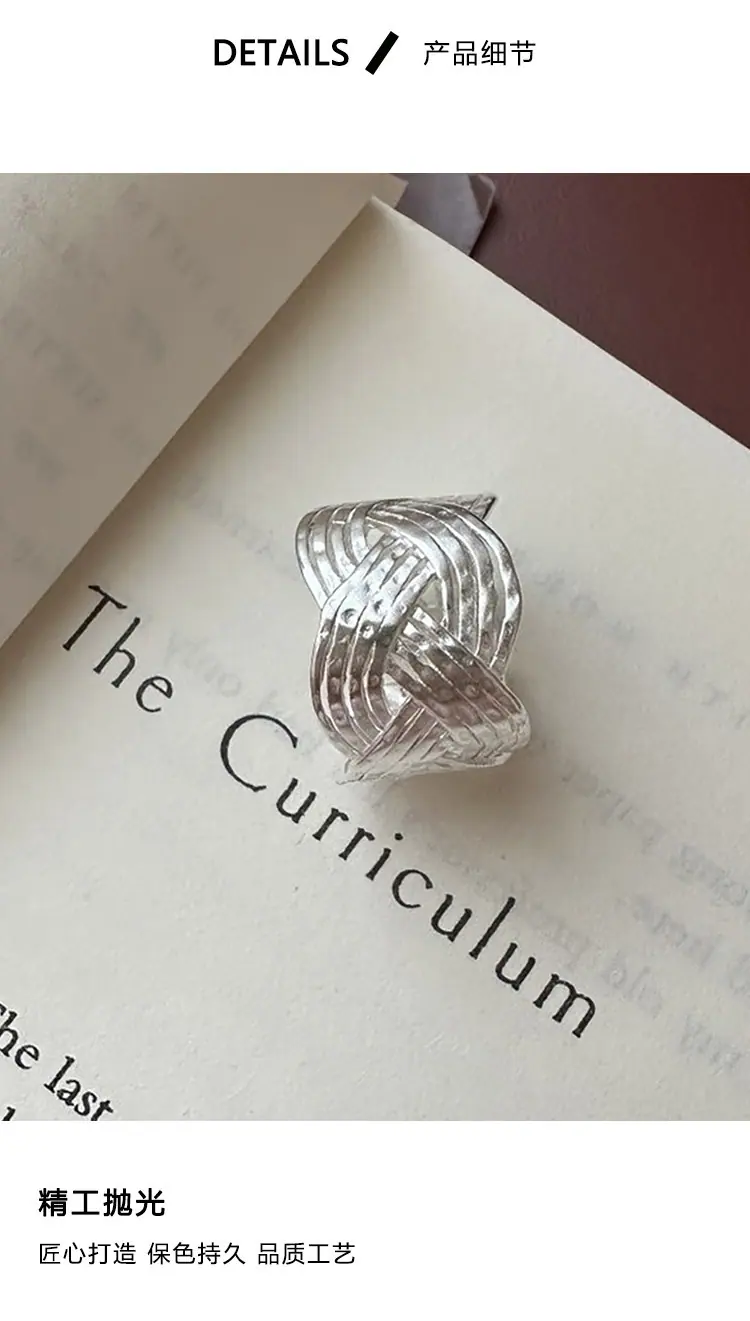 Anel Aberto Tecido em Prata de Lei 925 25 Anos Minimalista Luxo Leve Design de Nicho High-End Joia de Anel de Dedo
